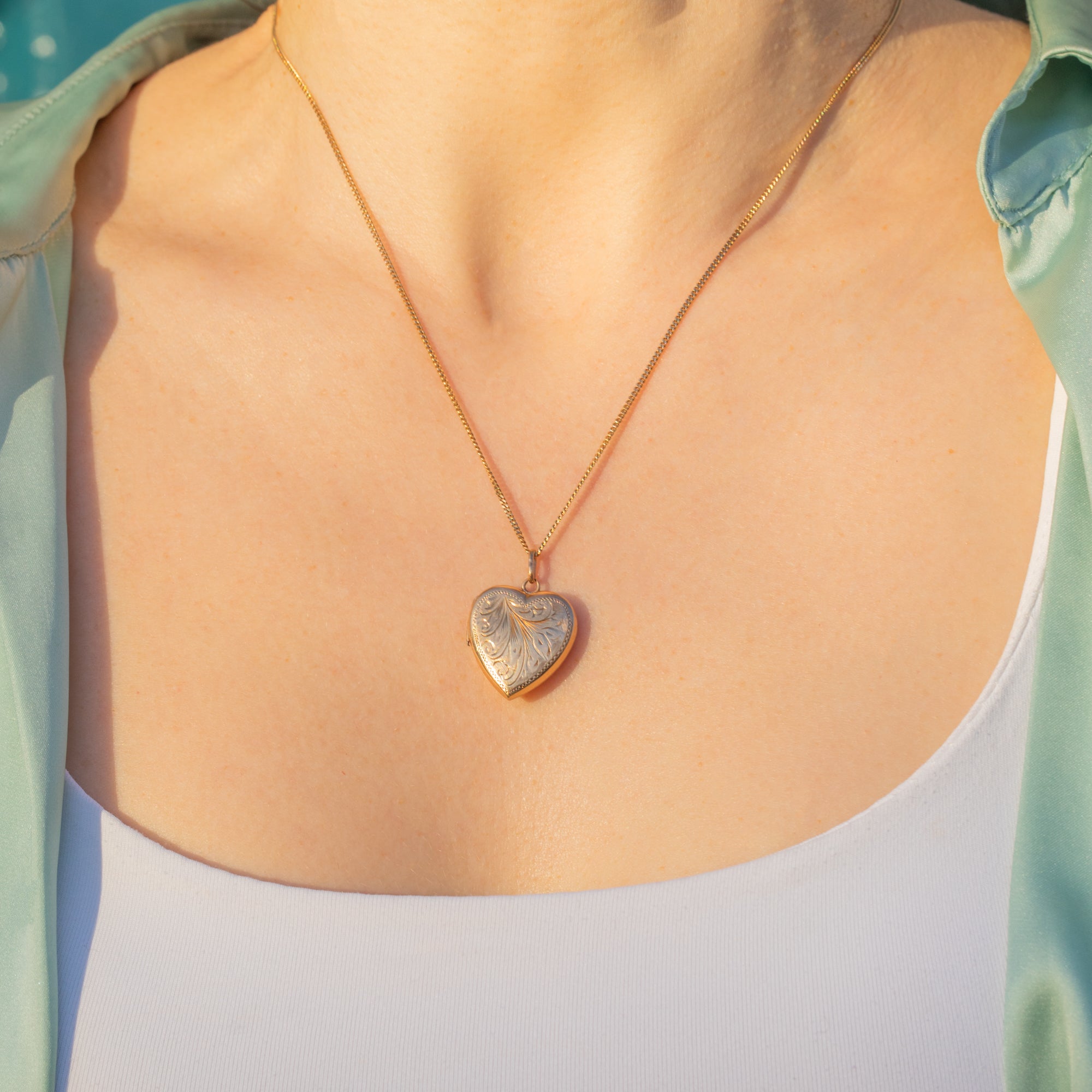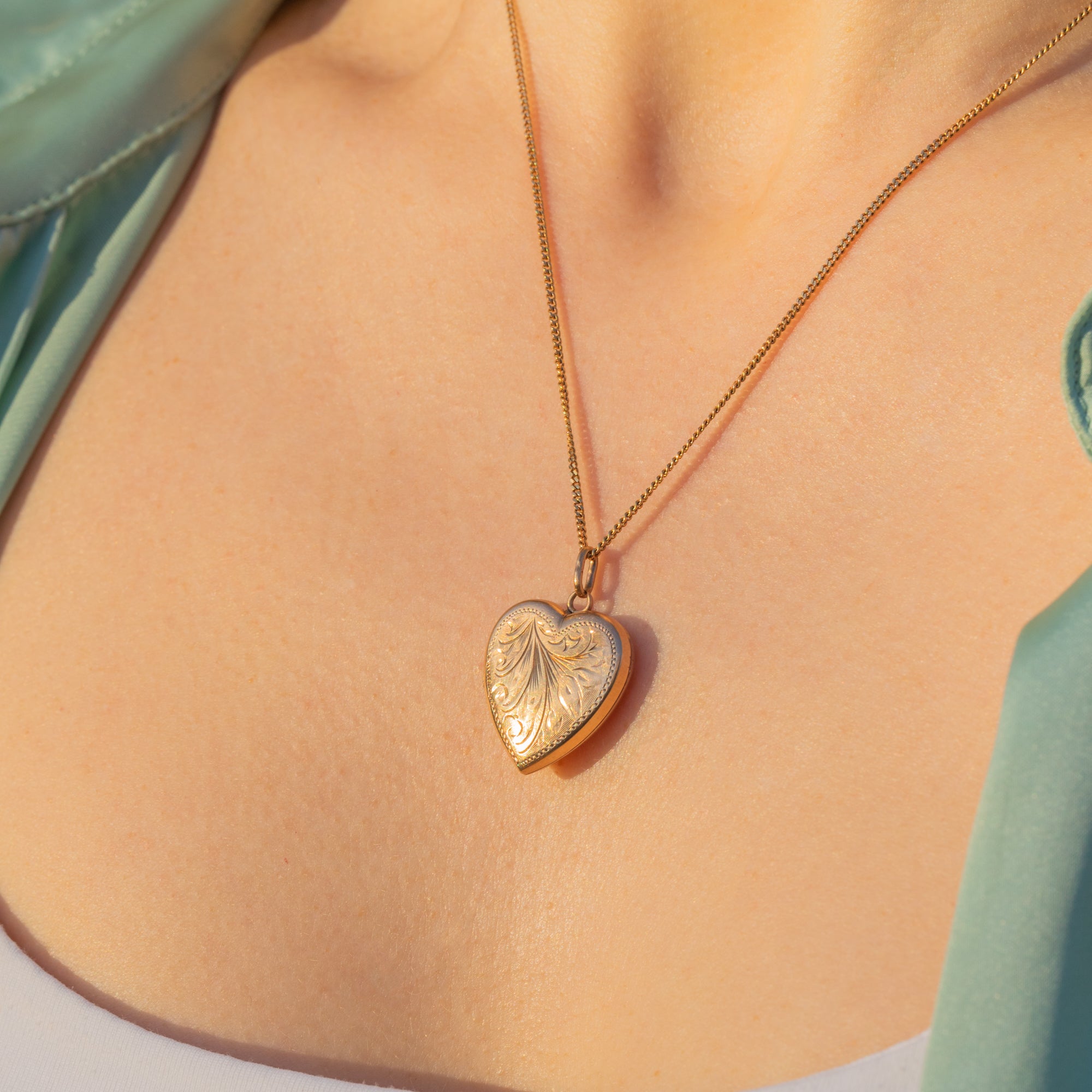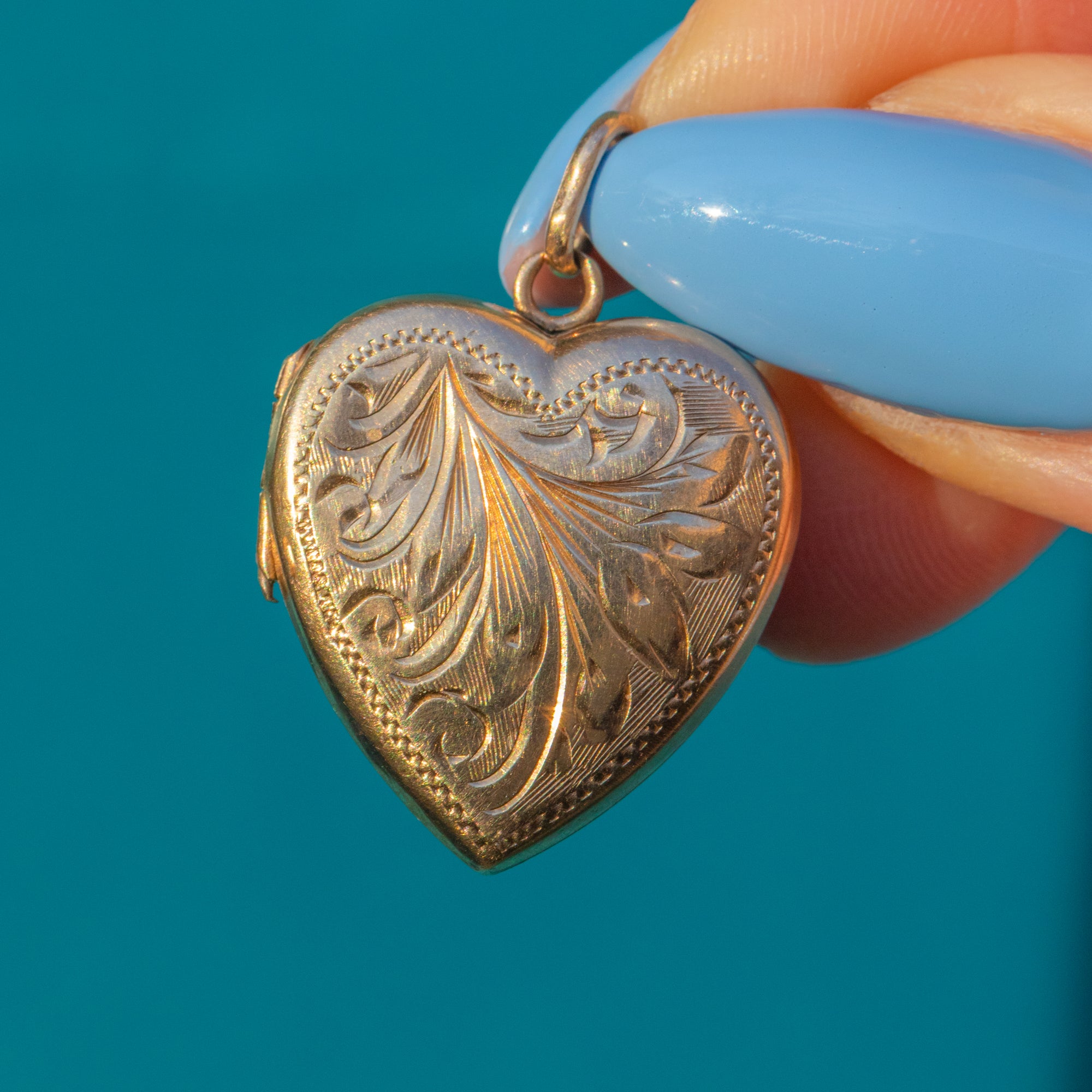 Antique SOLID 9ct Gold Engraved Heart Locket