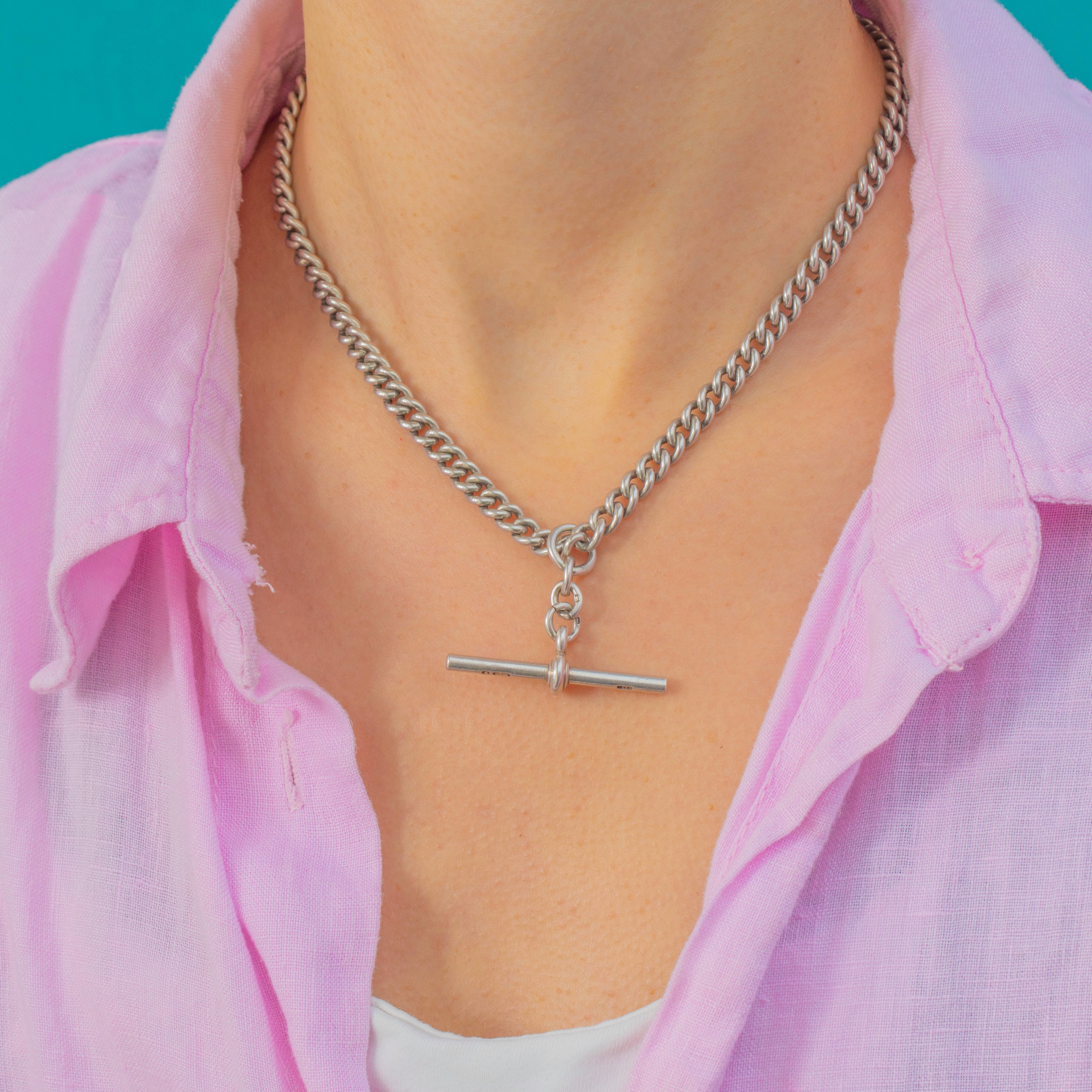 With its shorter, collar-style length, it sits perfectly as a standalone statement or layered with your favourite pendants and lockets. The original T-bar and matching dog-clips make it wonderfully versatile, whether you wear it as a traditional Albert, a chunky choker, or as part of a more elaborate antique neckmess.