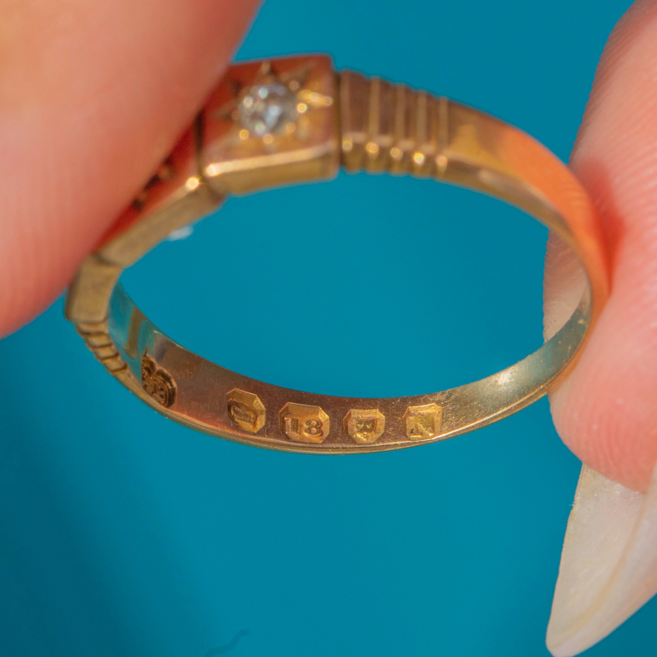 Antique Victorian 18ct Gold Sapphire Diamond Star-Set Gypsy Ring, c.1888