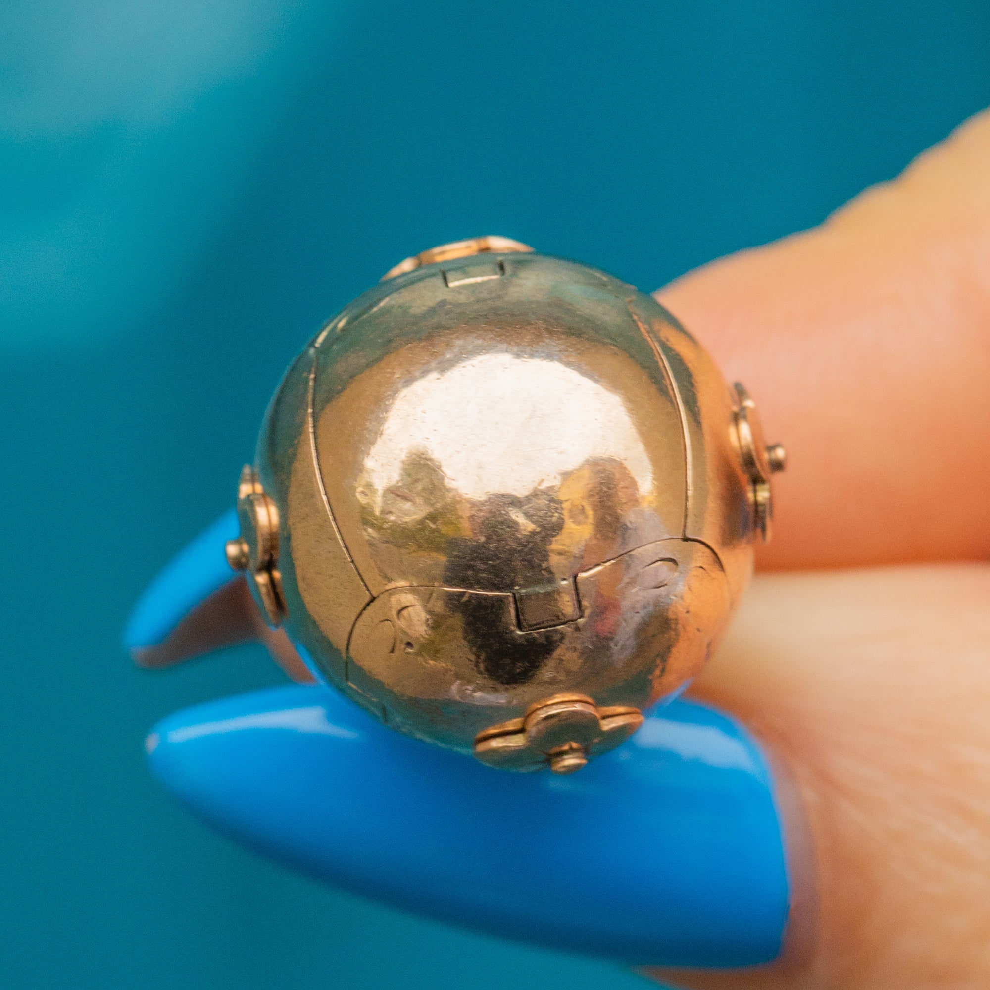 When closed, the pendant takes on a smooth, polished spherical form with a beautiful warm 9ct Gold finish. With its intricate hinges and secure clasp, this Masonic ball pendant is both a wearable piece of history and a unique collectible.