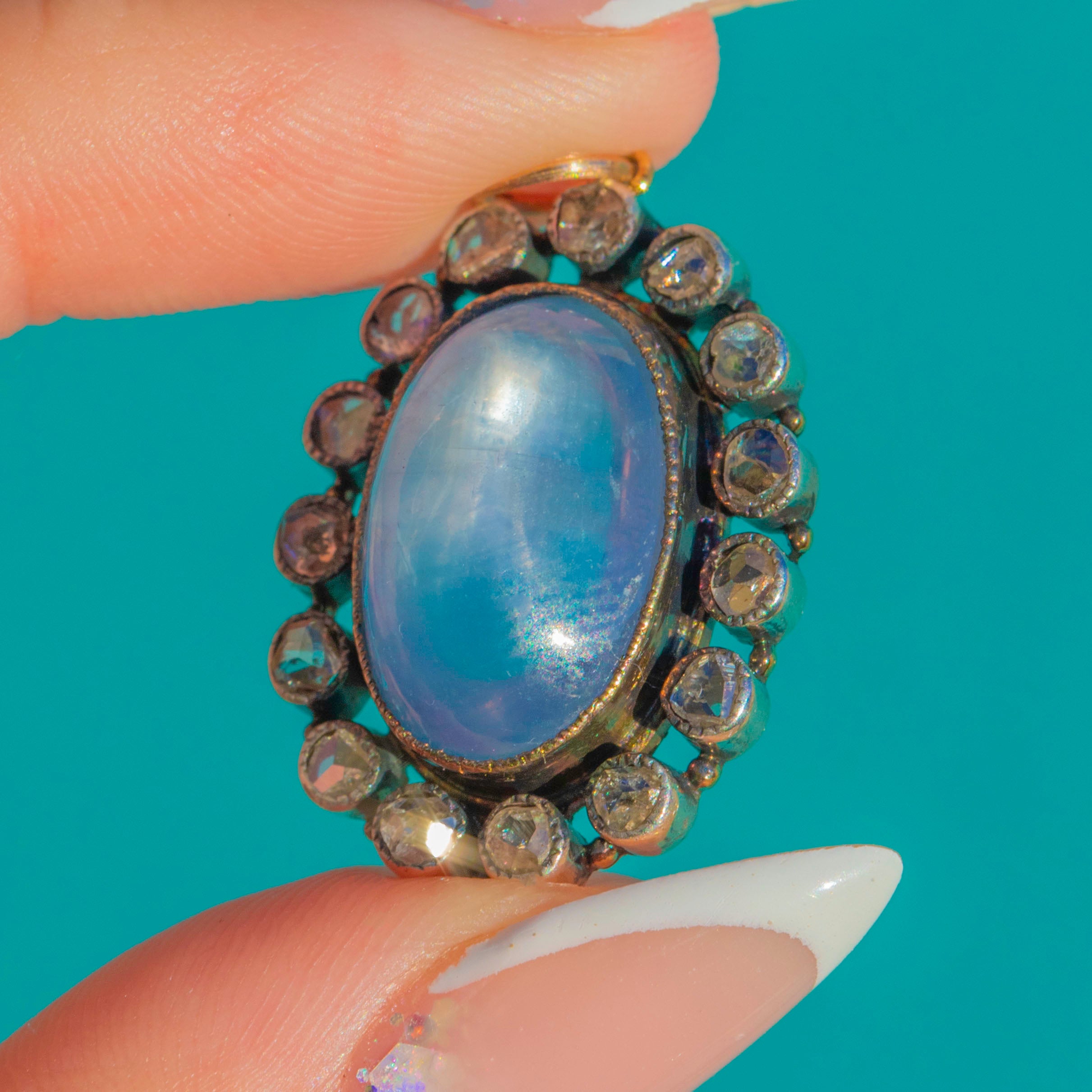 Antique Victorian Star Sapphire & Diamond Cluster Pendant