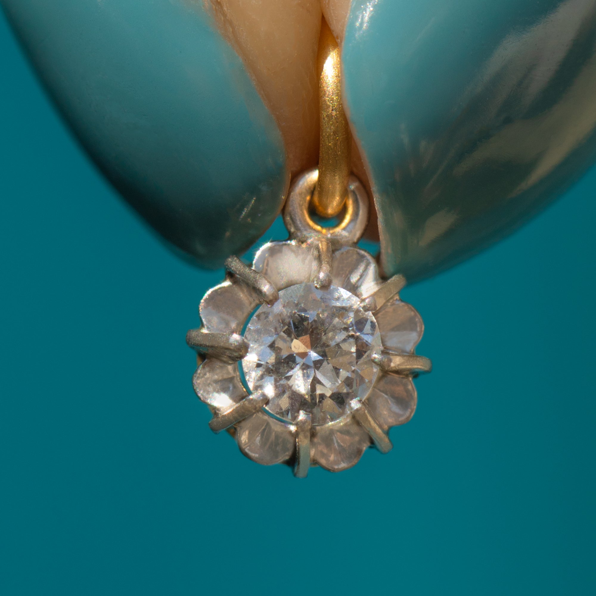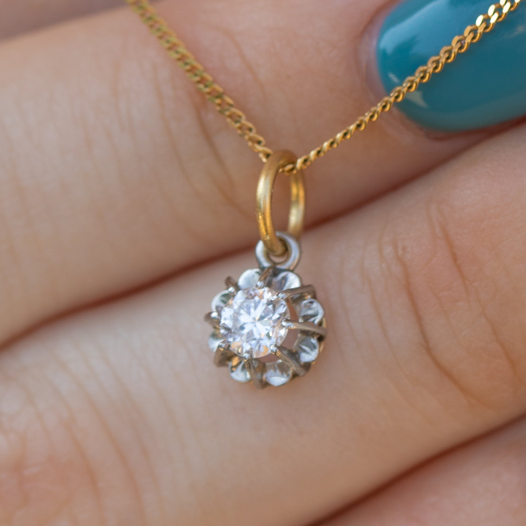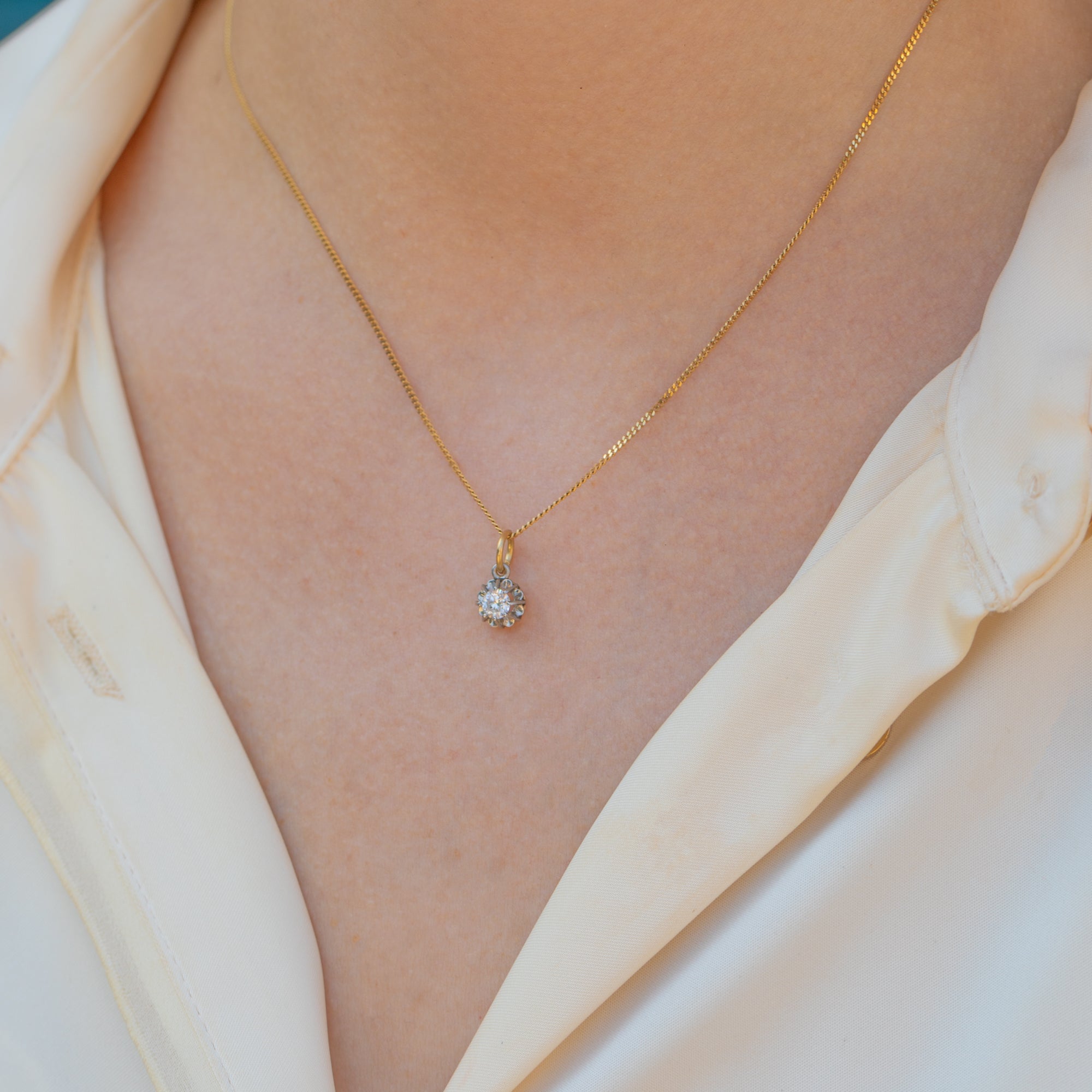 Pieces like this Art Deco Old European-cut Diamond charm truly make Diamonds a girl's best friend! A show-stopping 0.25ct Diamond, flaunting a G/H colour, sits poised in a delicate buttercup setting crafted entirely from Platinum.