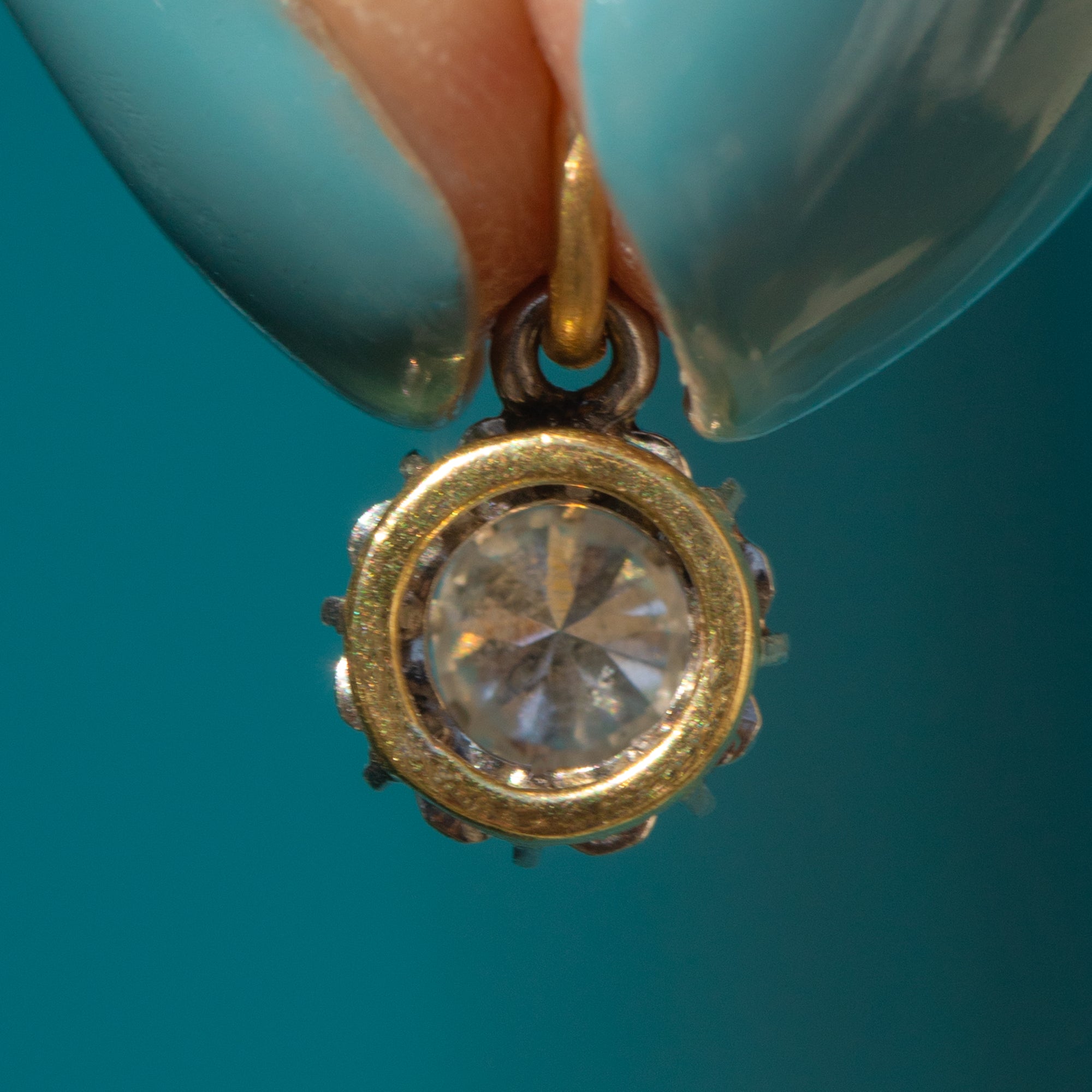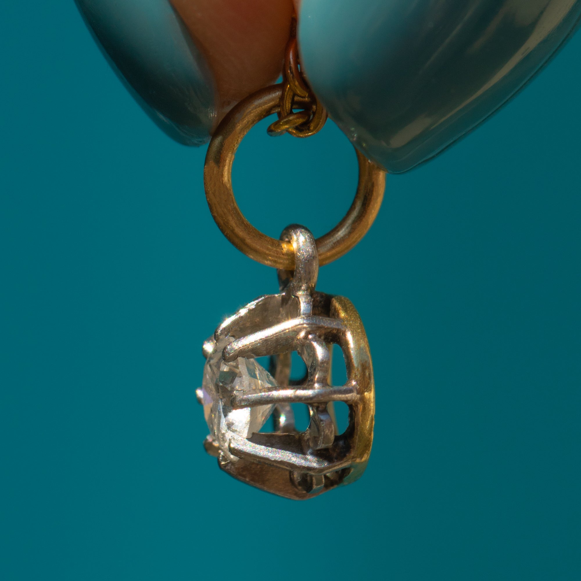 MATERIALS: Tests as Platinum settings, 18ct Gold jump-ring, Old-European Cut Diamond (0.25ct) G/H colour Vs-Si clarity.