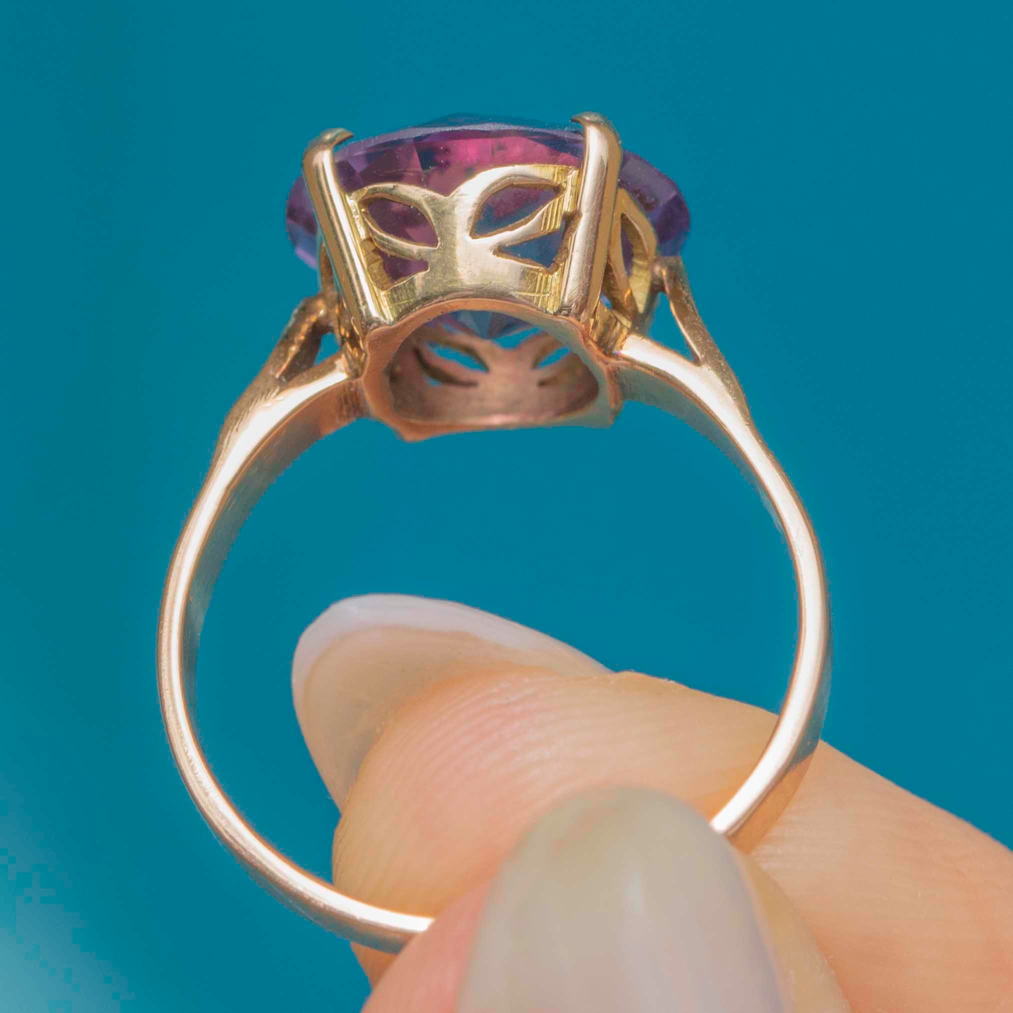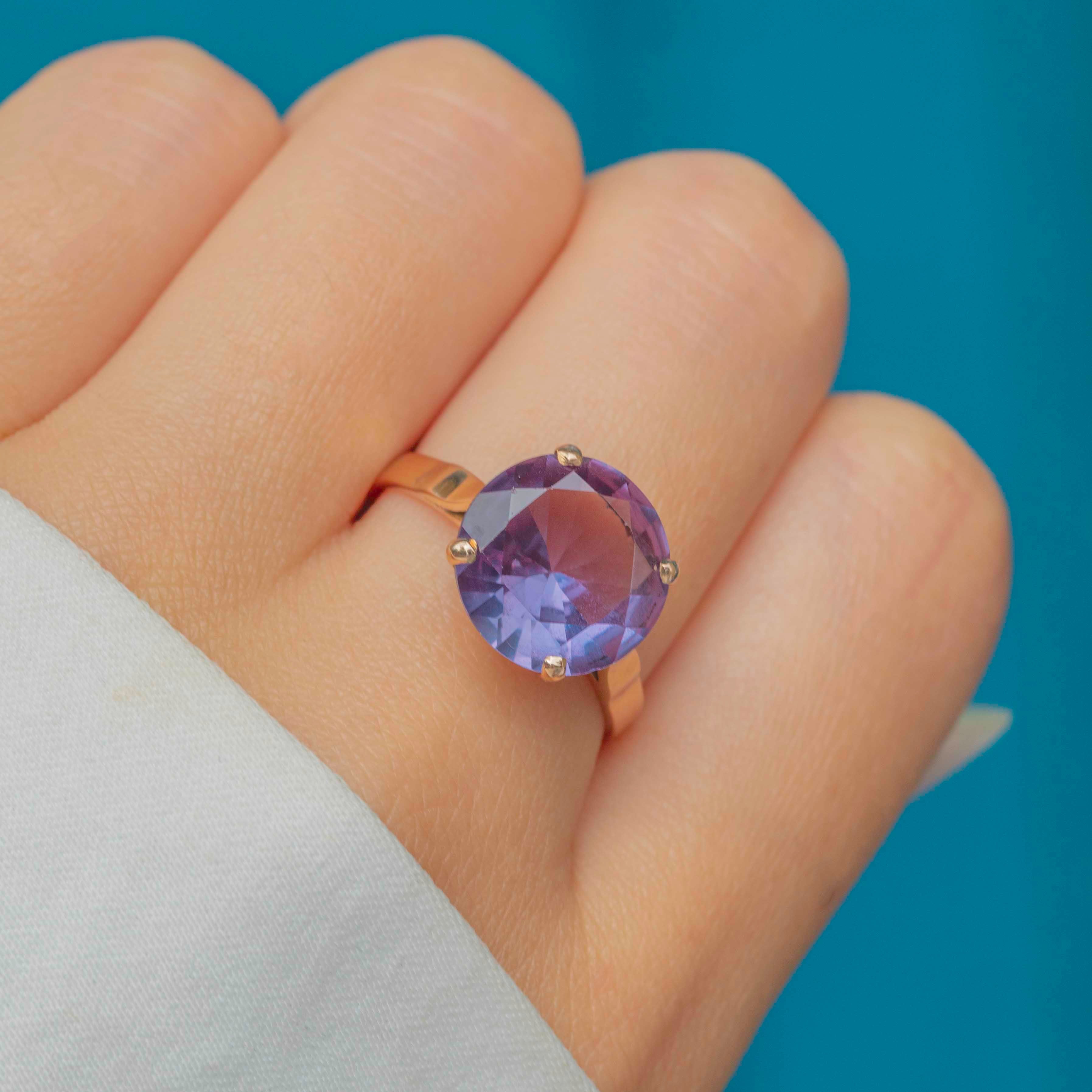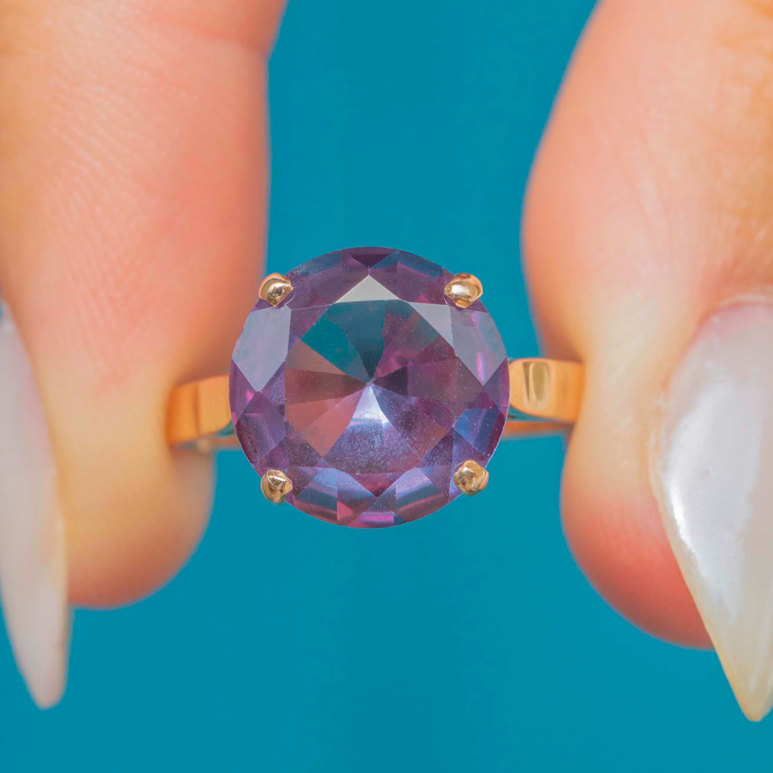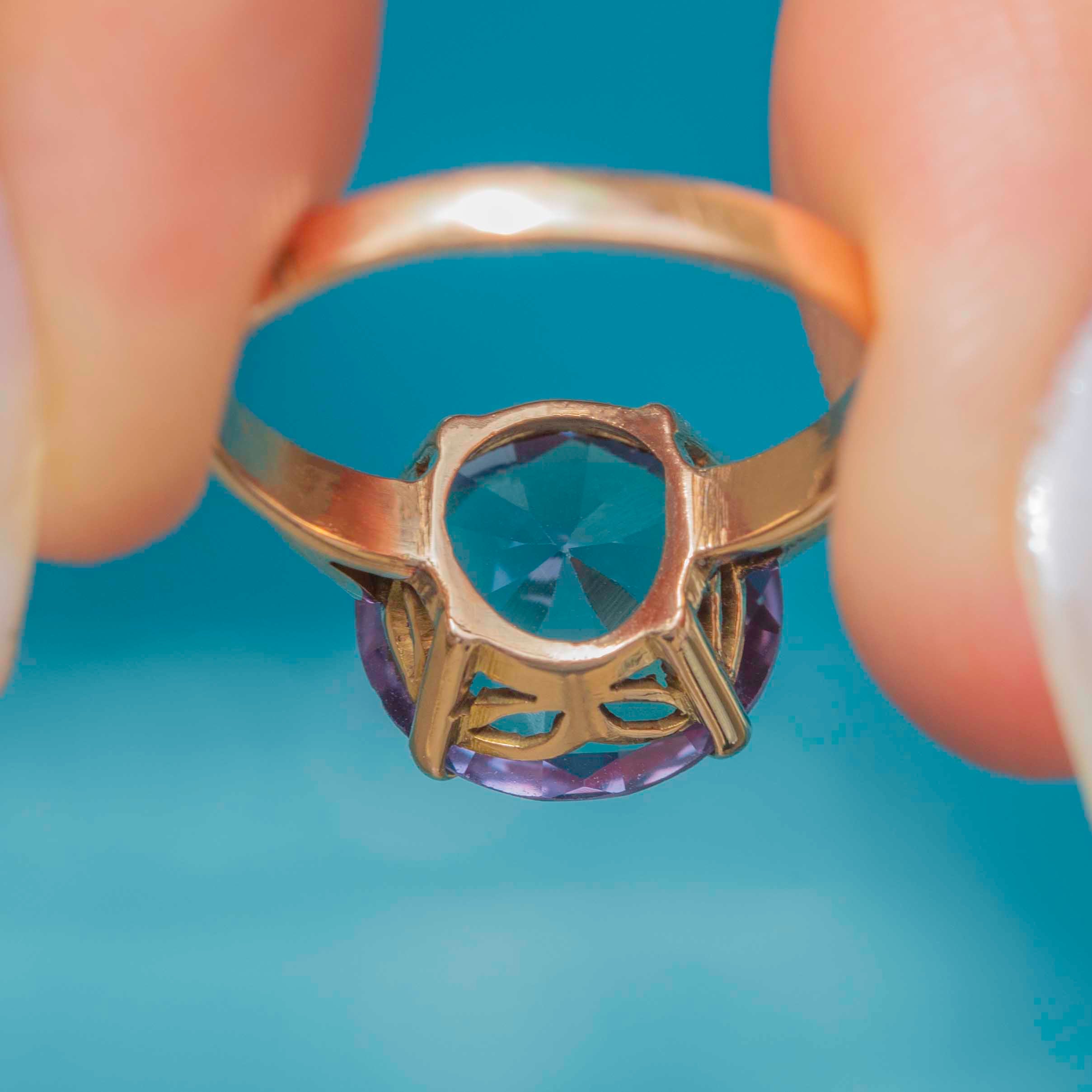 Art Deco 14ct Gold Synethetic Colour Change Sapphire Ring 3.40ct