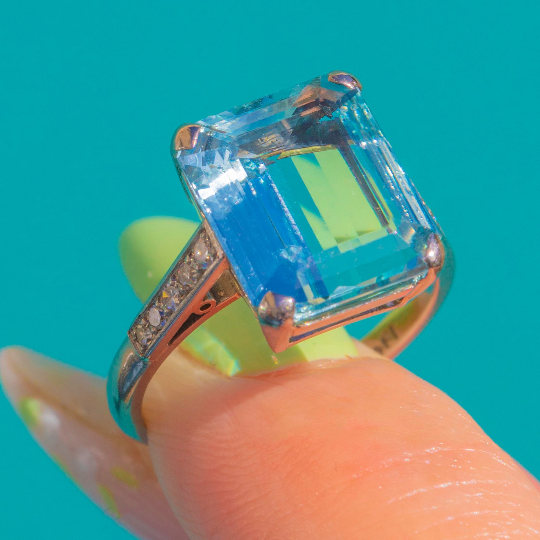 Art Deco 18ct Gold Aquamarine Diamond Ring, 8.00ct Aquamarine