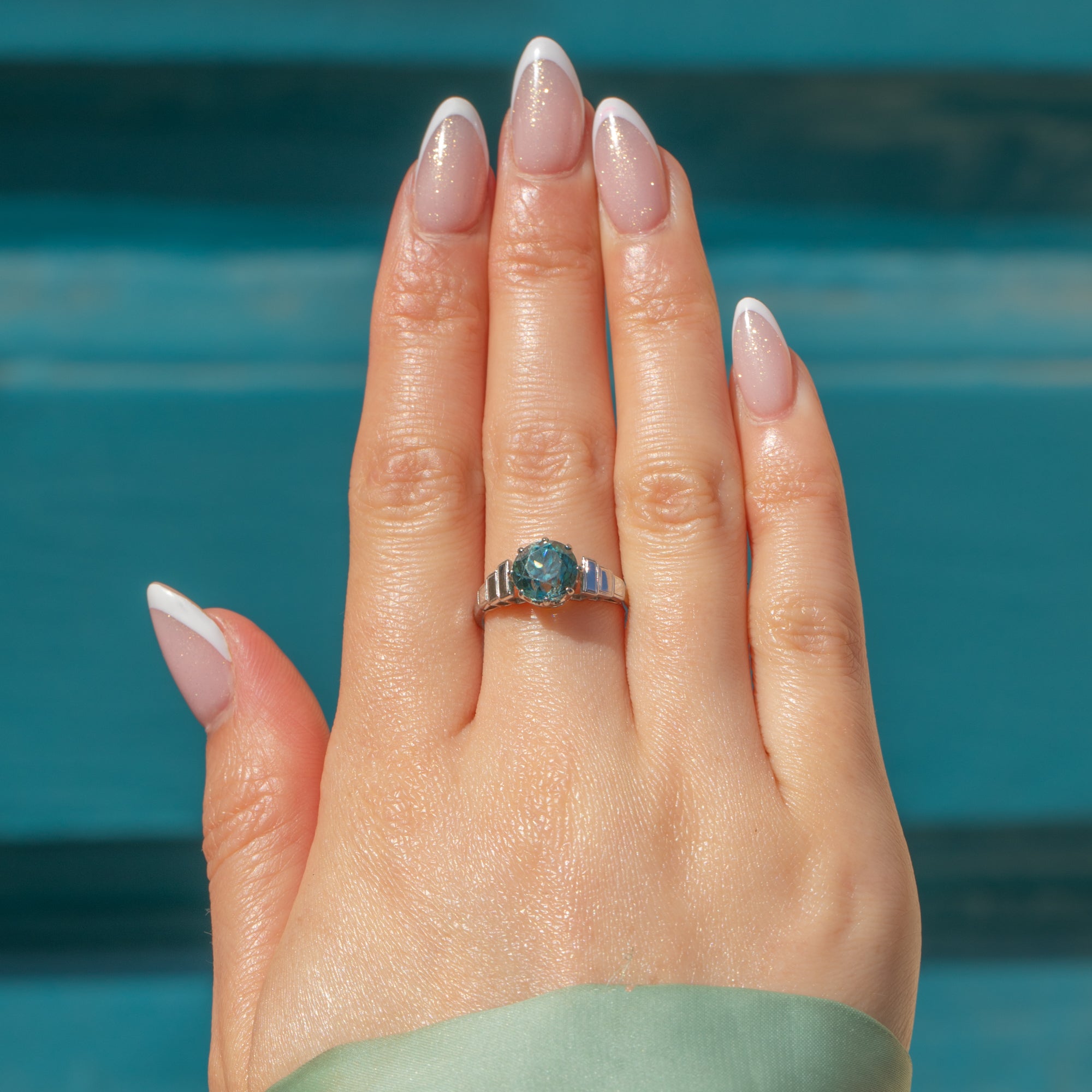 Art Deco 18ct Gold Blue Zircon Solitaire Ring, 1.00ct