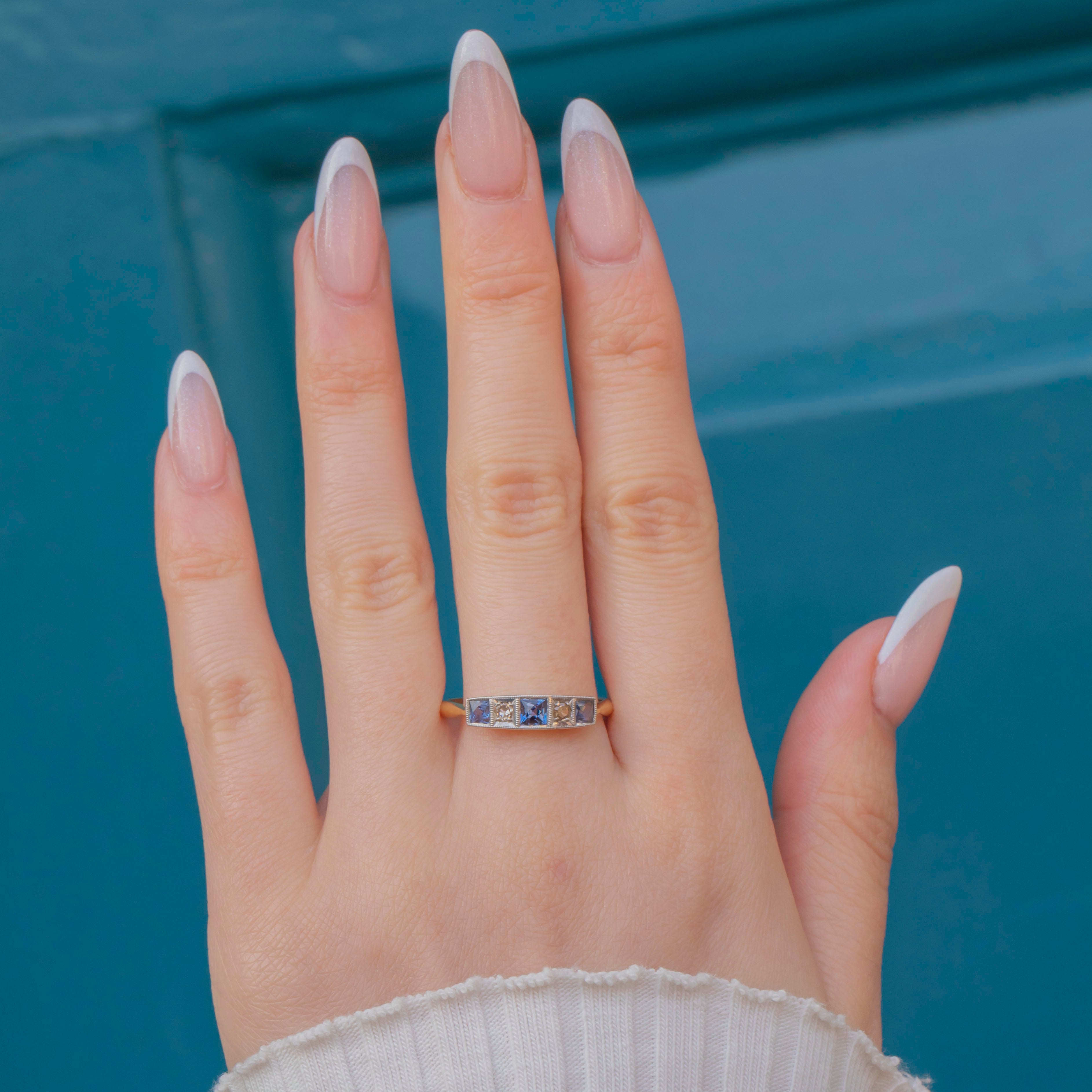 This classic Art Deco 18ct Gold Sapphire Diamond five stone ring will make her a timeless addition to your collection!