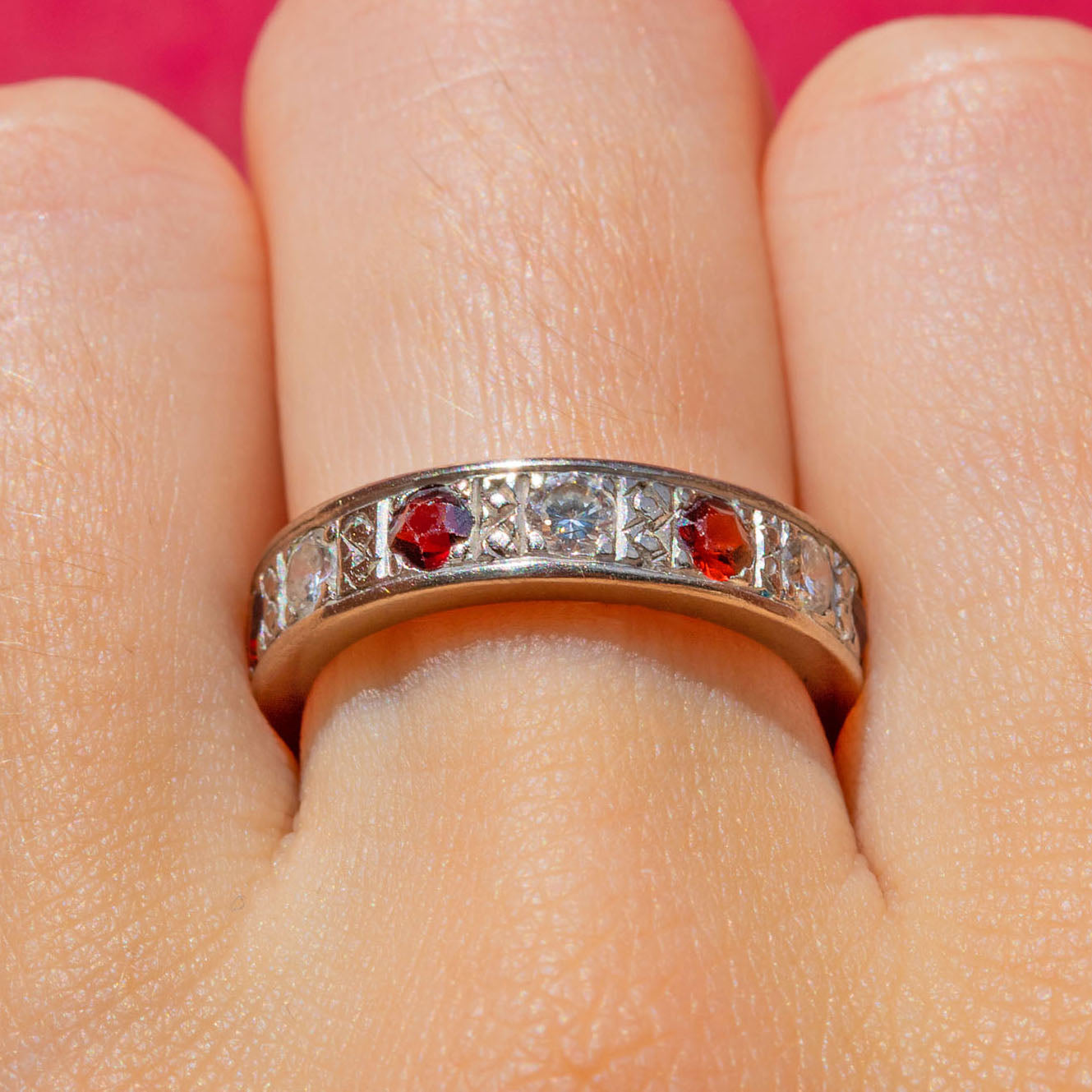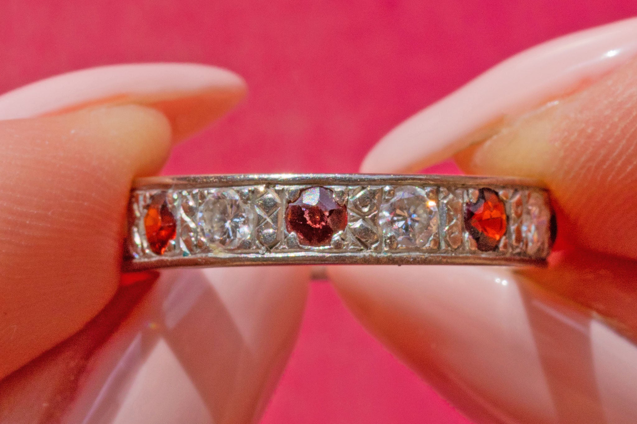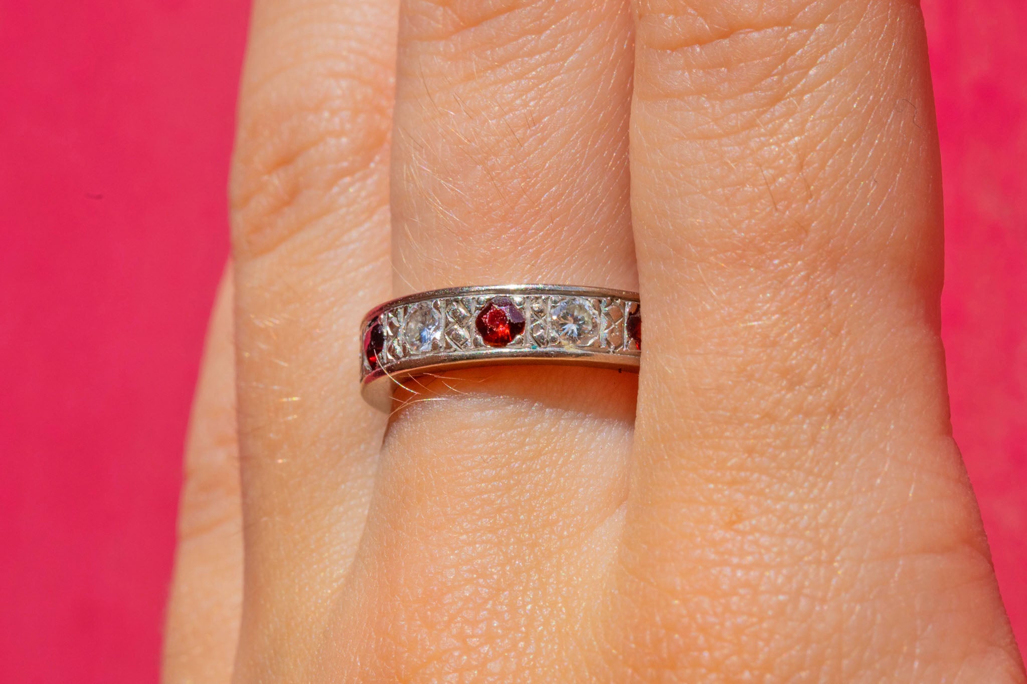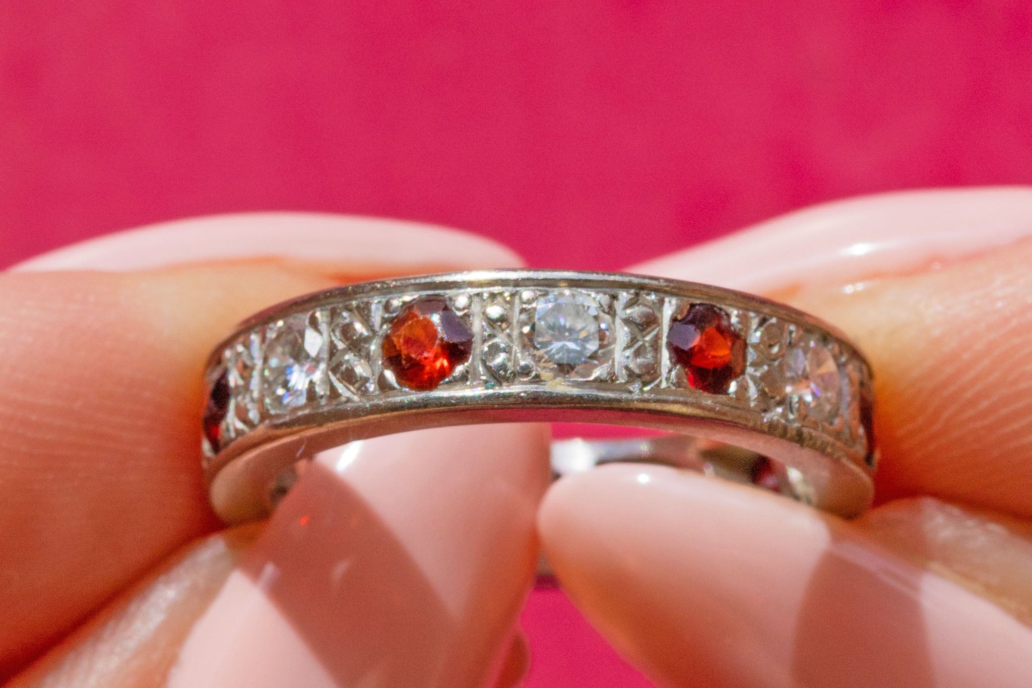 Bague Éternité Art Déco en Or 18 carats avec Grenat et Diamants, Diamants 0,42 ct
