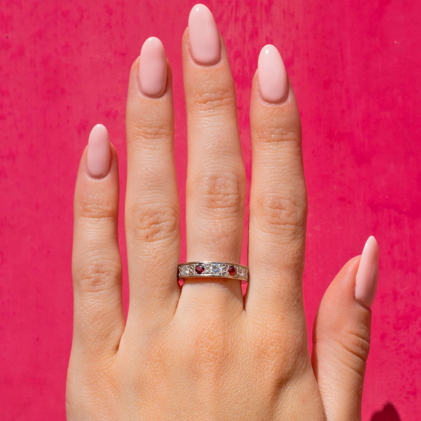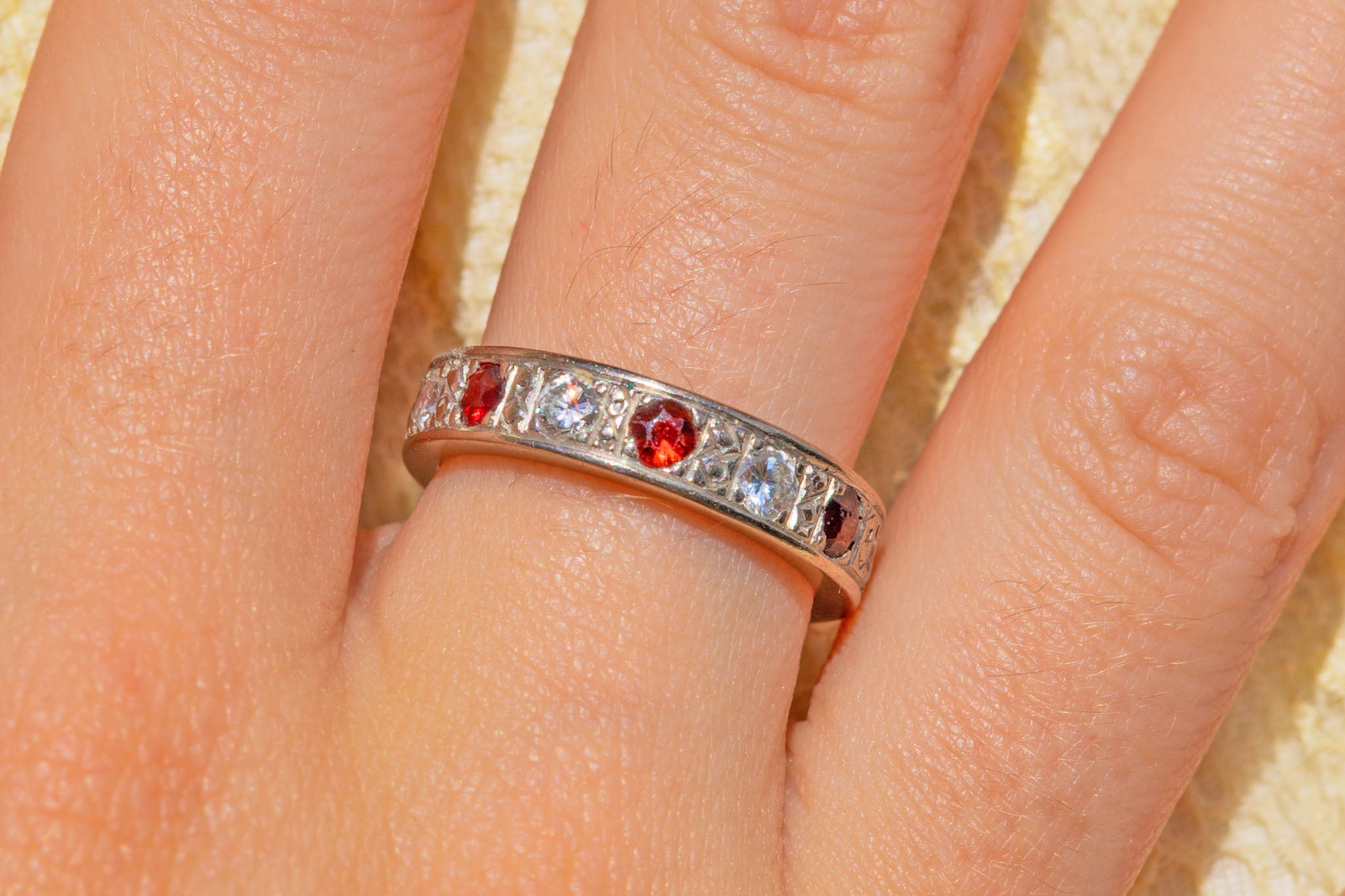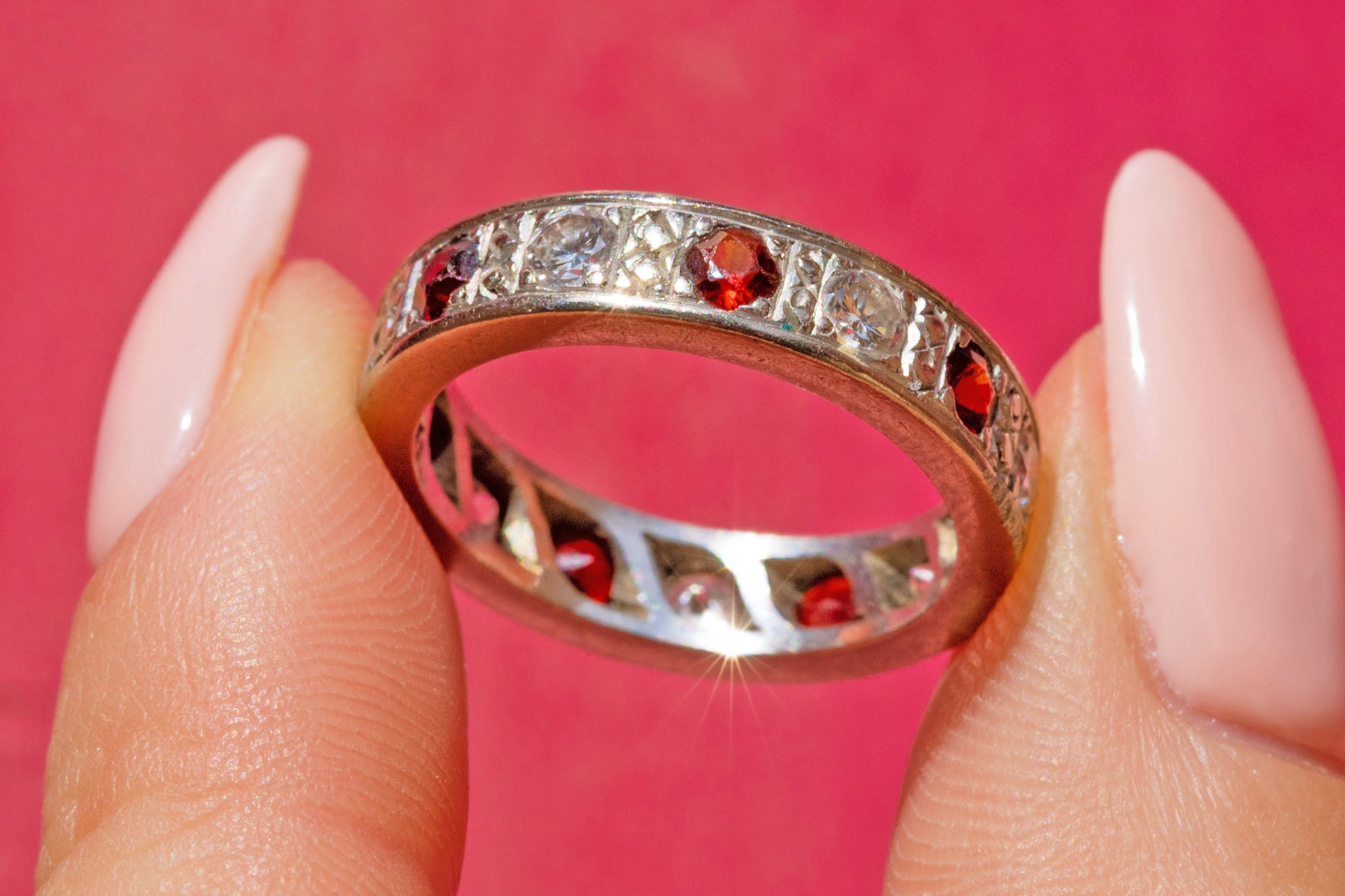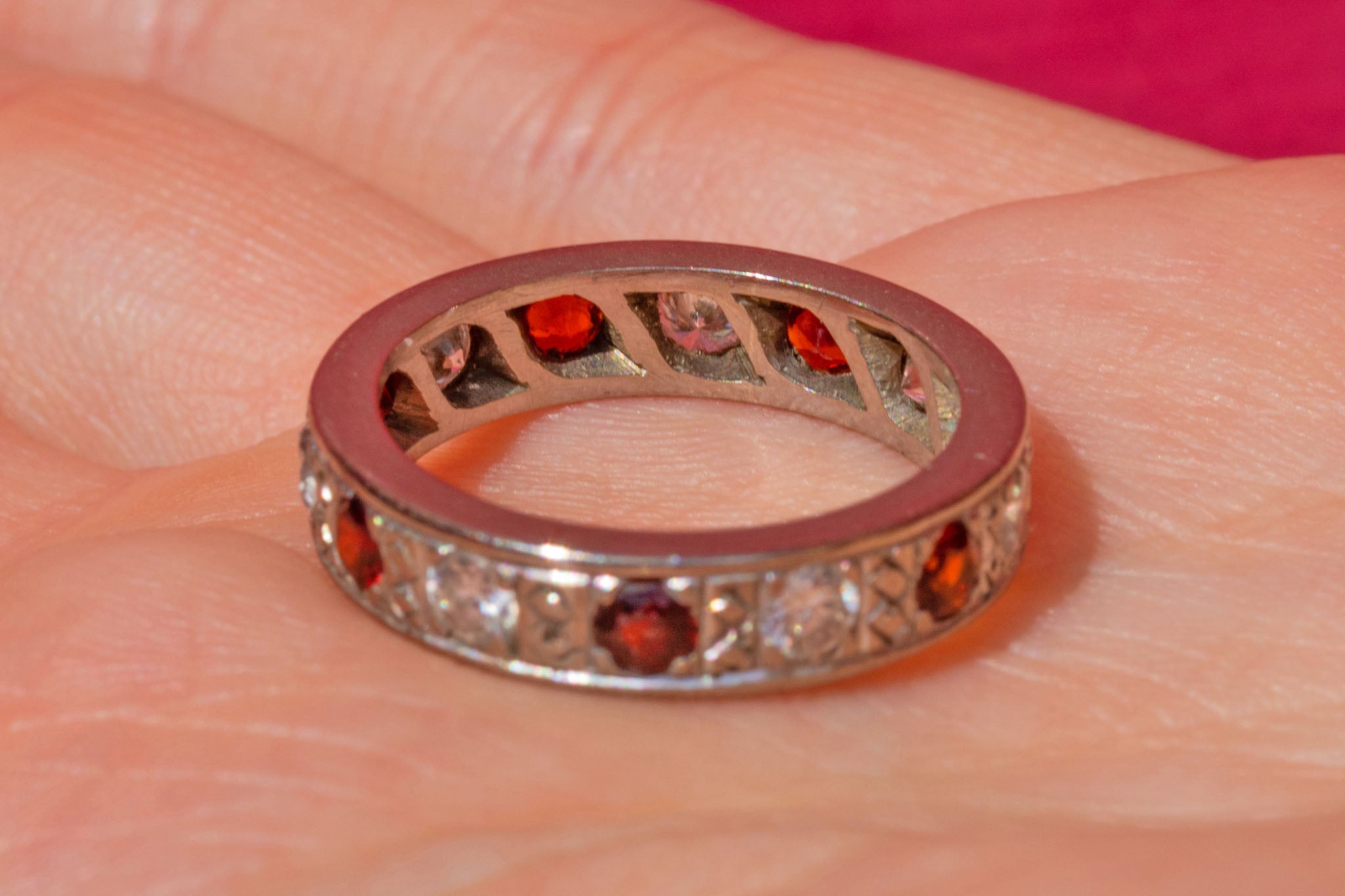 Bague Éternité Art Déco en Or 18 carats avec Grenat et Diamants, Diamants 0,42 ct