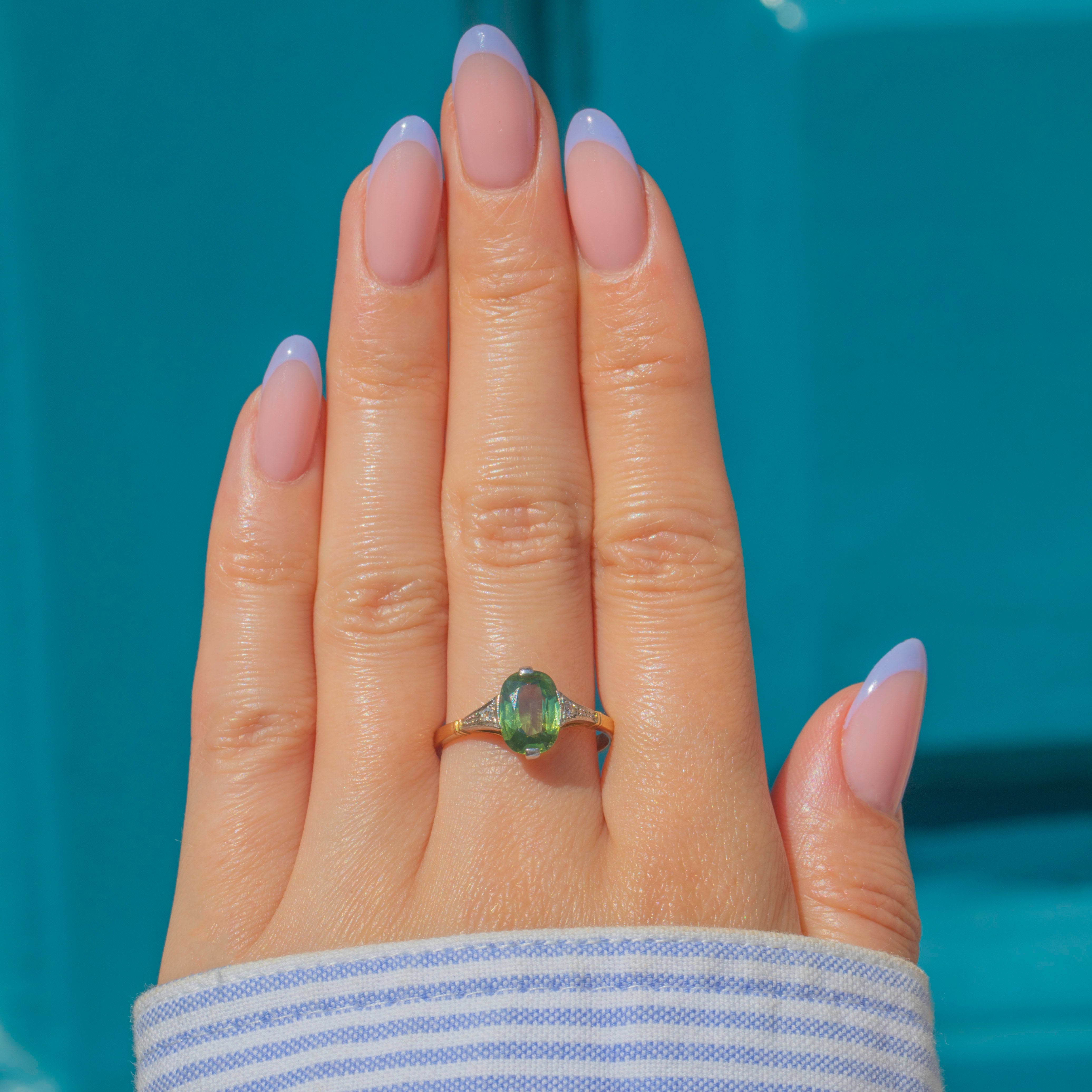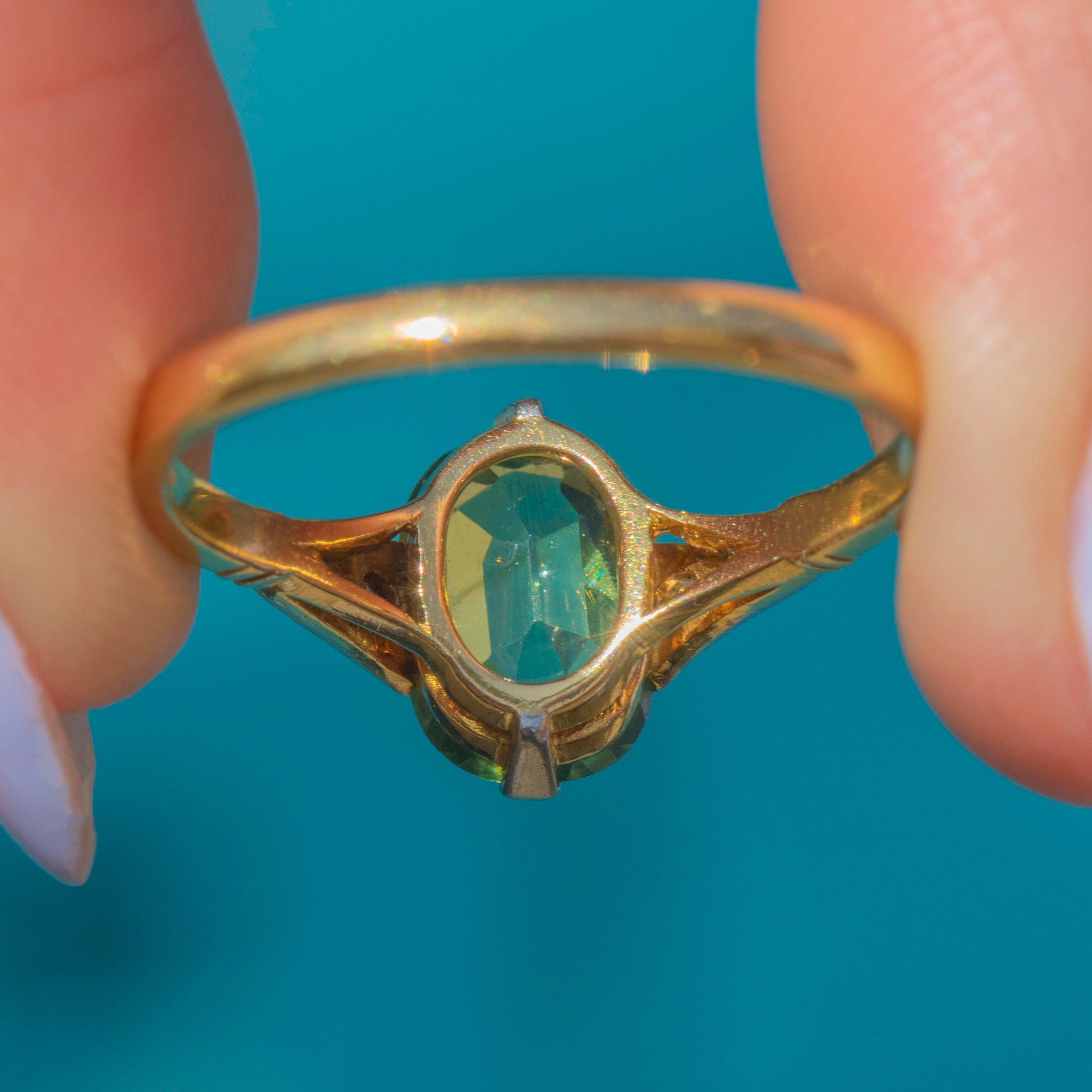 This Art Deco 18ct Gold Green Garnet Diamond ring is a stunning piece for your ring stack!