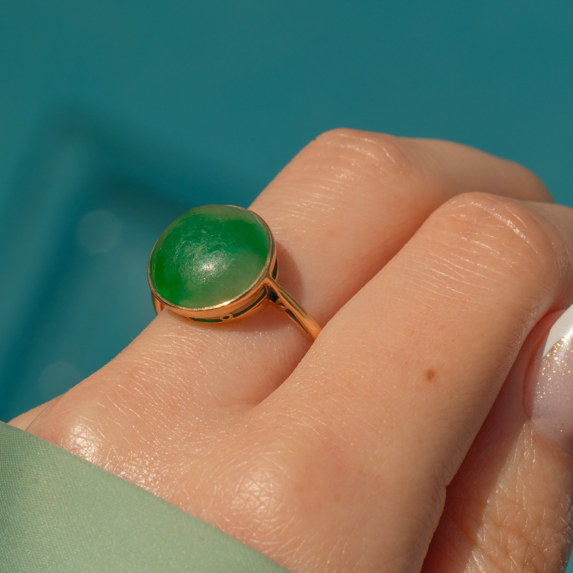 Add a pop of colour to your attire with this Art Deco 18ct Gold Jade cabochon ring!