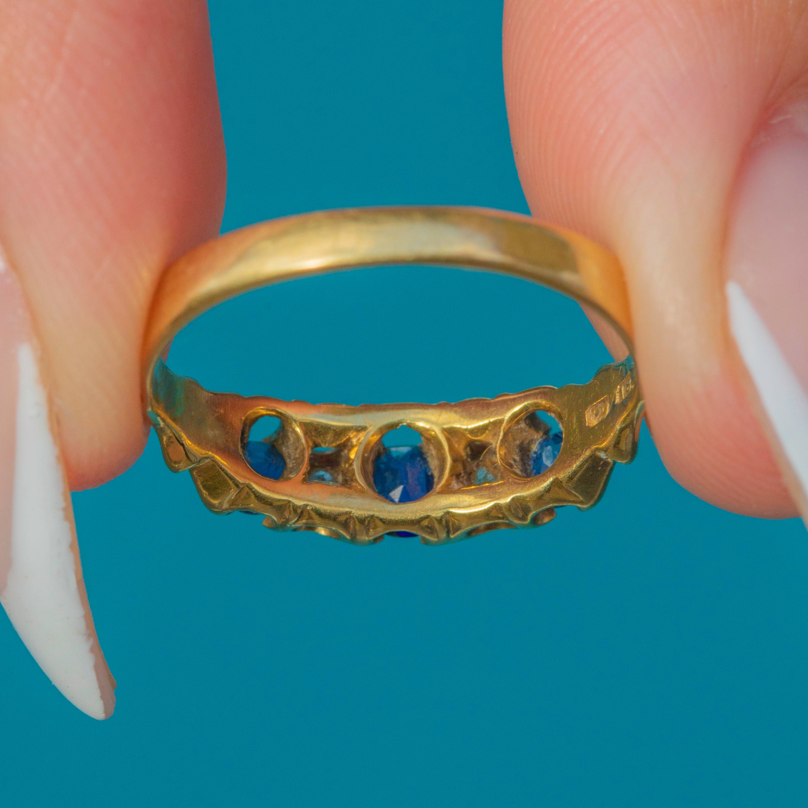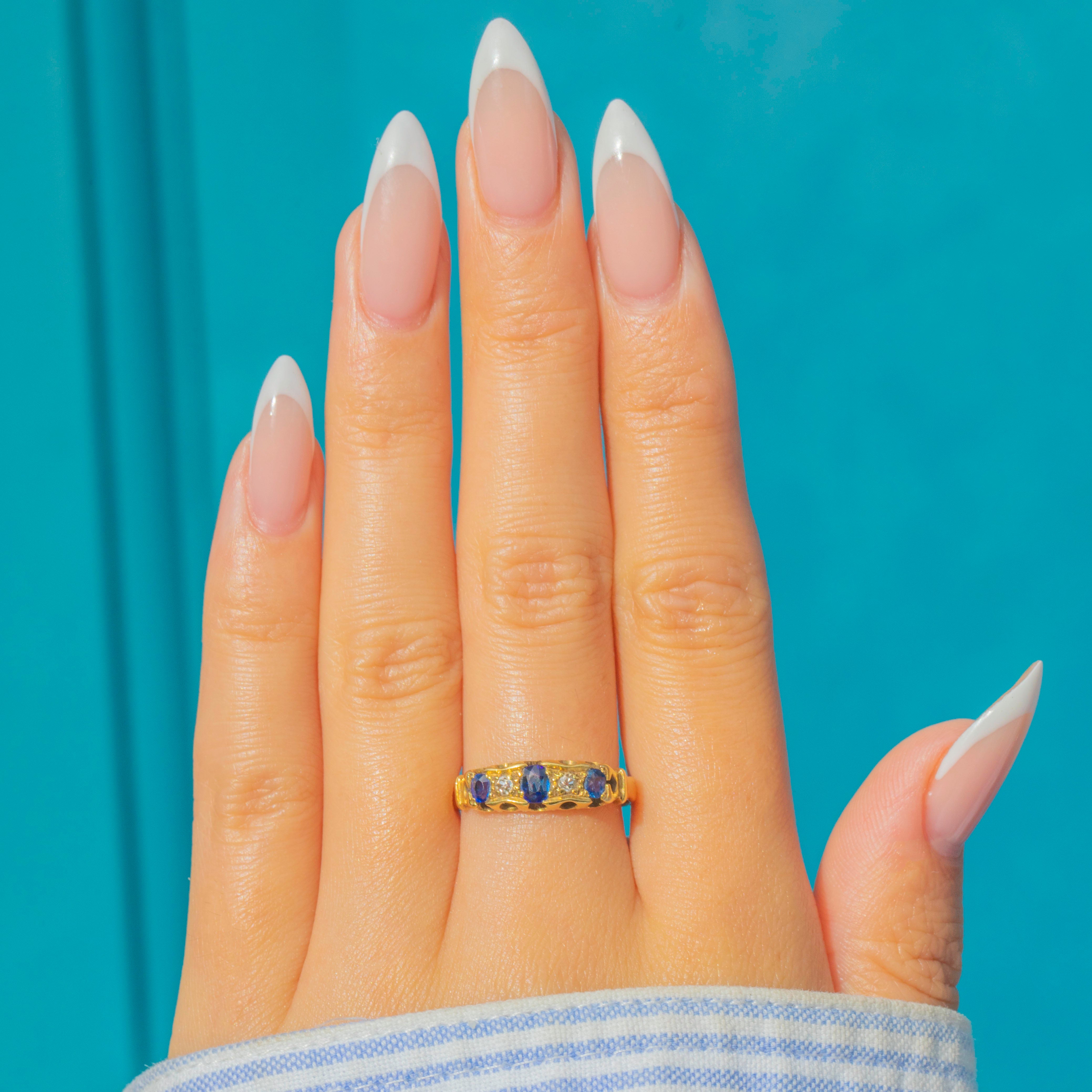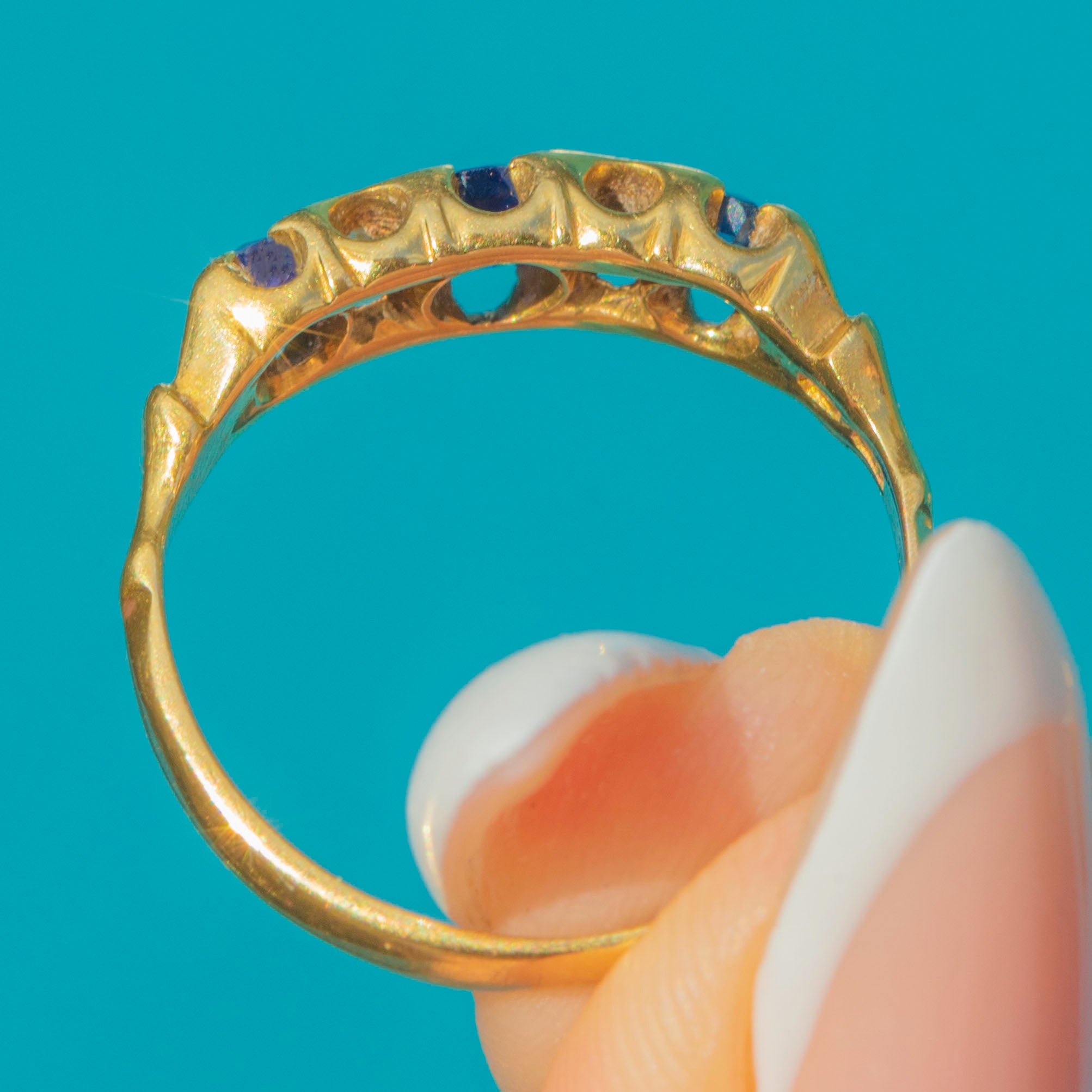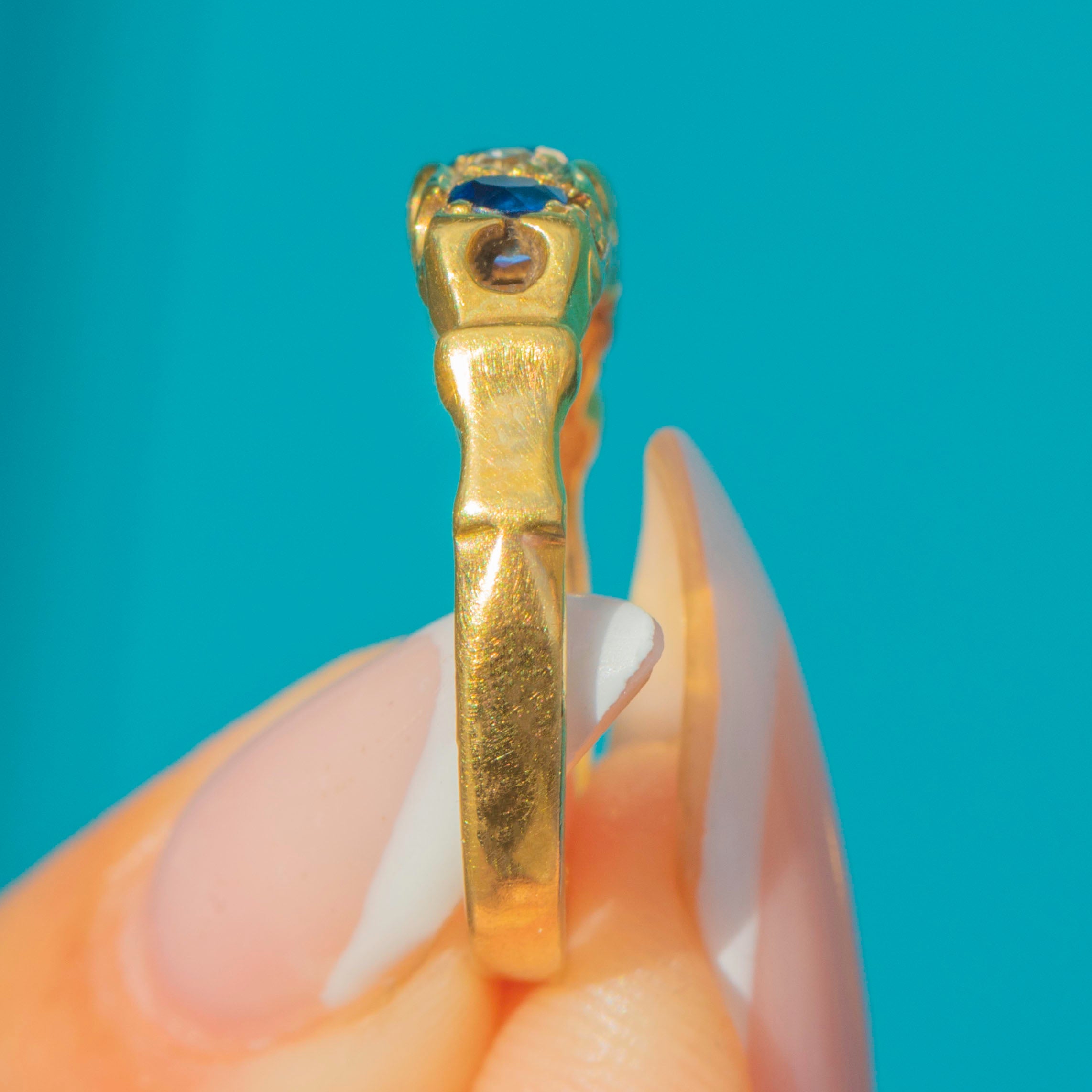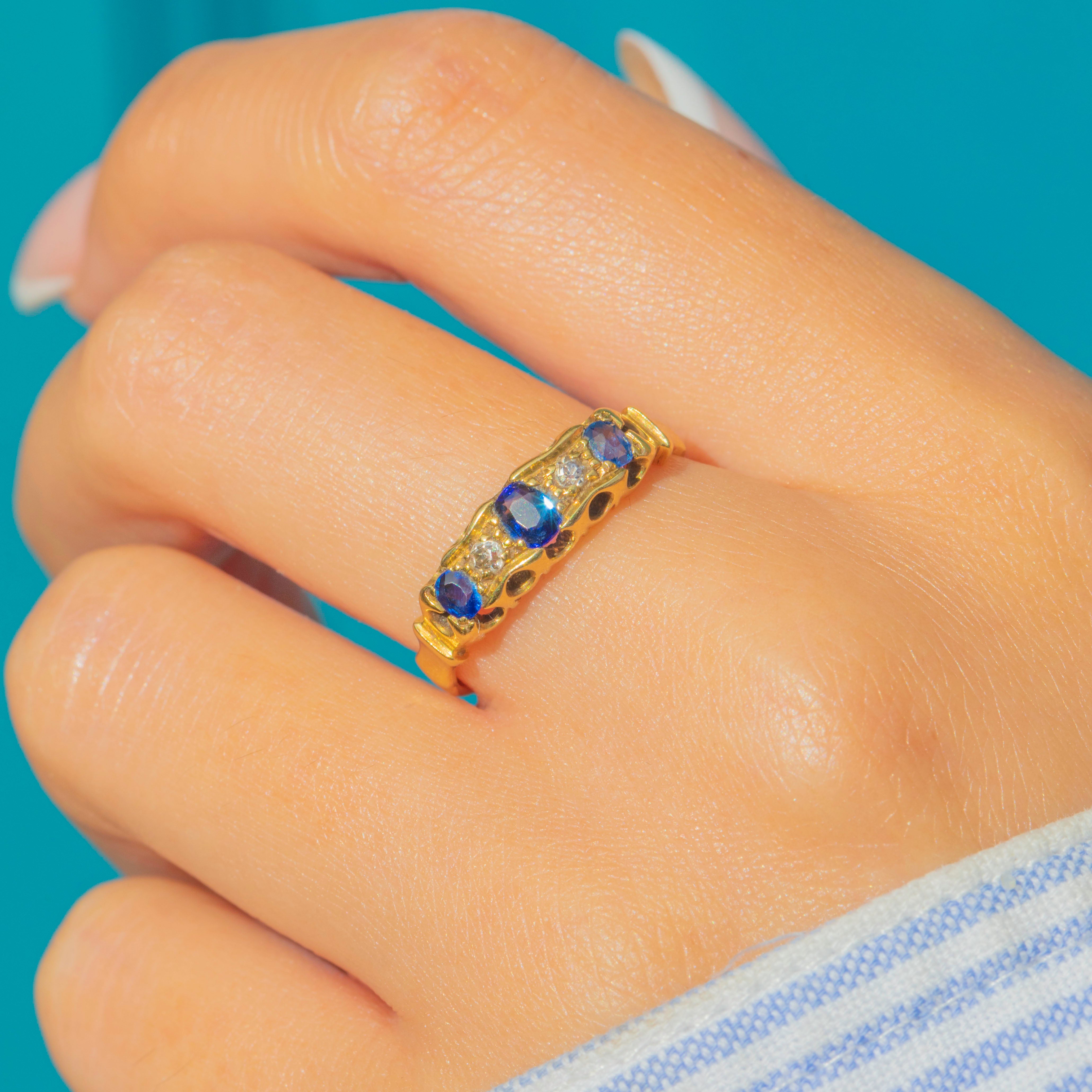 Art Deco 18ct Gold Natural Sapphire Diamond 5-Stone Ring, c.1923