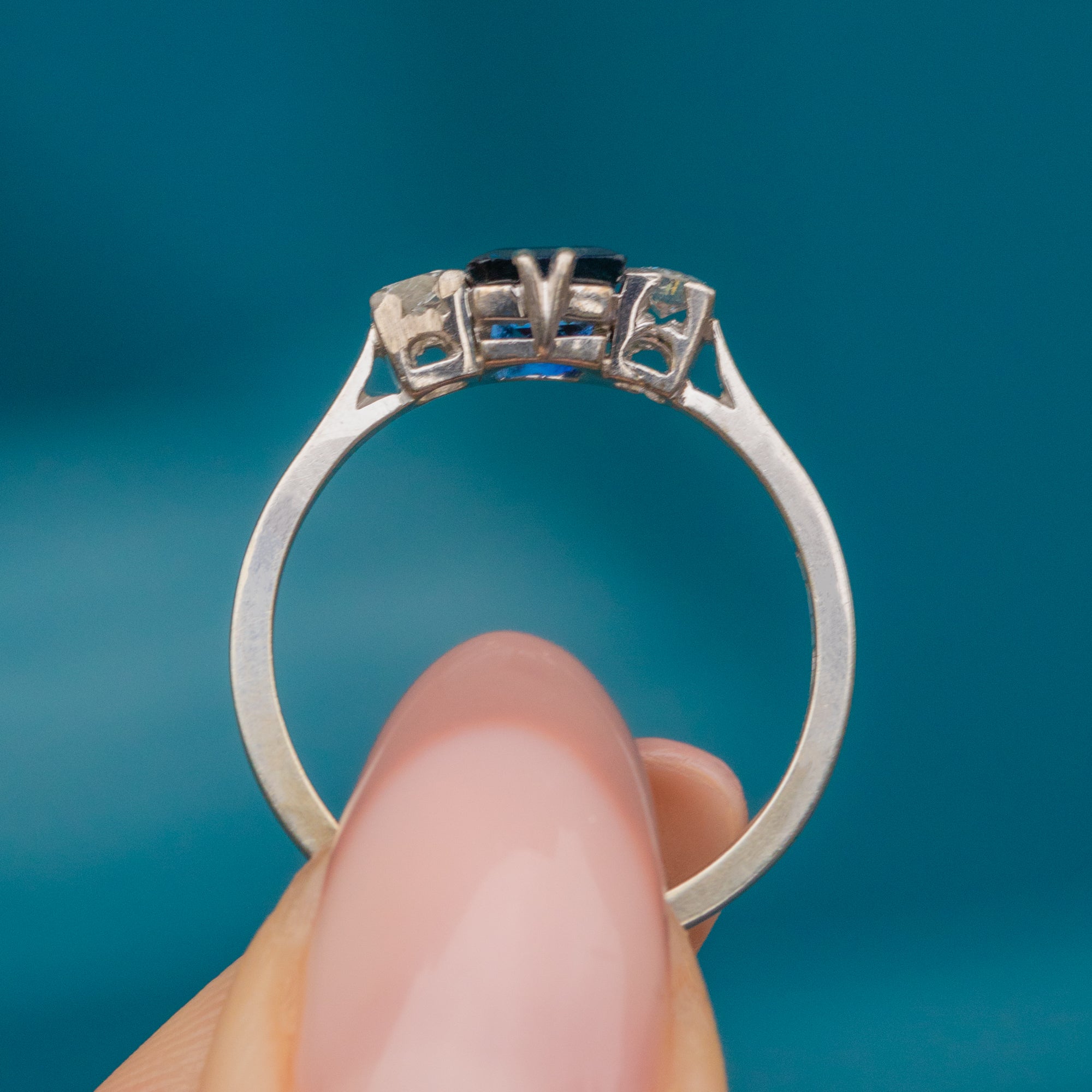 Art Deco 18ct Gold & Platinum Sapphire Diamond Trilogy Ring