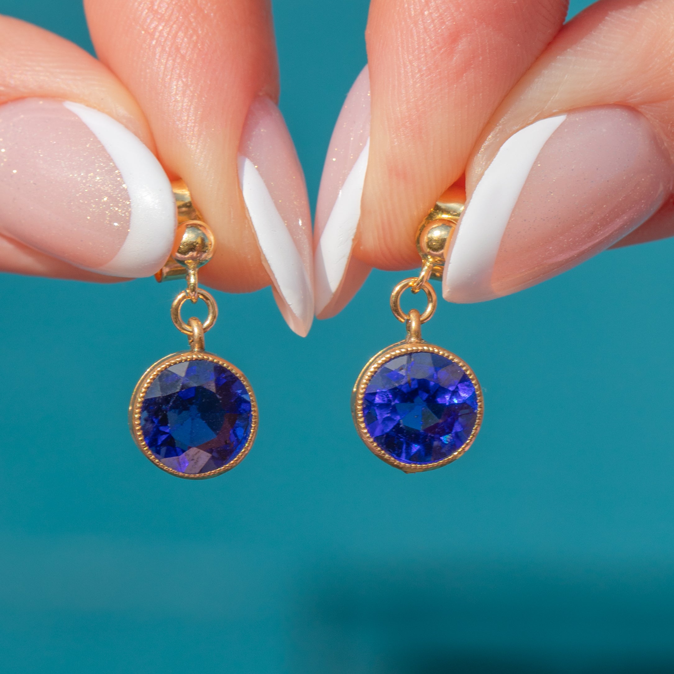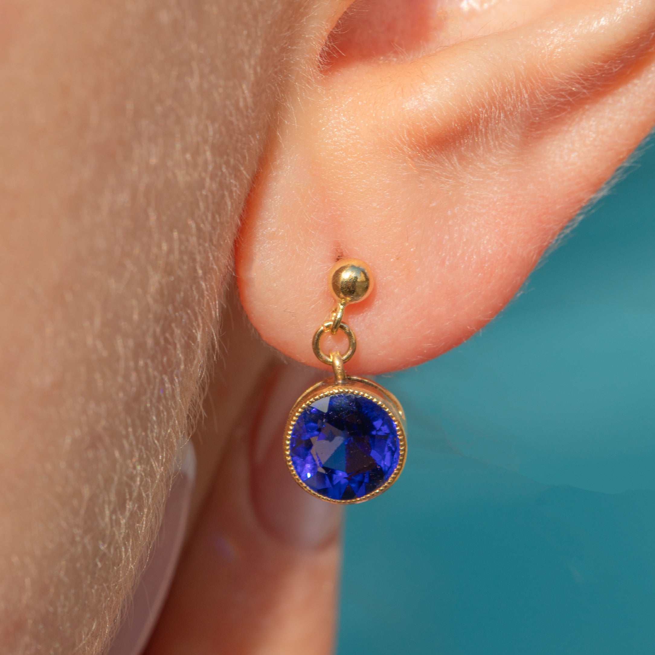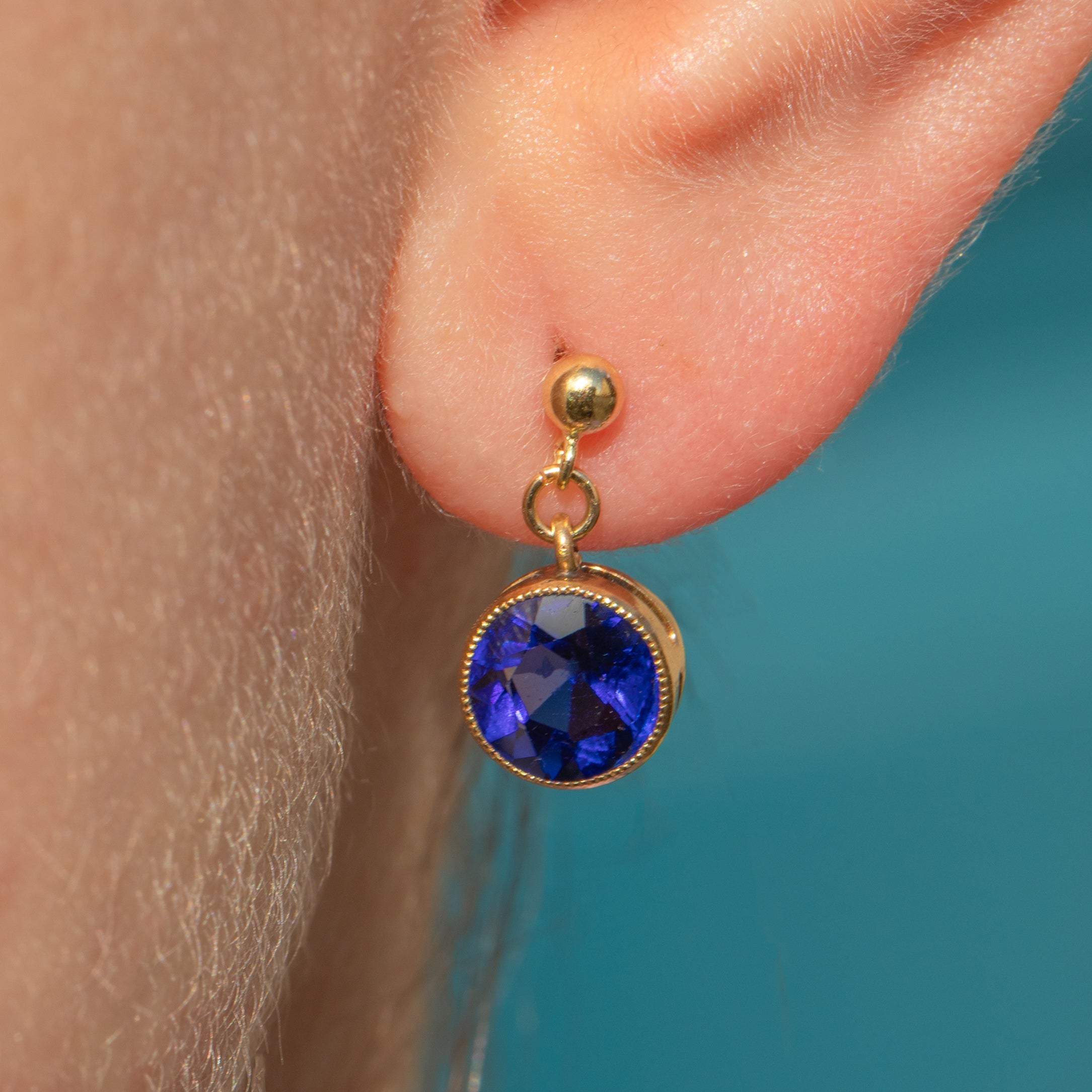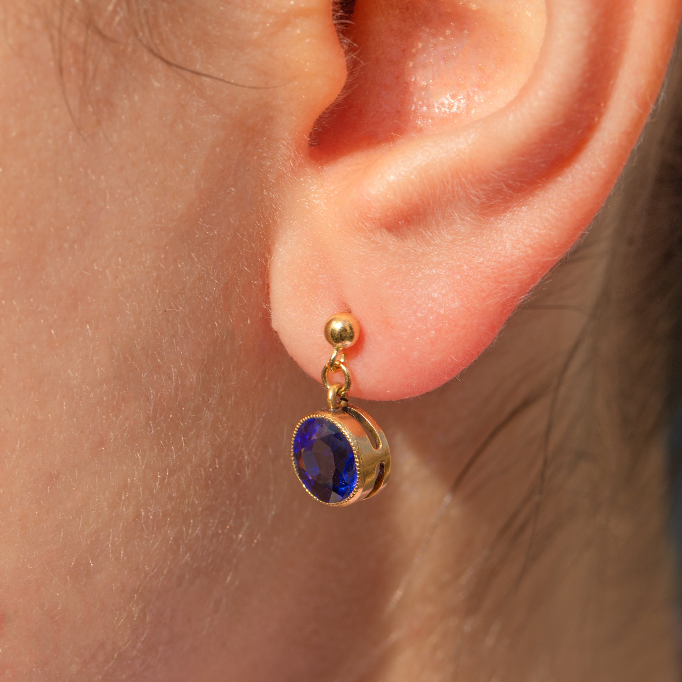 Each antique earring is centred by a gorgeous Sapphire, with a rich cerulean hue, effortlessly complimented by the warmth of their buttery 18ct Gold bezel settings.