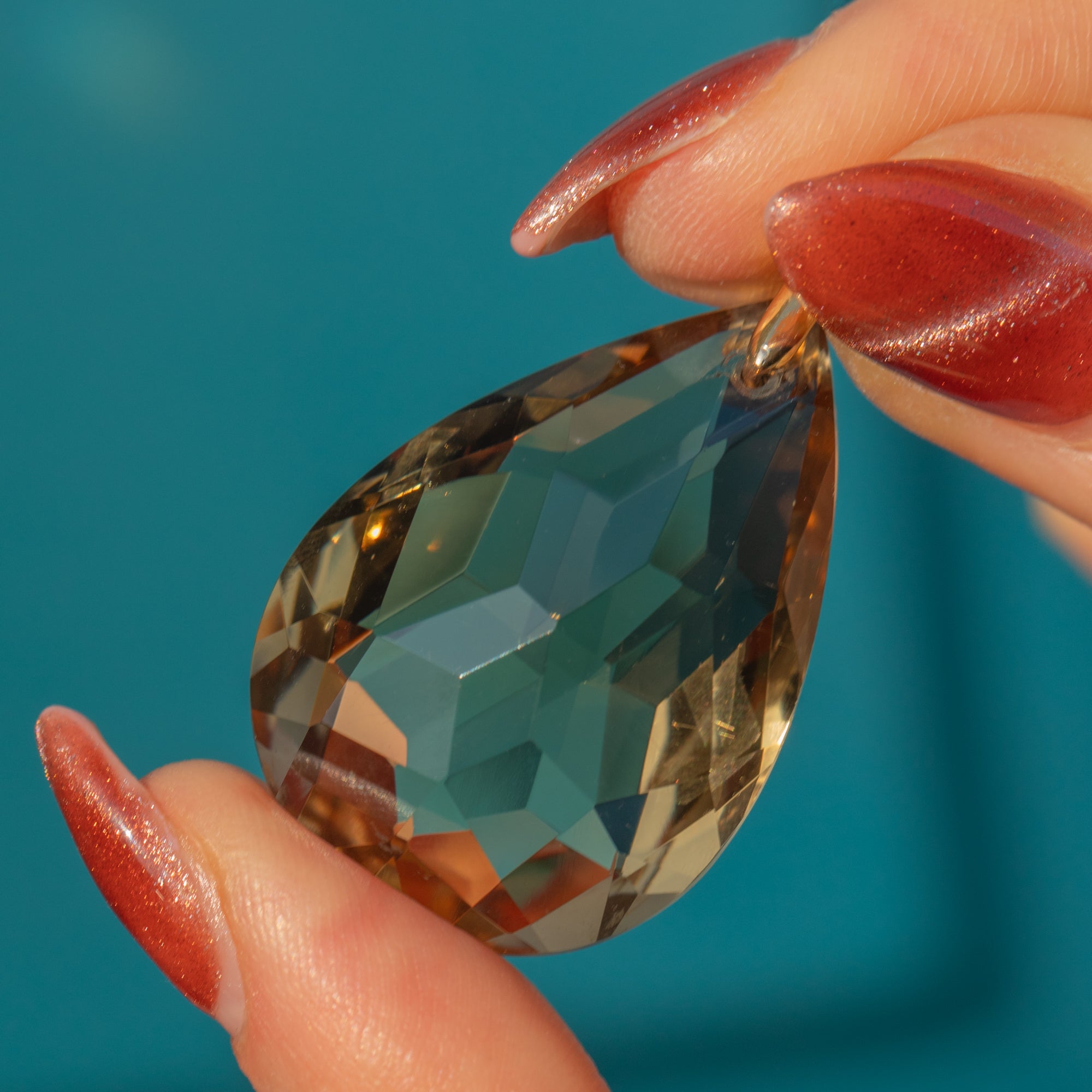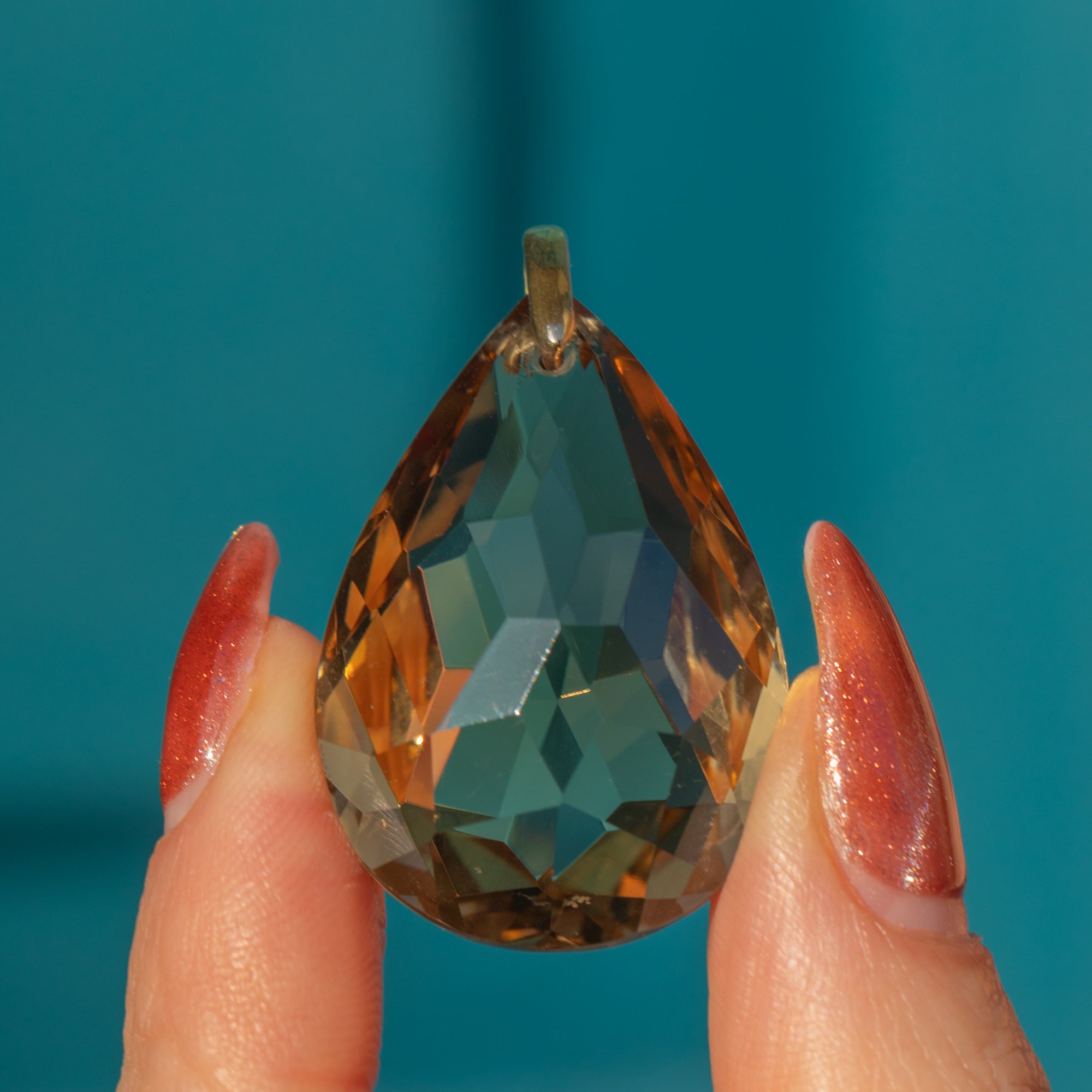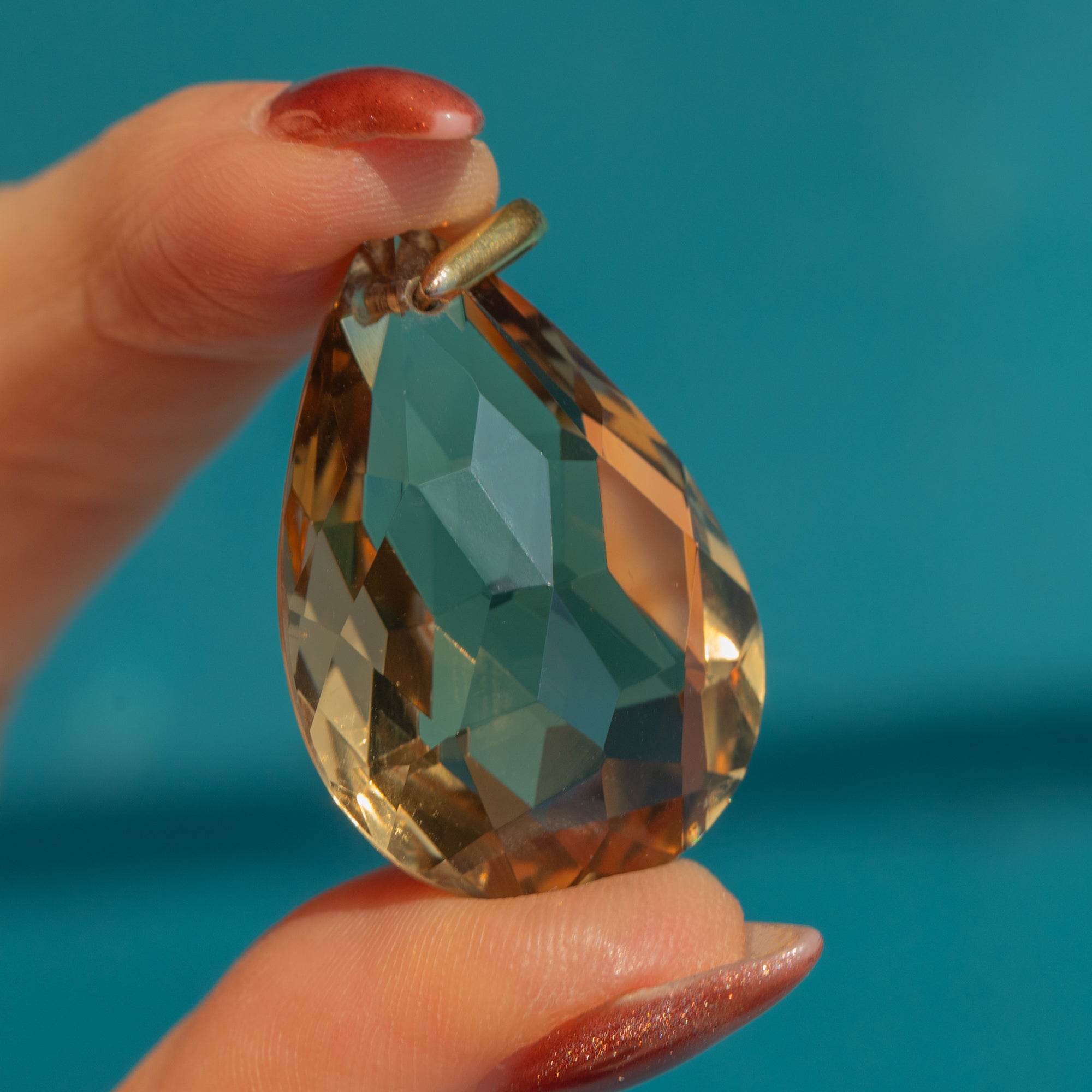 EXCELLENT. This Art Deco Smoky Quartz pear drop pendant is delicious! The facets are crisp, with only very mild signs of wear. The sturdy 18ct Gold bale allows you to suspend this piece from a fine Gold chain with the utmost confidence!