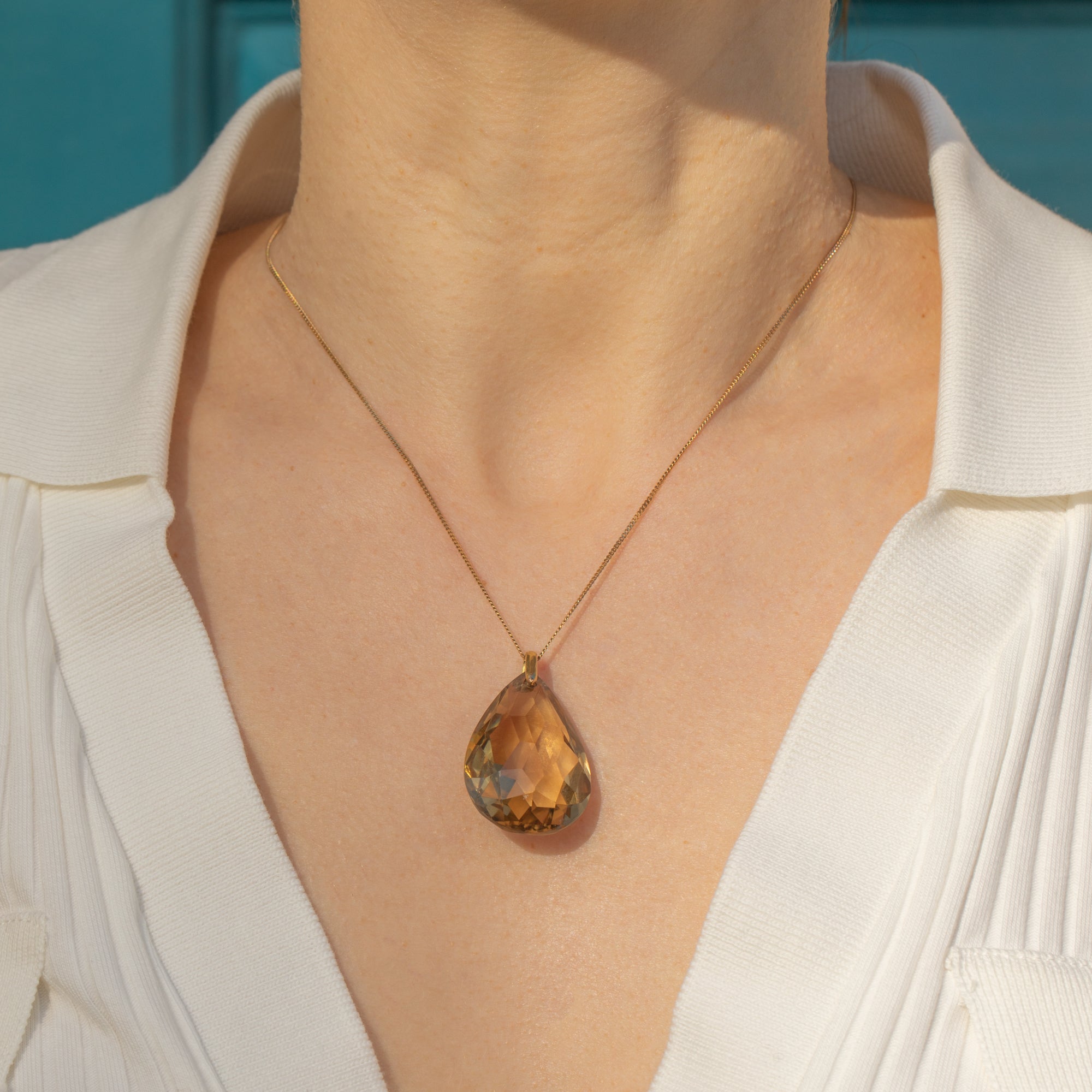 Art Deco 18ct Gold Smoky Quartz Pear Drop Pendant, 48.00ct