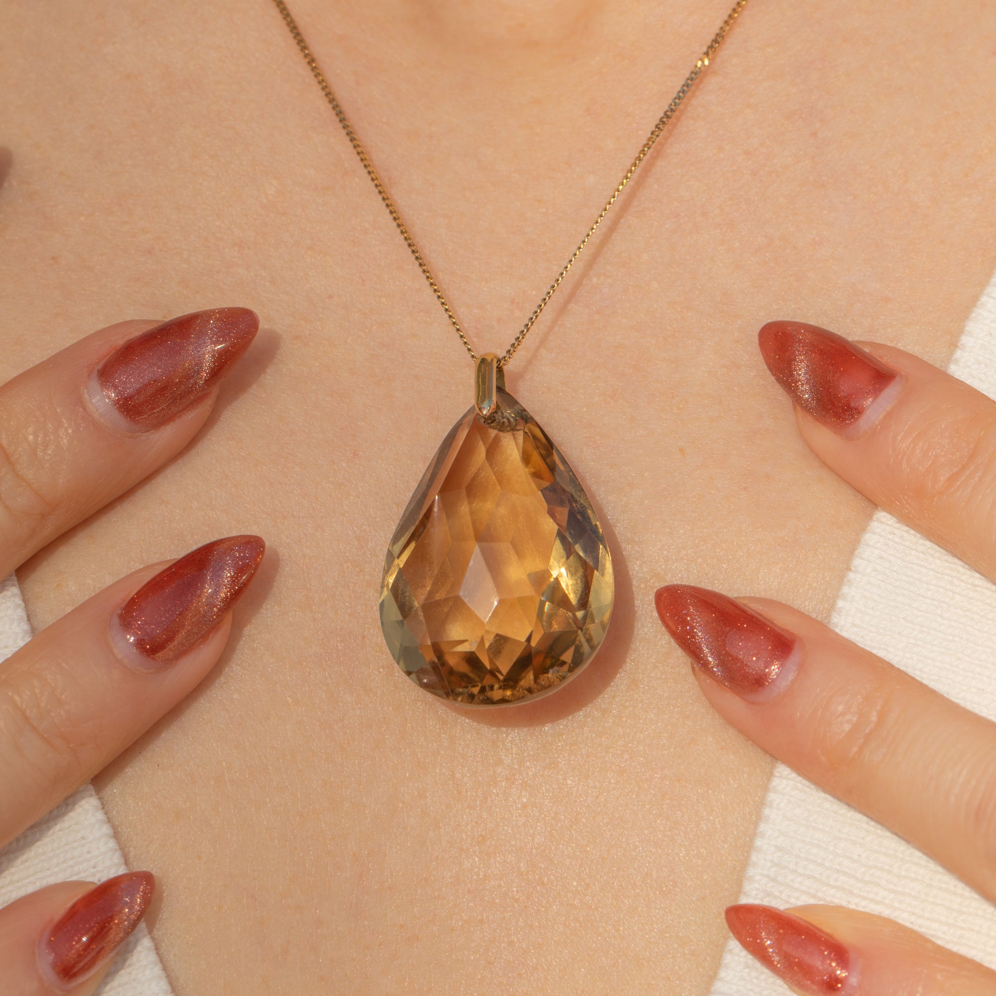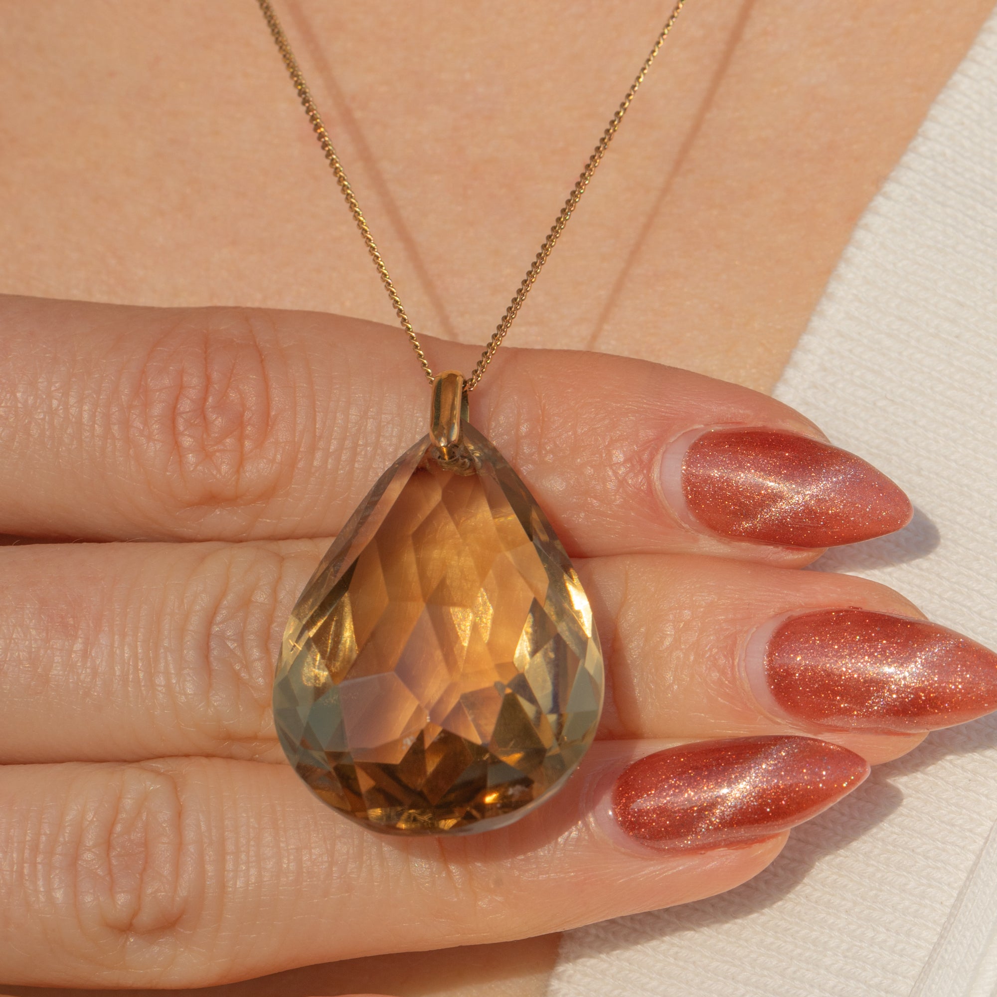 Marvel at the cedar tones of this Art Deco 18ct Gold Smoky Quartz pear drop pendant! She has such an elegant design that would drop perfectly from a Gold chain.