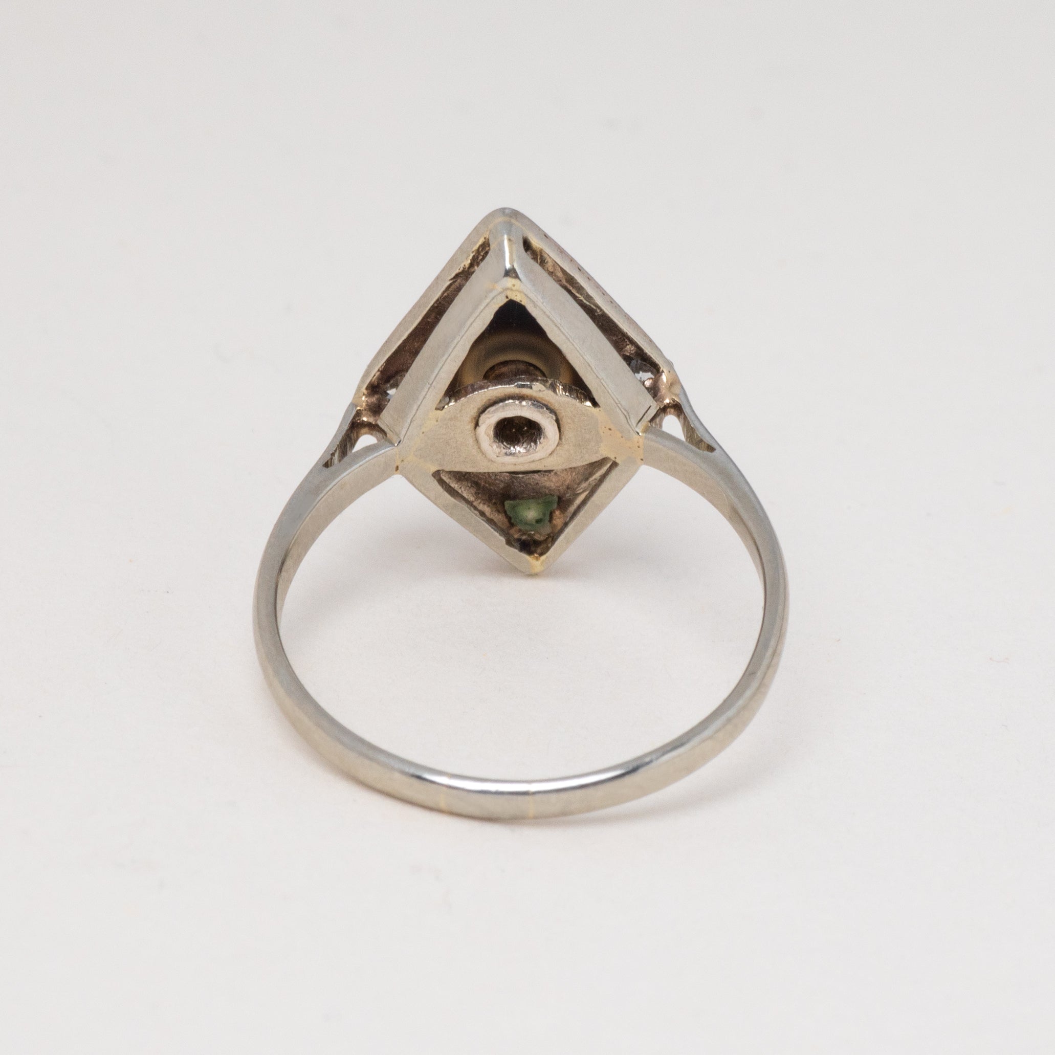 VERY GOOD-EXCELLENT. This Art Deco 18ct white Gold Onyx Diamond panel ring is in wonderful condition. The ring face is pristine, with each gemstone securely set and free from any wear. The millgrain detailing has remained crisp with no damage to note. The form of this art Deco ring is fabulous with the ring band remaining circular. There is evidence of resizing to the back, however this cannot be seen when worn. You won't regret making this Diamond Onyx ring yours!