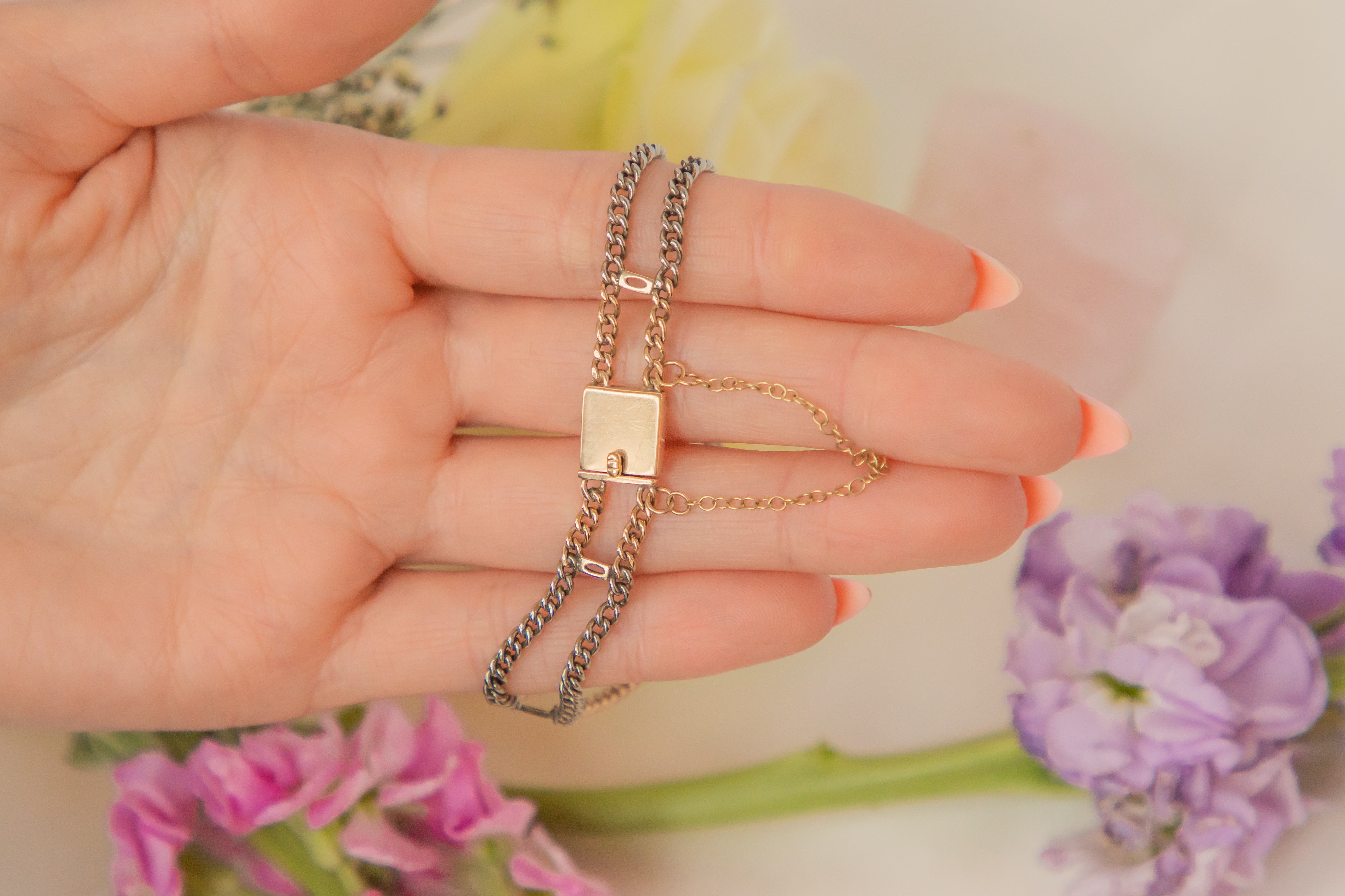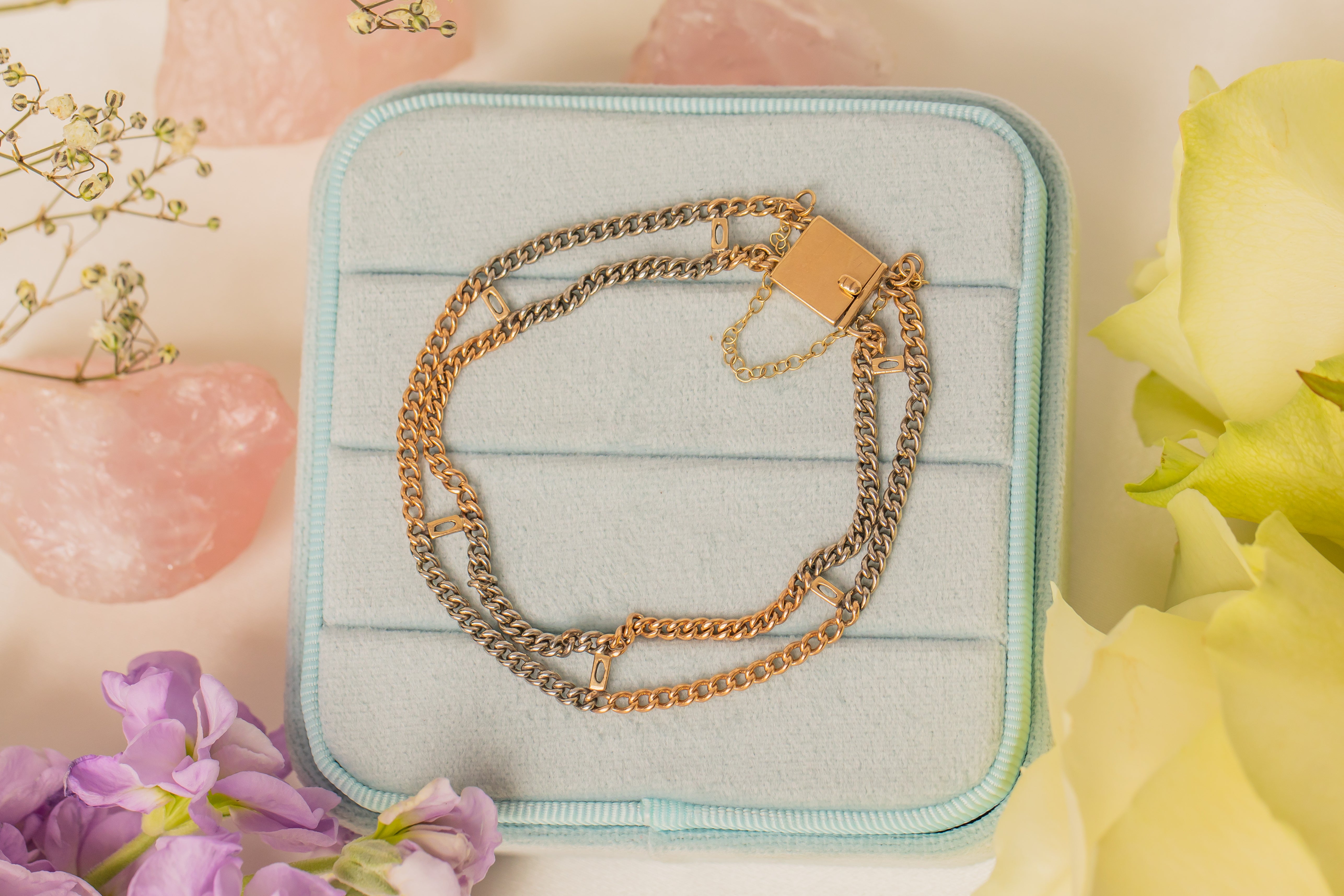 Bracelet bicolore en or 9 carats Art Déco, 9,3 g