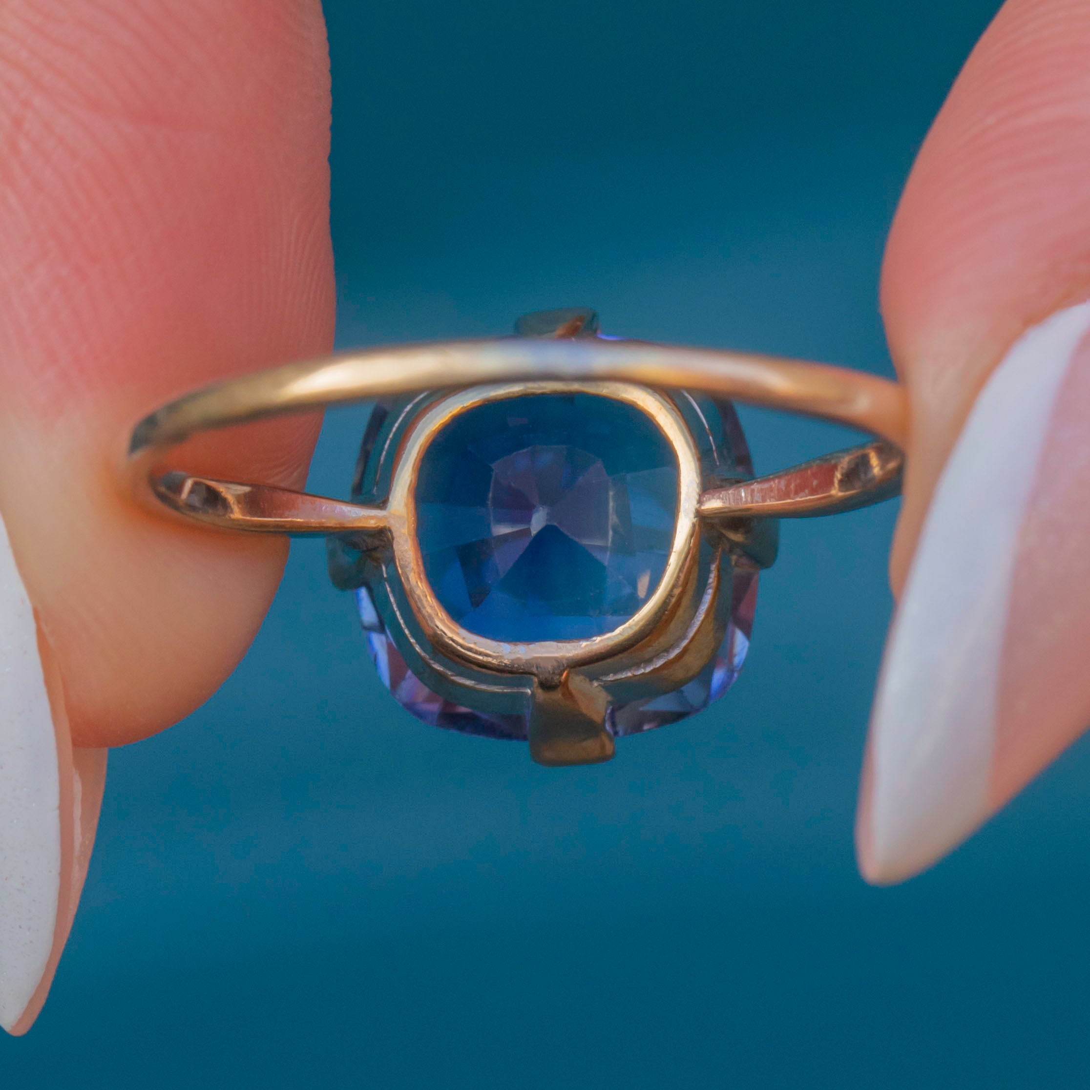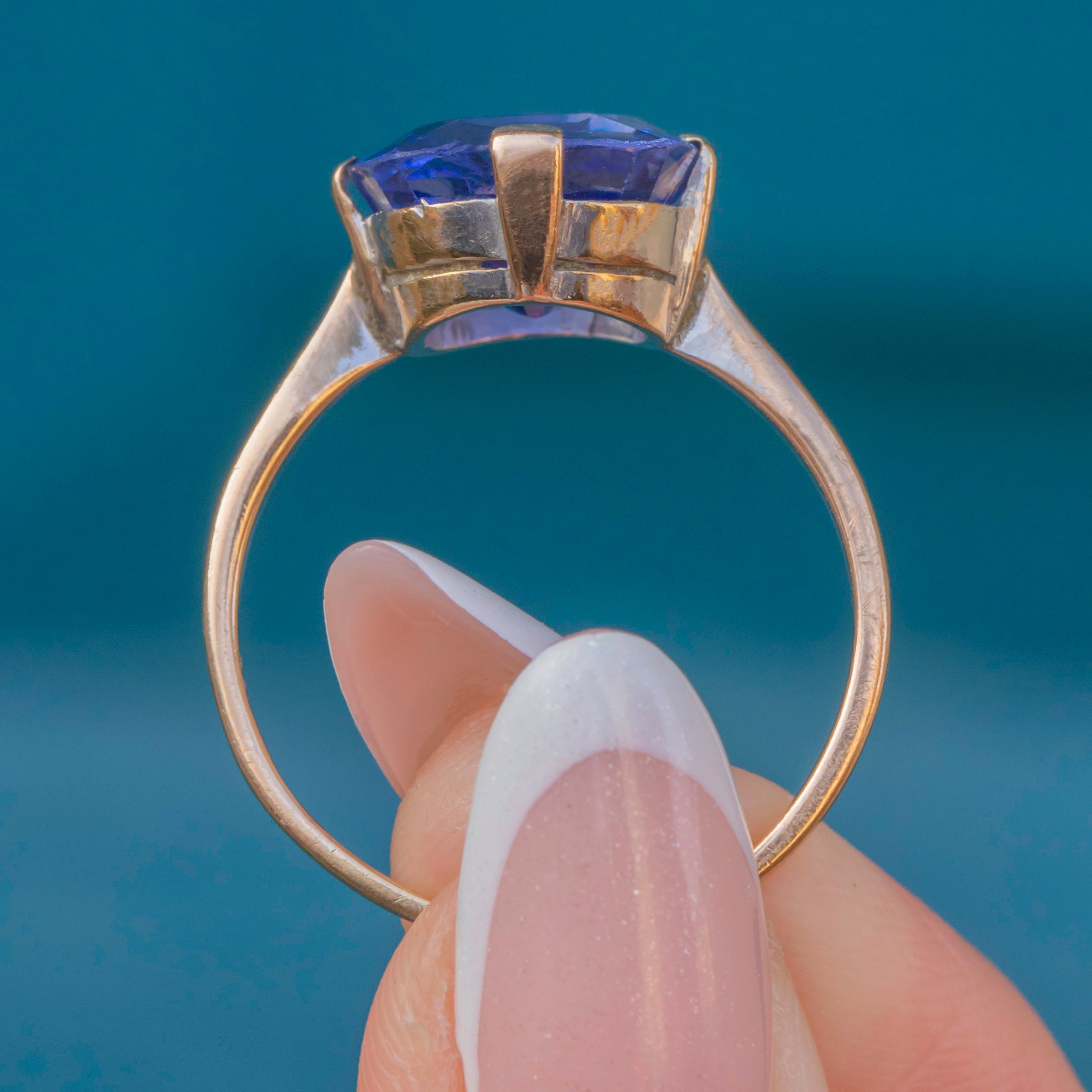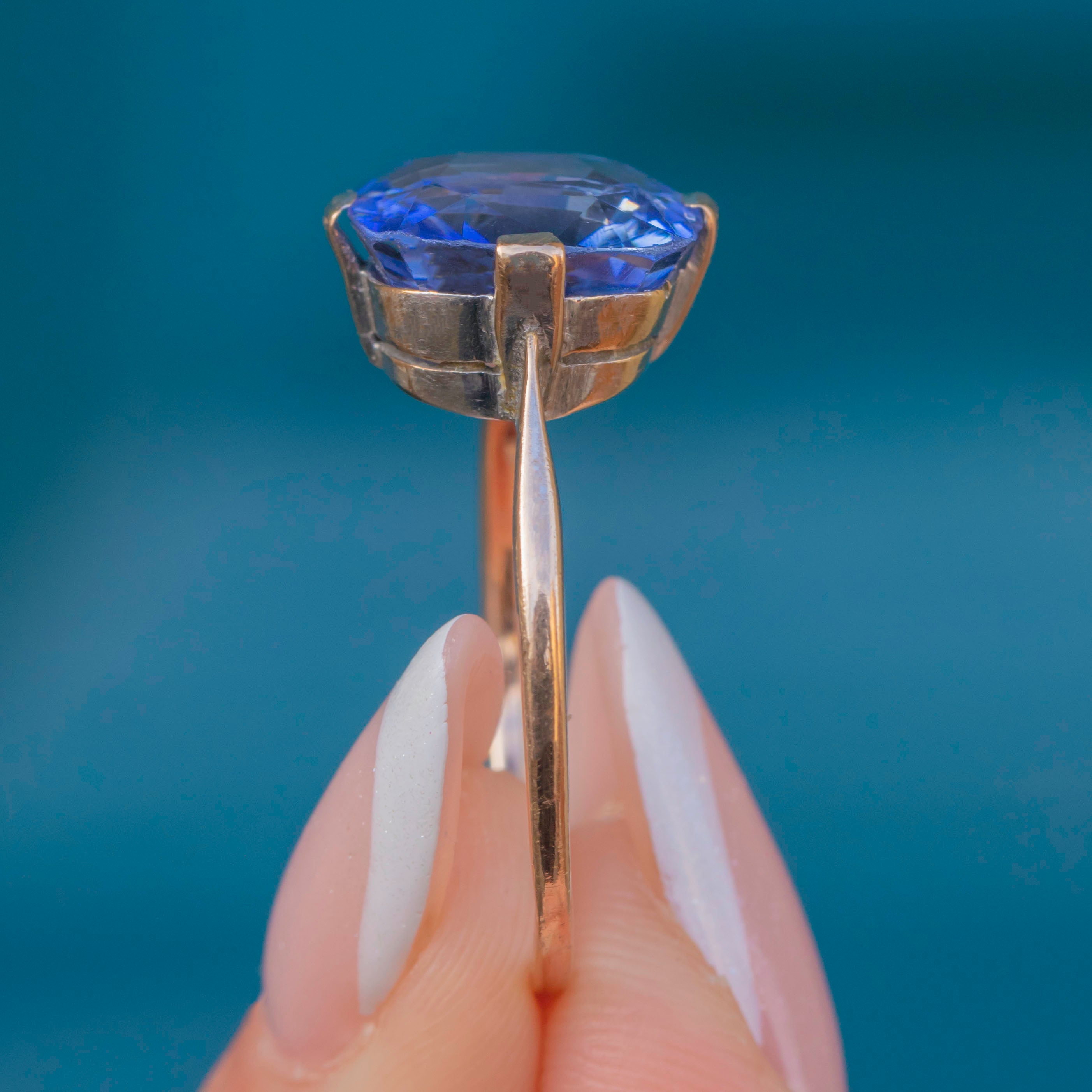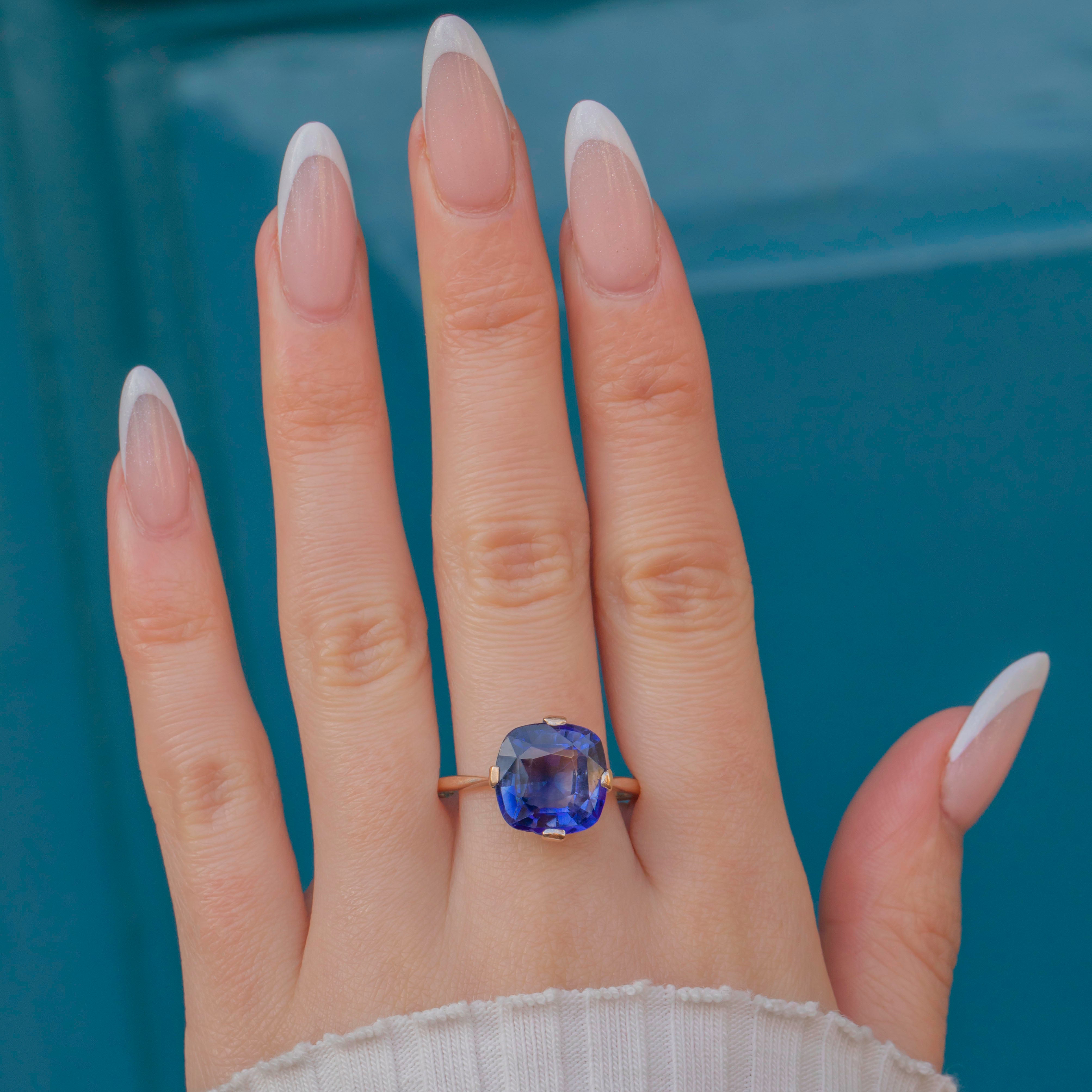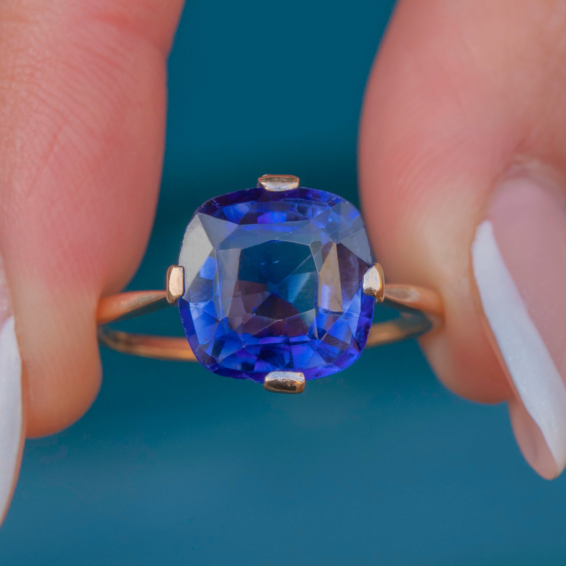 Art Deco 9ct Gold Blue Sapphire Ring, 4.70ct