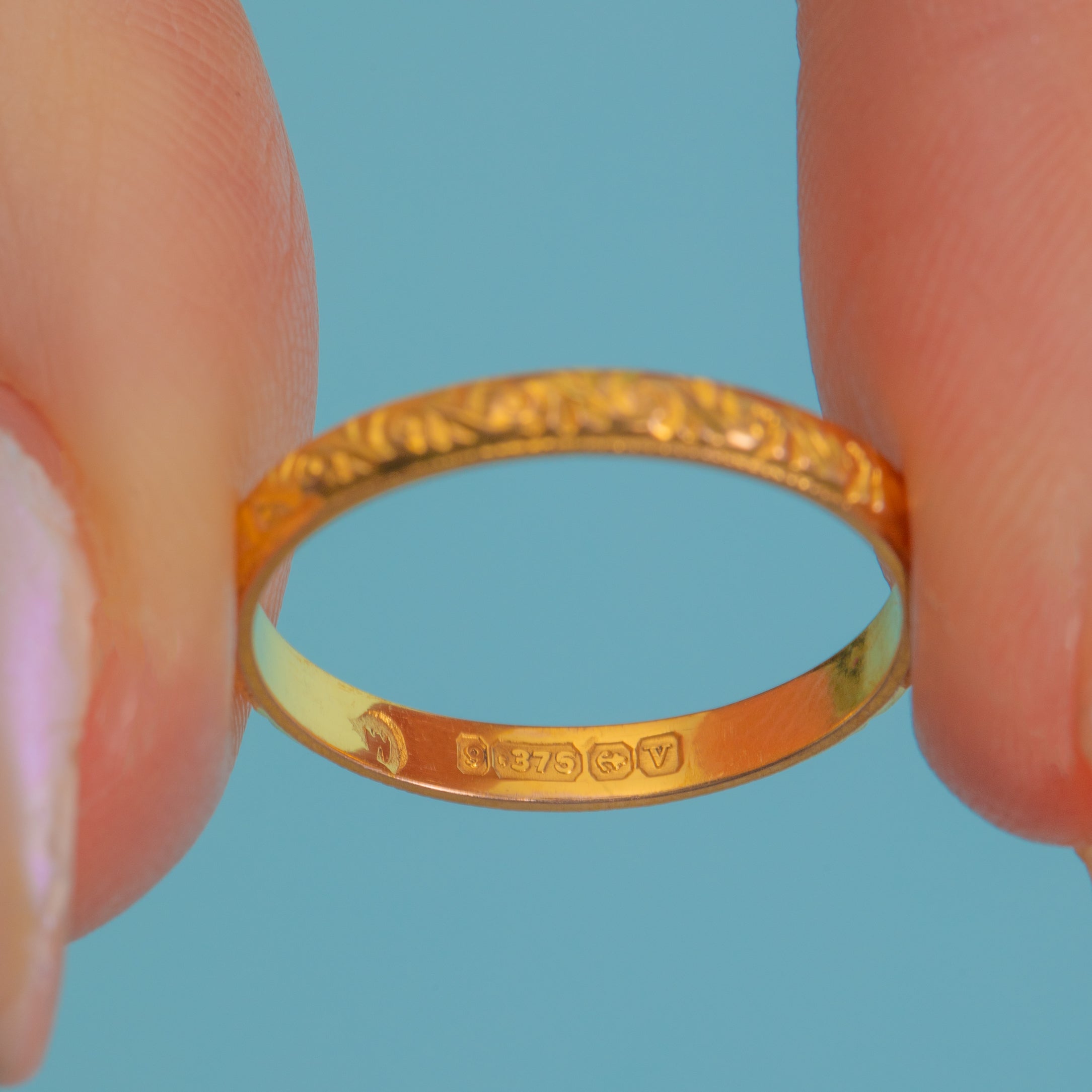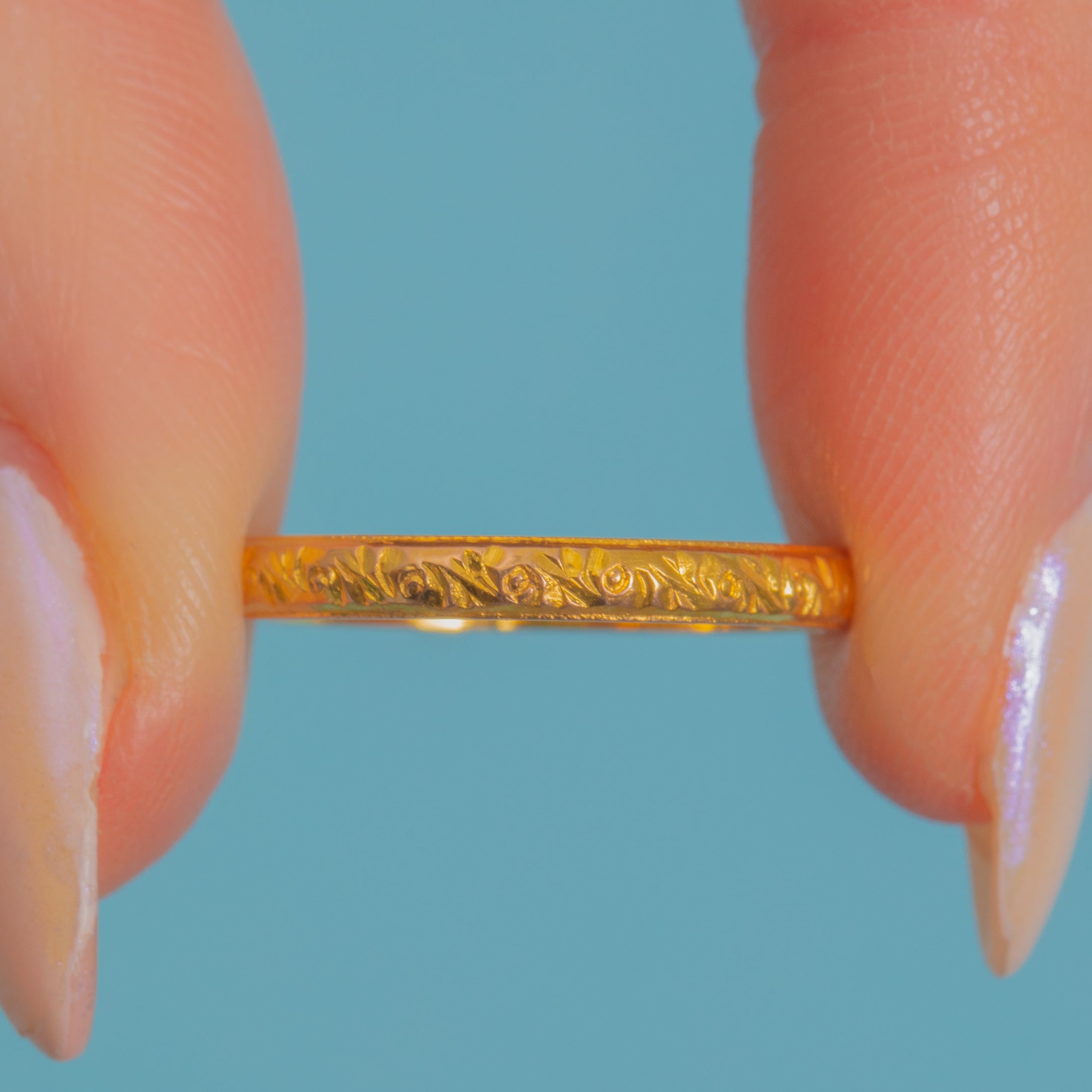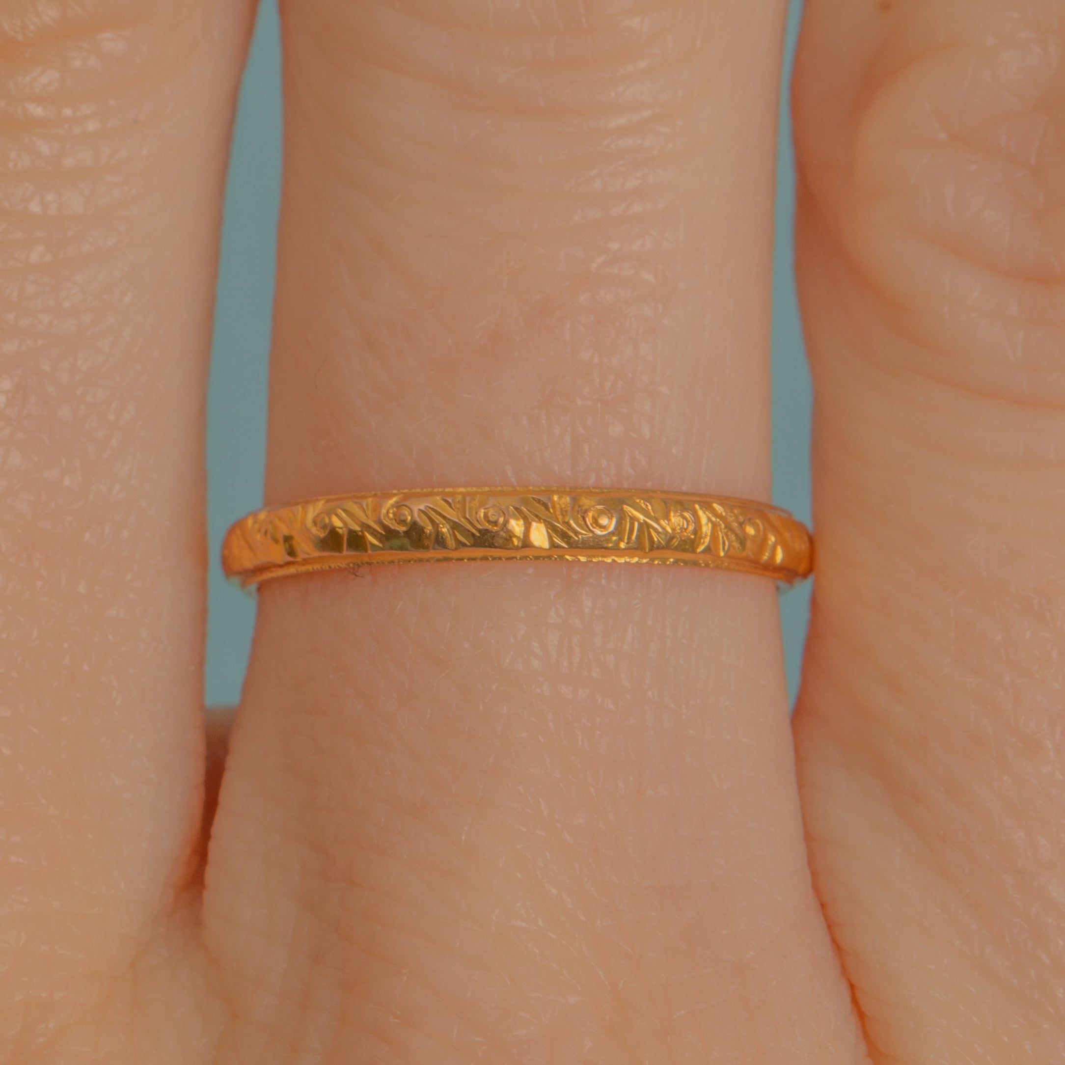 Bague empilable gravée en or 9 carats Art déco, vers 1920