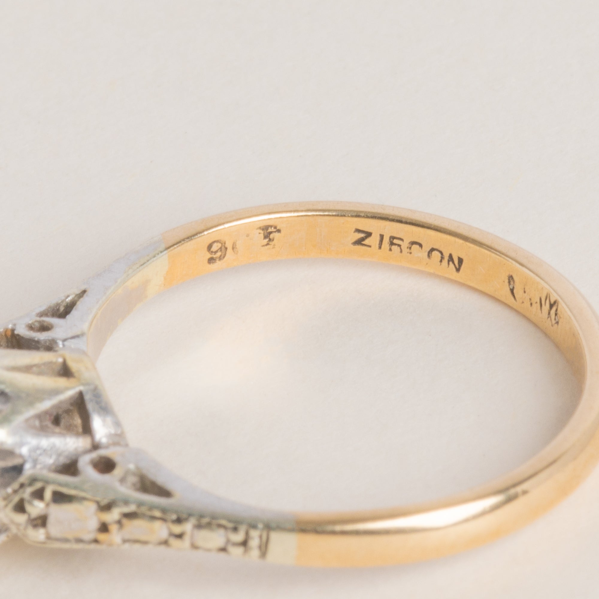 EXCELLENT. This Art Deco 9ct Gold Moonstone solitaire ring is in excellent condition throughout. Her Moonstone cabochon is free from any notable damage and remains securely set, and the Gold is pristine with a robust band providing secure and comfortable wear. The word 'Zircon' is inscribed on the inside of the band, so we believe the Moonstone to be a replacement, which has been carried out very well.