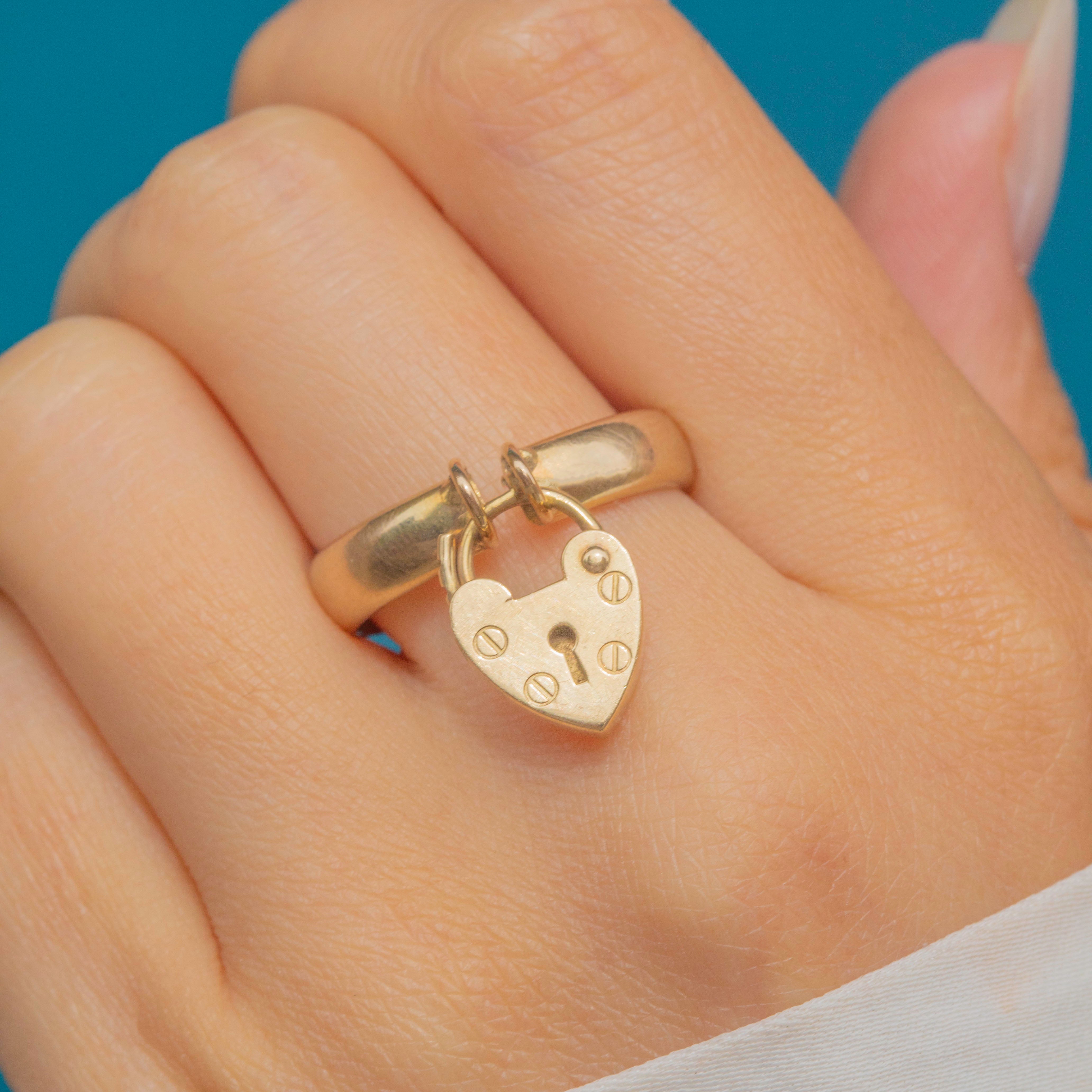 Art Deco 9ct Gold Ring with Heart Padlock Charm, c.1935