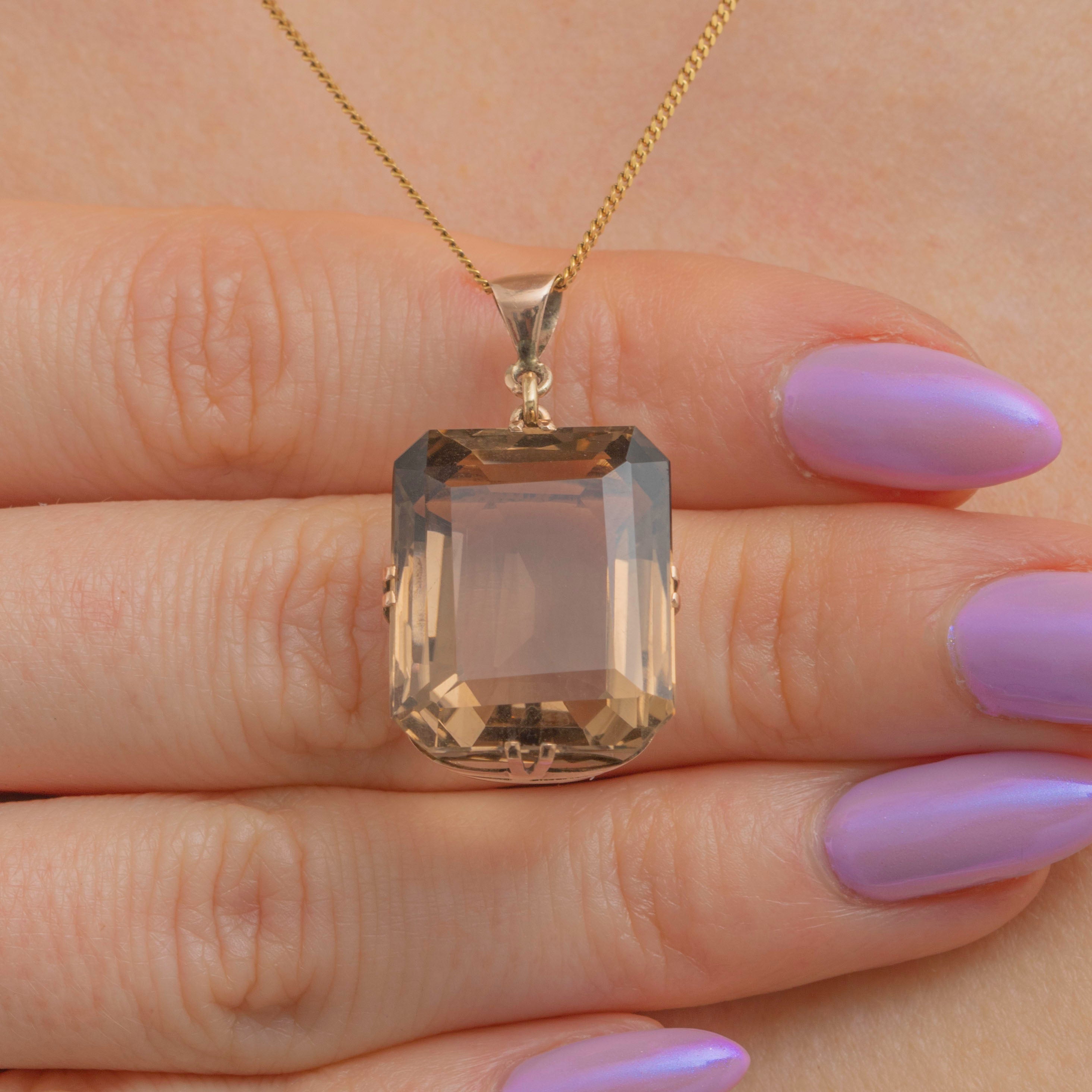 This Art Deco 9ct Gold Smokey Quartz pendant will provide a rich look of elegance for any occasion! Boasting an unmissable 30.00ct Smokey Quartz displaying deep chocolate brown hues, this antique Smokey Quartz pendant is simply delicious.