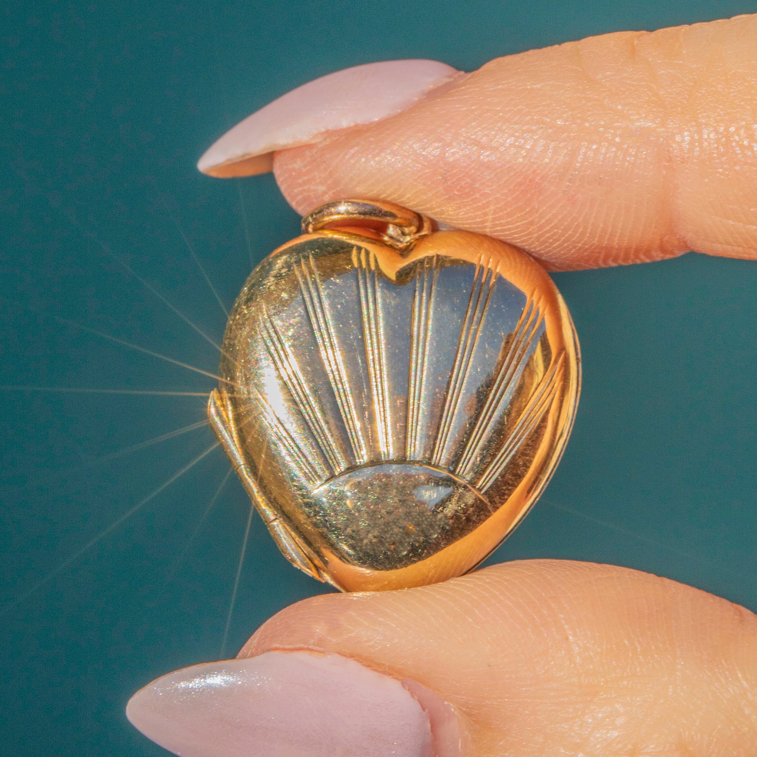 Art Deco 9ct Gold Sunburst Heart Locket