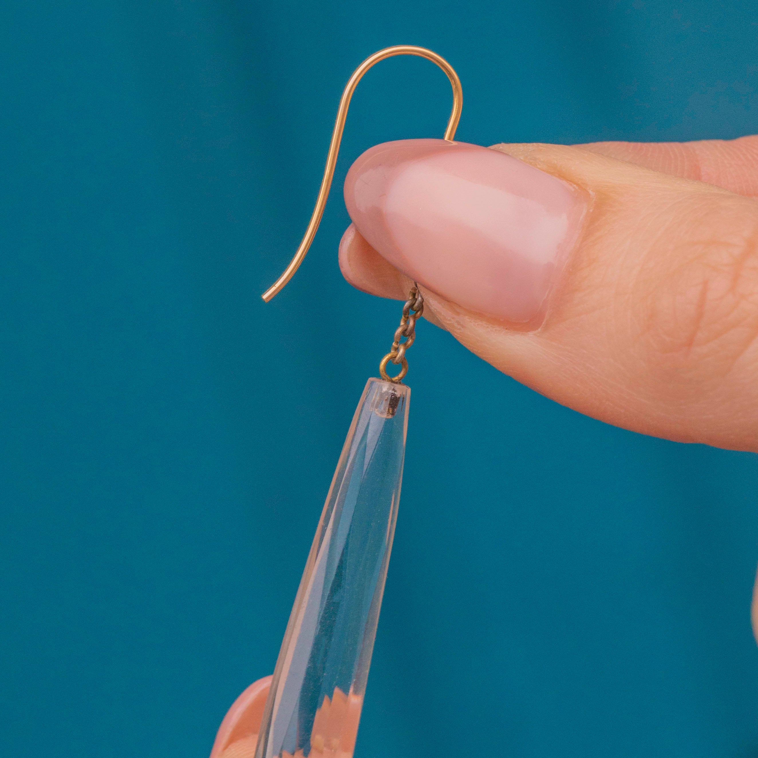 Art Deco Faceted Rock Crystal Drop Earrings, 9ct Gold Hooks