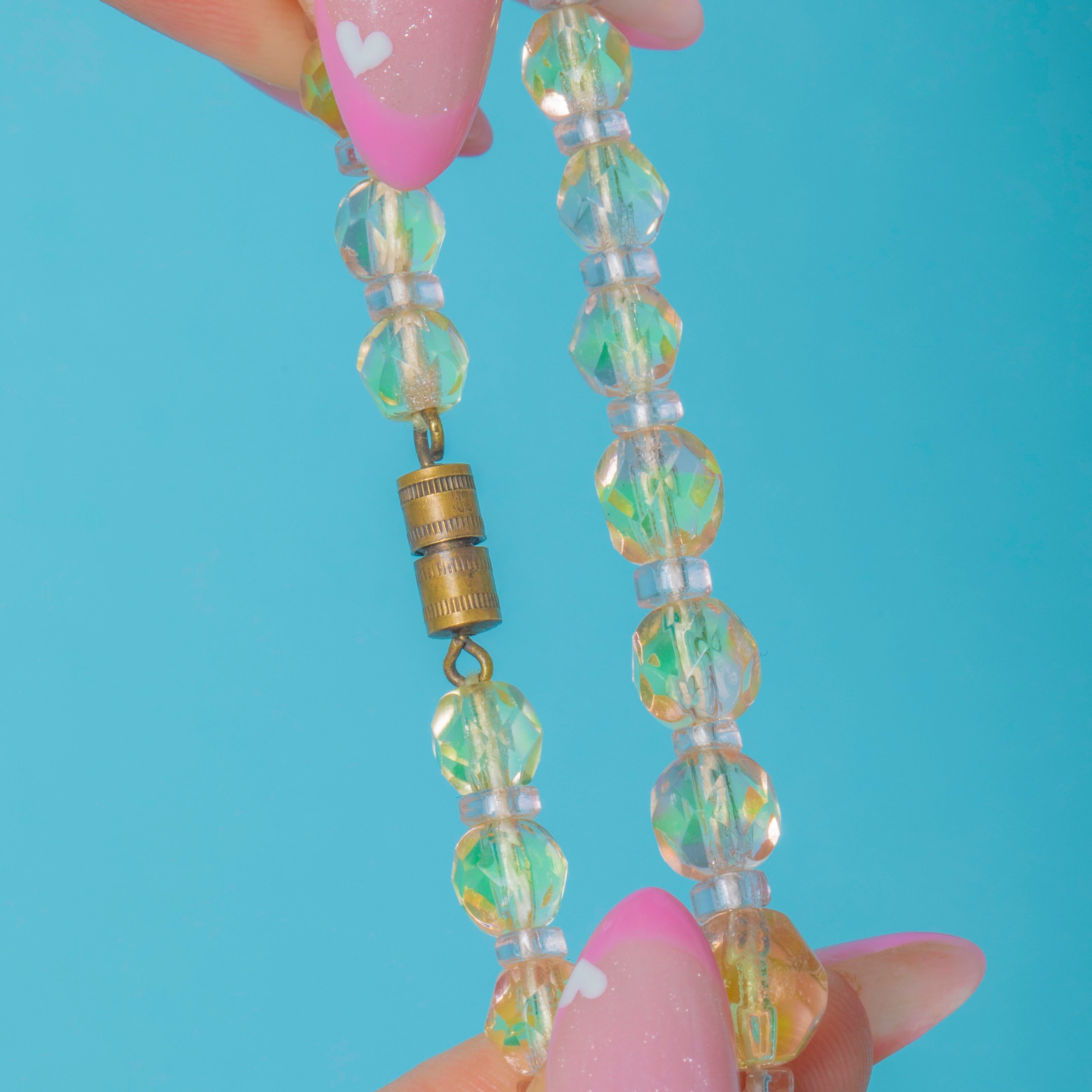 EXCELLENT: All beads are intact and retain bright fluorescence under UV light. Stringing is secure and clasp functions smoothly. Minimal age-related wear to the glass.