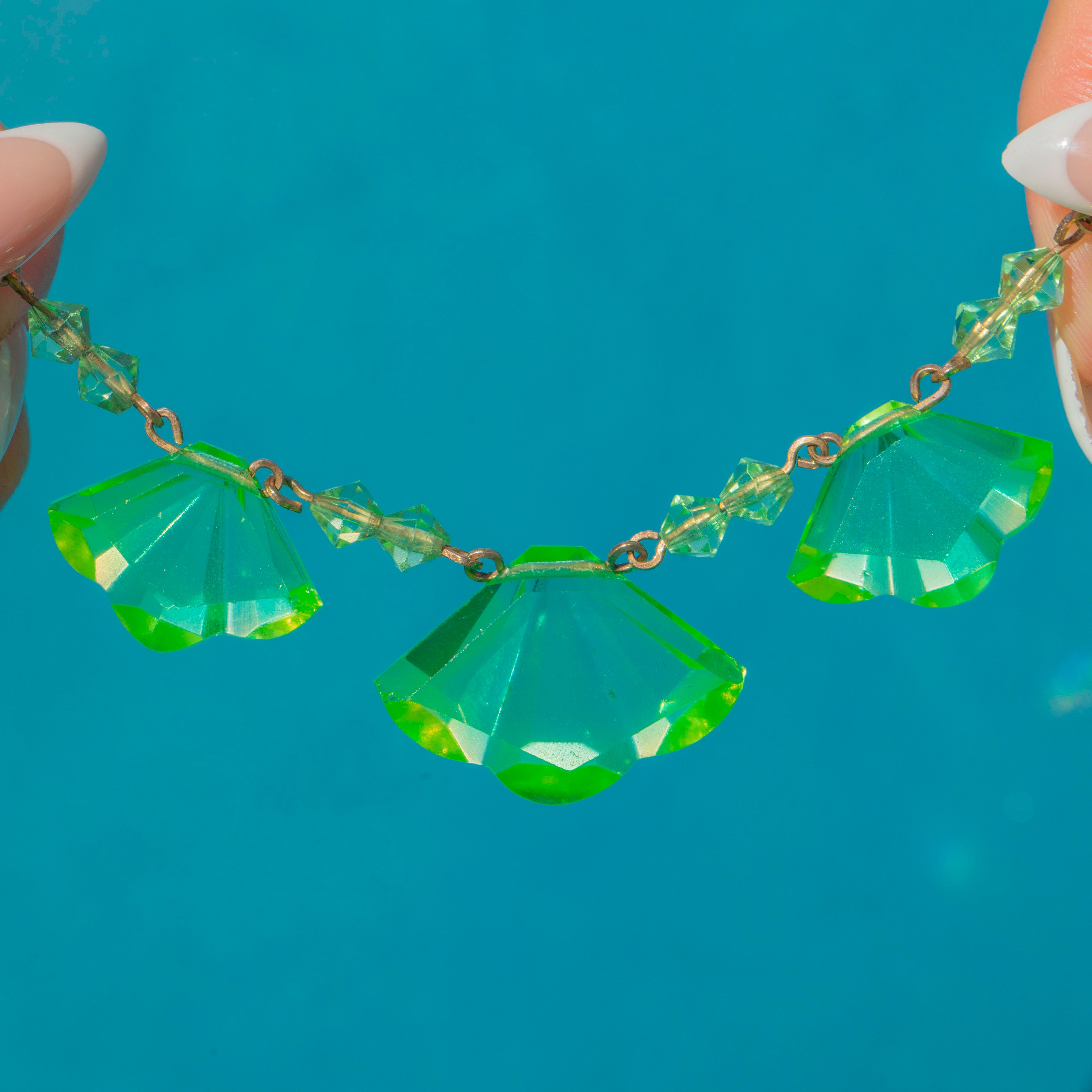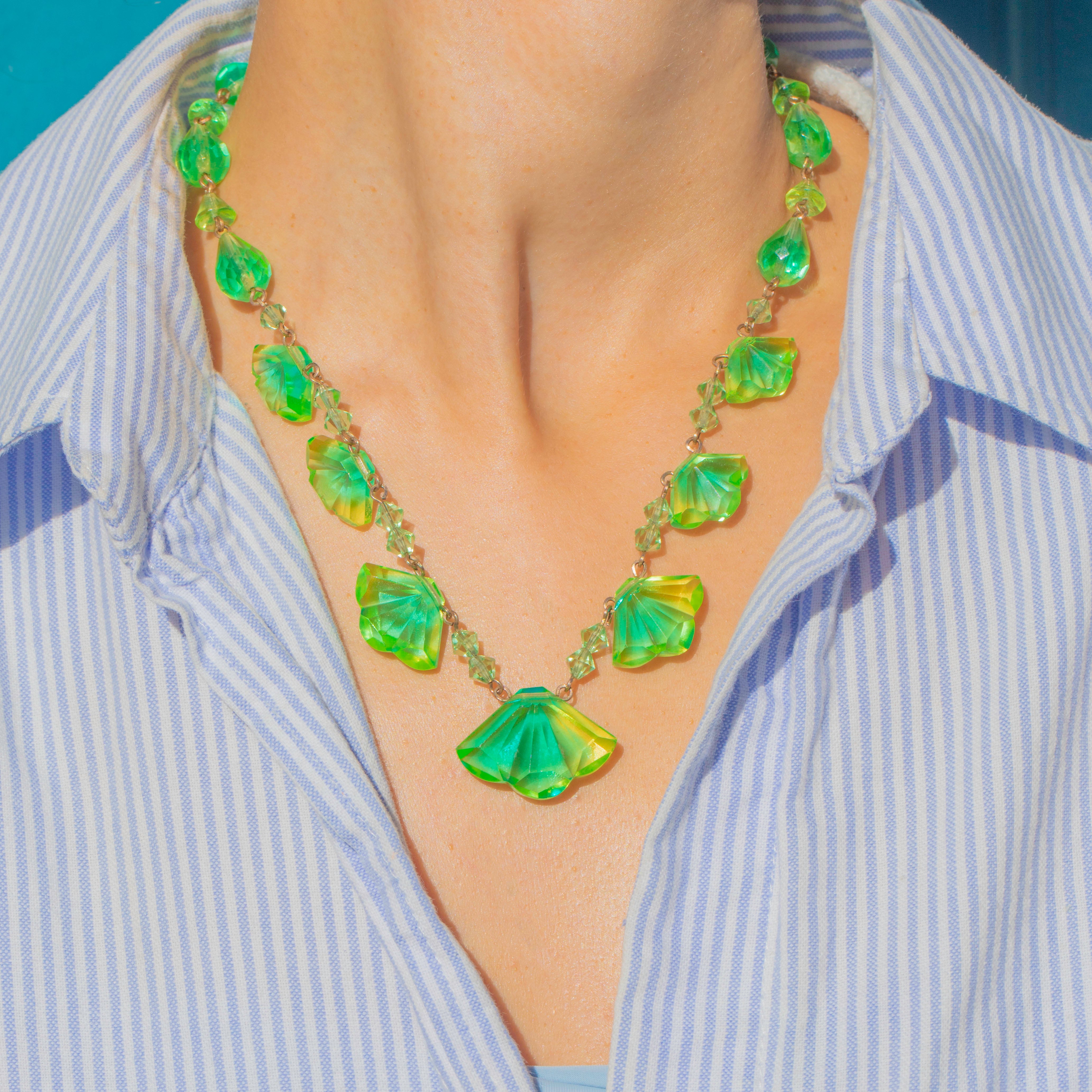 Art Deco Fan-Shaped Uranium Glass Necklace