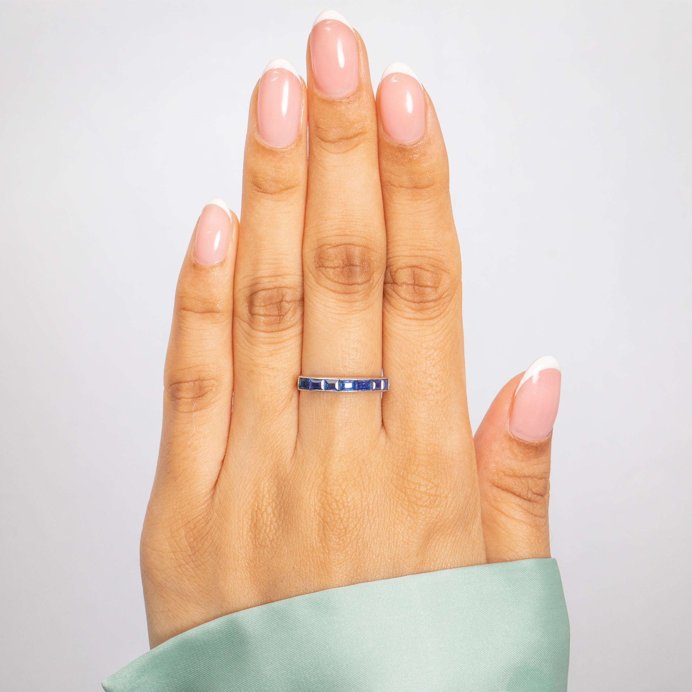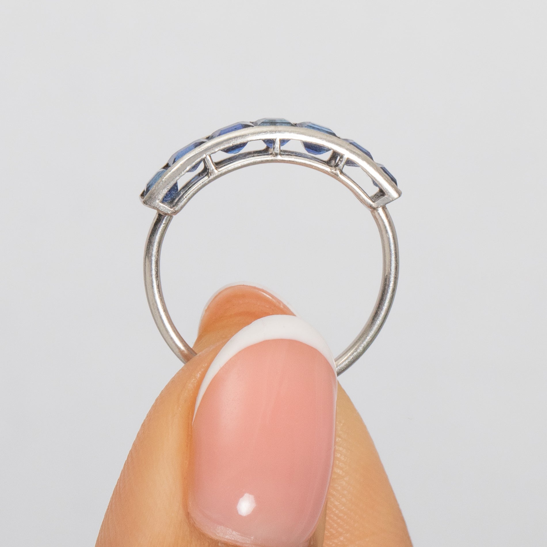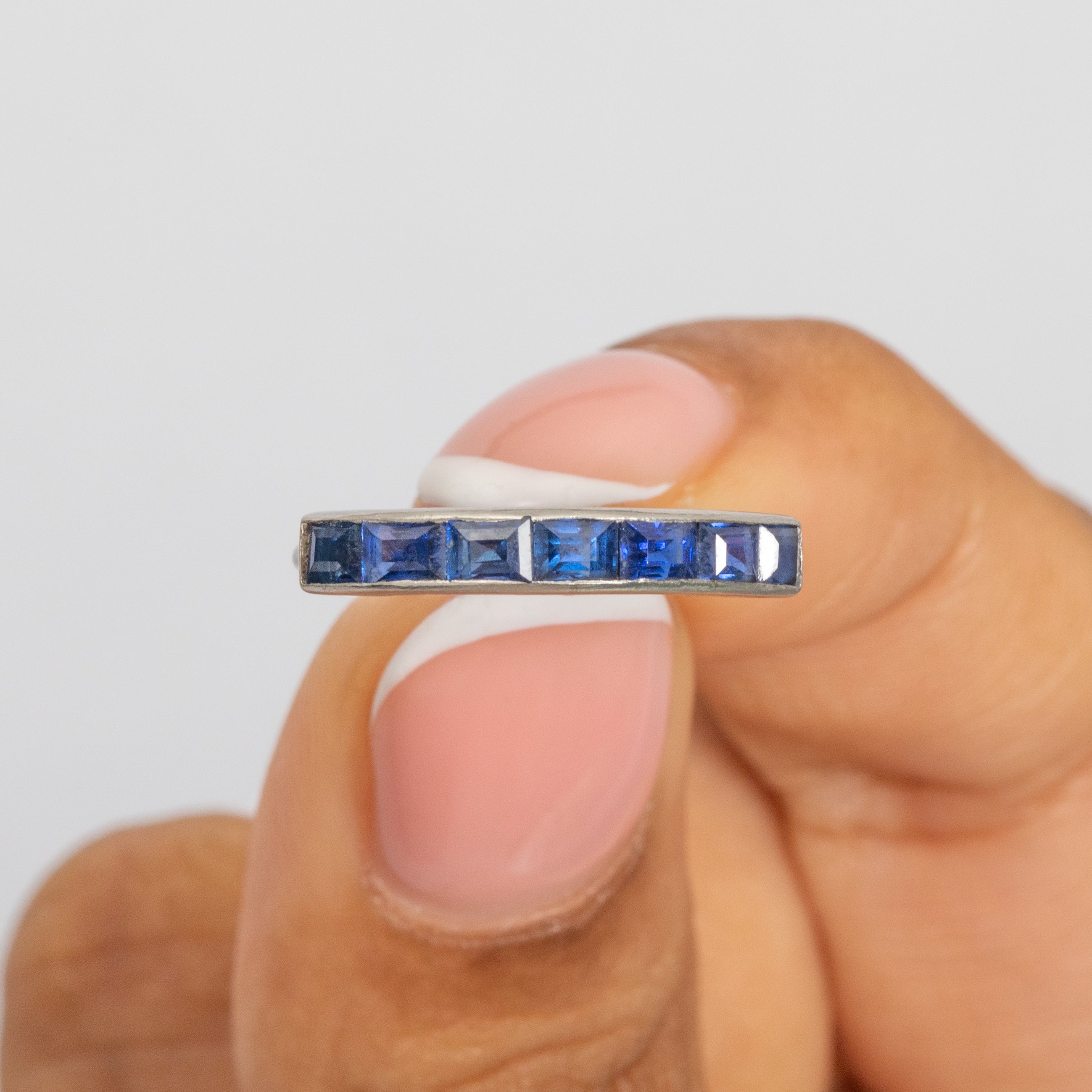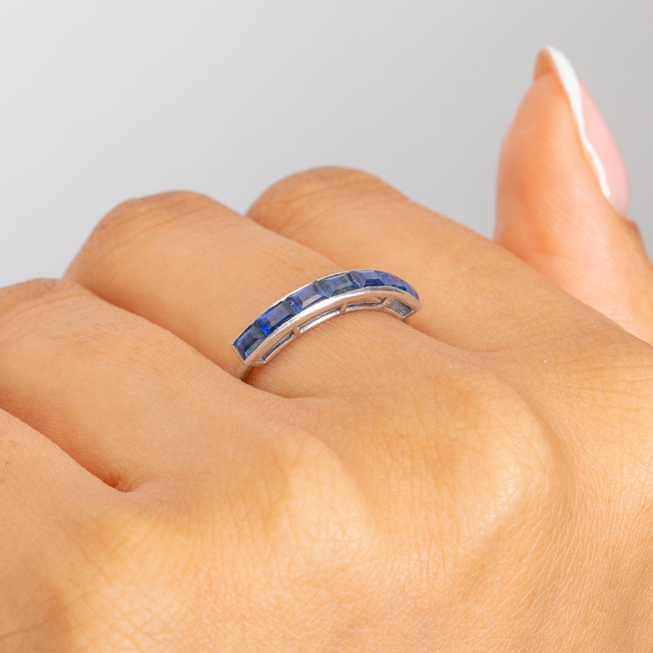 Bague demi-éternité Art déco française en or 18 carats avec saphir, 1,00 ct