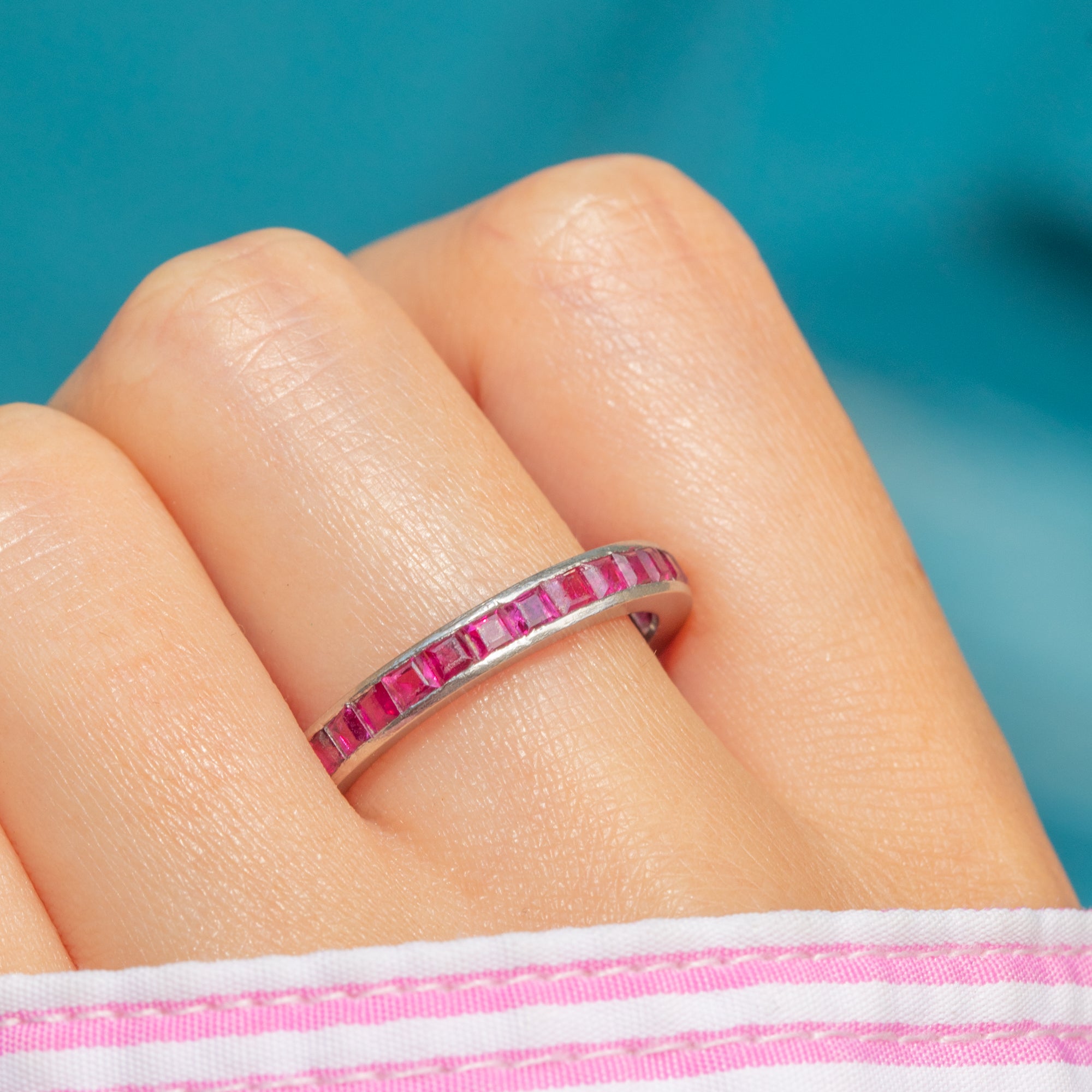 Art Deco Platinum Ruby Eternity Ring, UK P / US 7.5