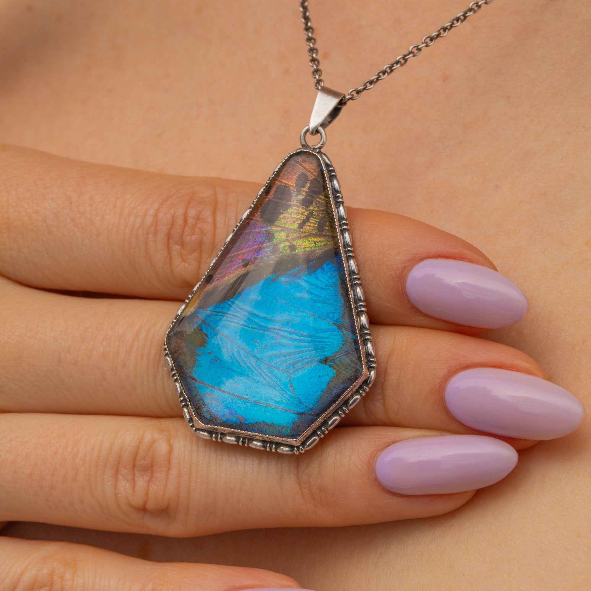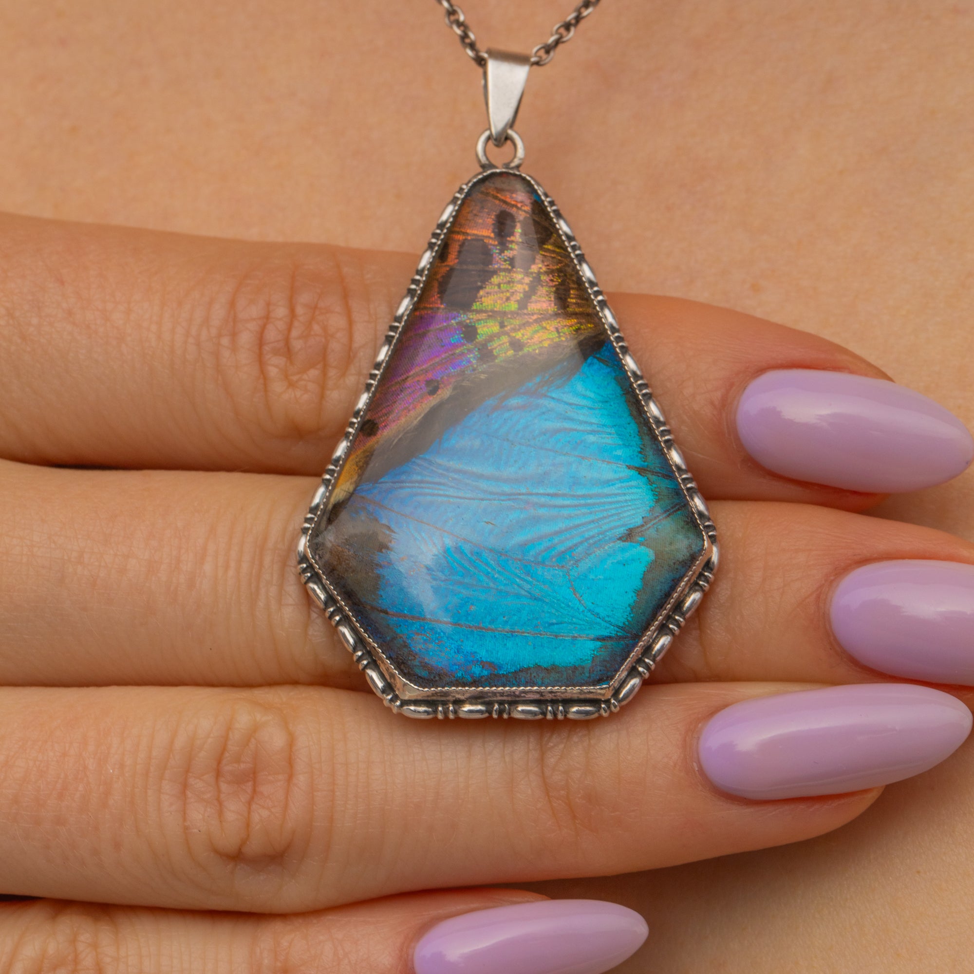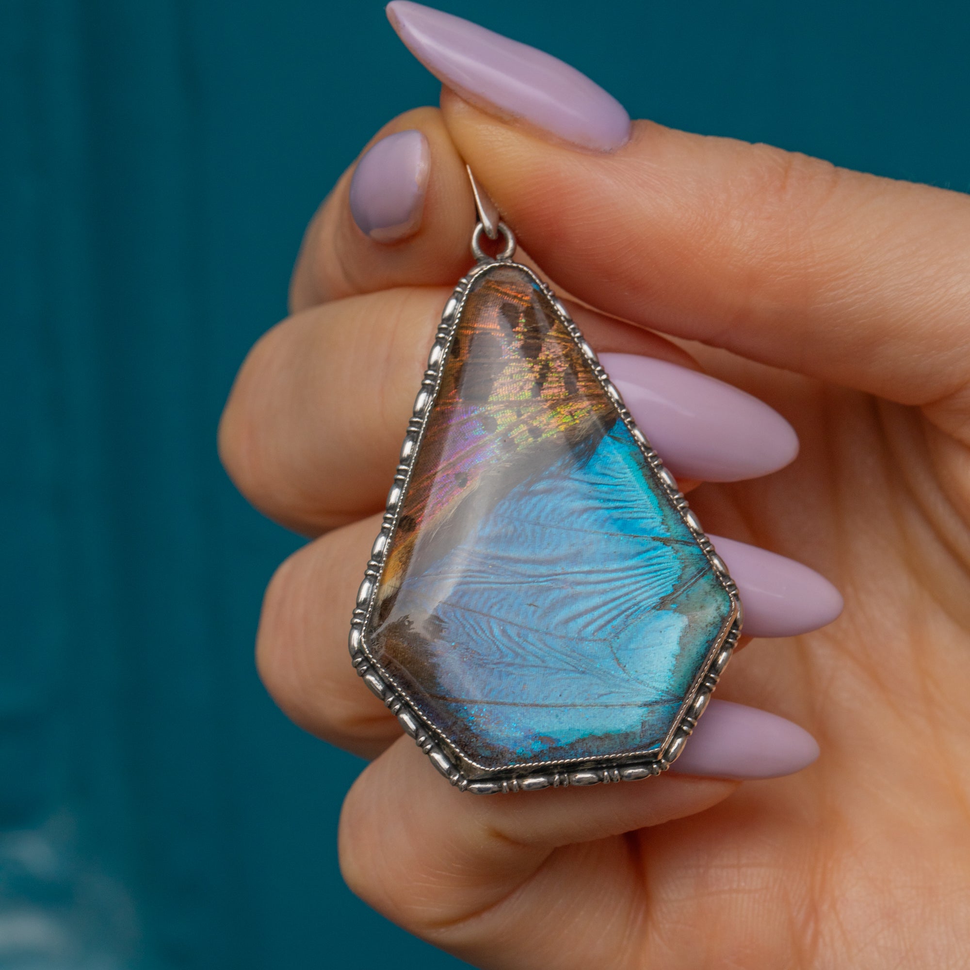 MATERIALS: Sterling Silver, Butterfly Wing.
