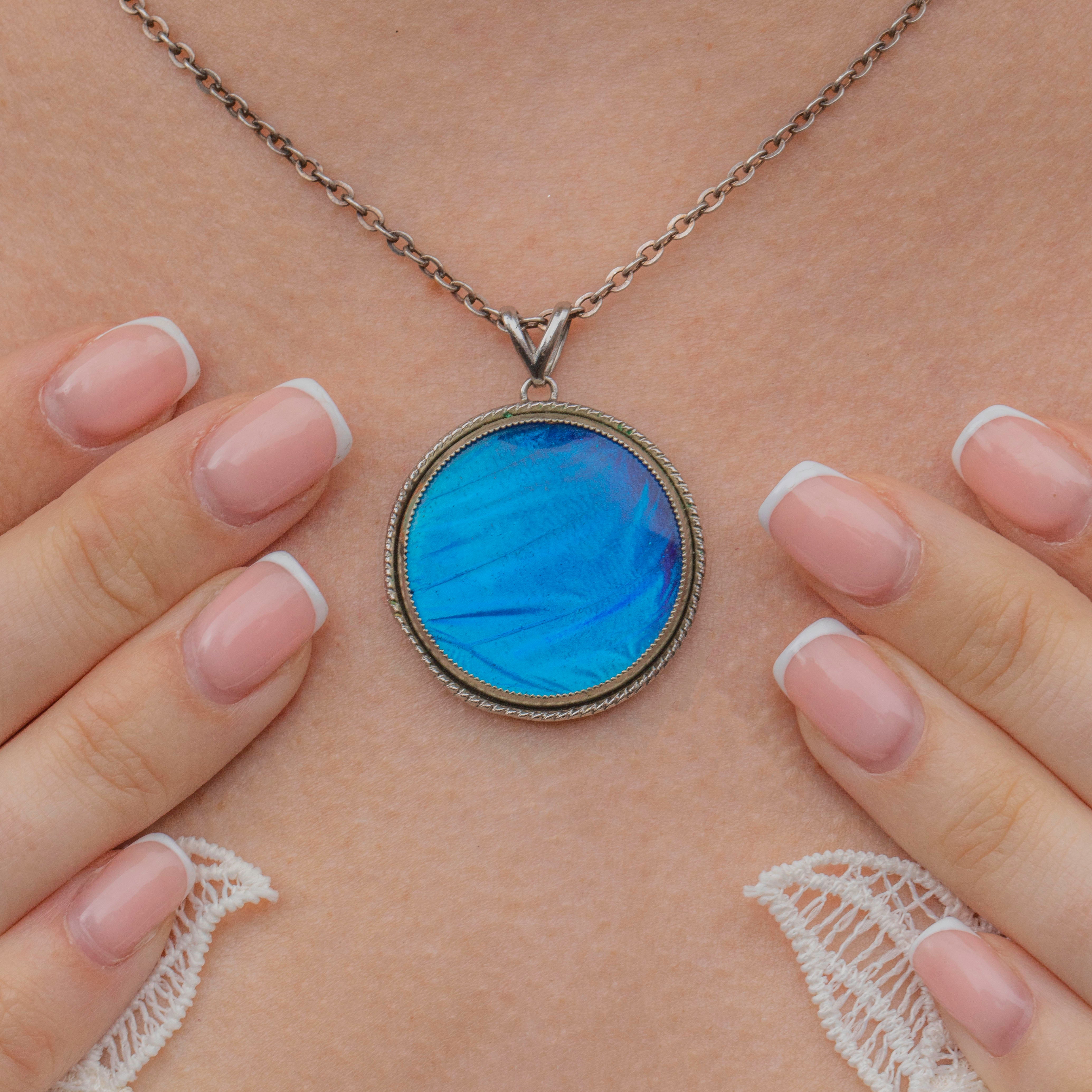 Butterfly wing jewellery was highly fashionable during the 1920s, symbolic of transformation and metamorphosis! This eye-catching pool of Cerulean blue will be the envy of all of your friends.