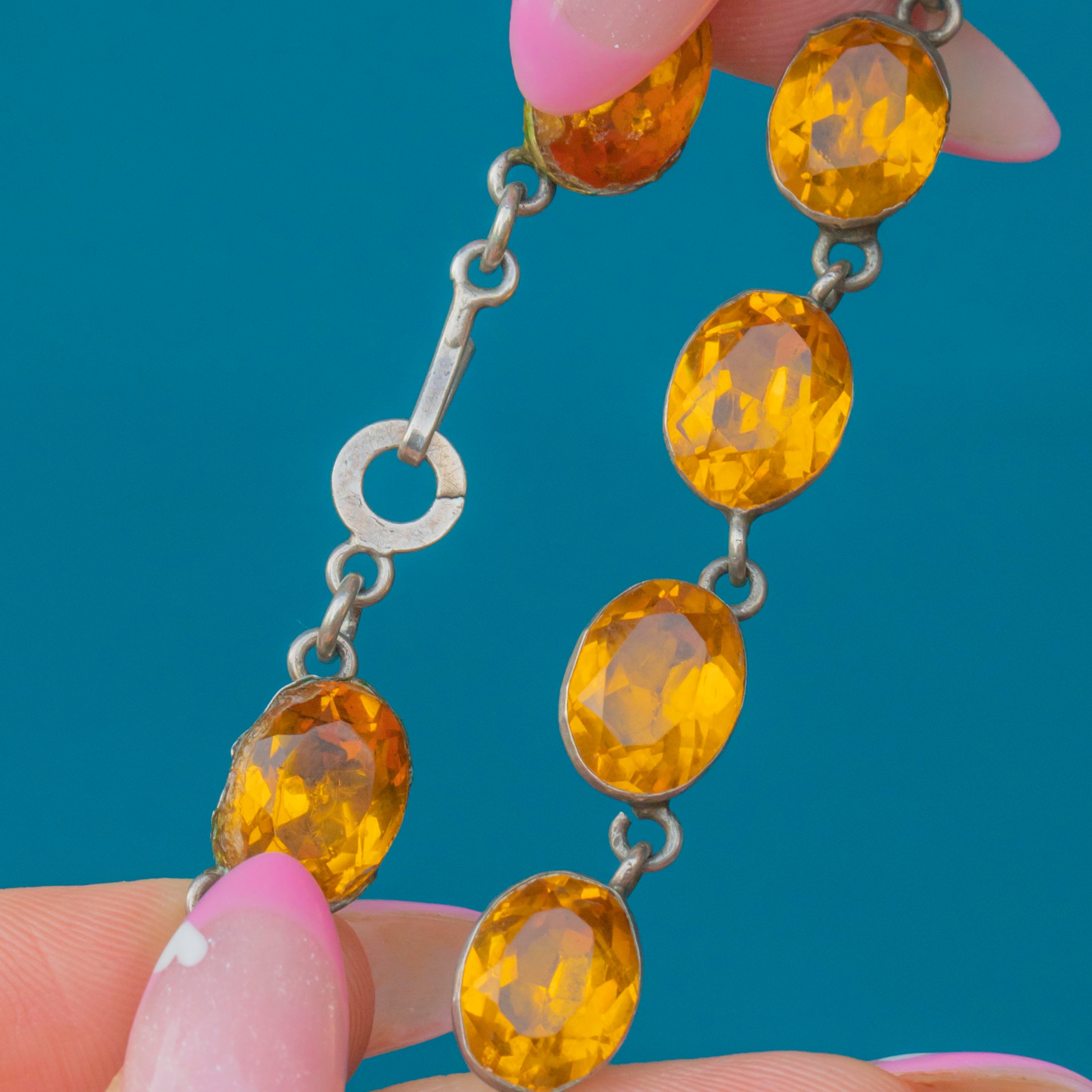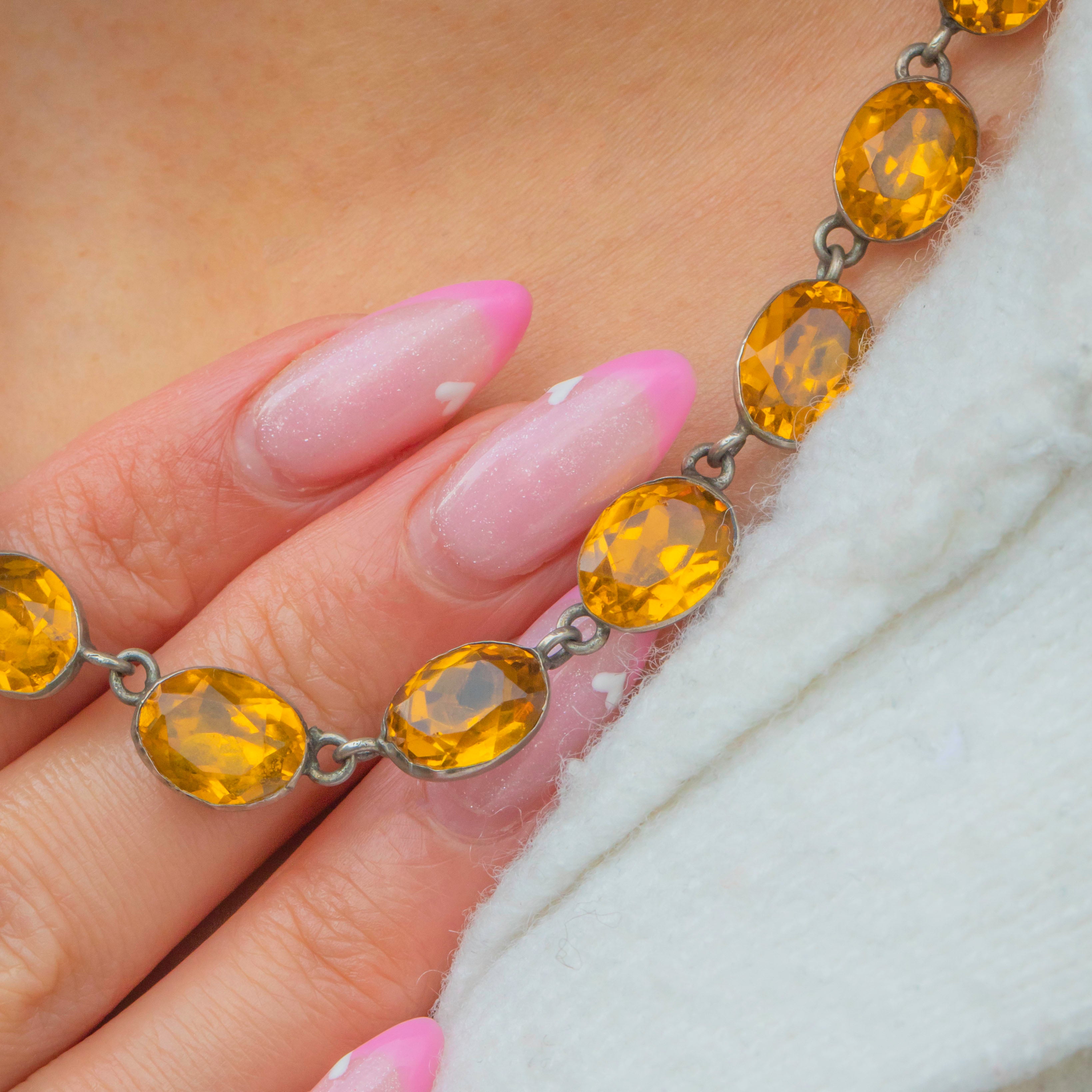 Collier Riviere Art Déco en Argent avec Pâte Jaune