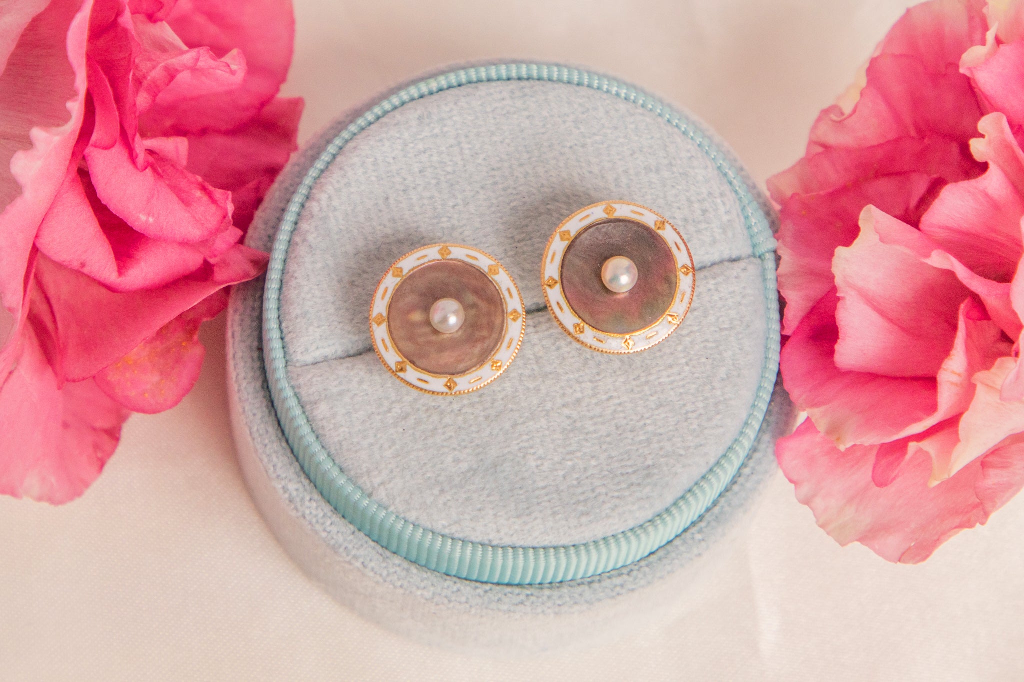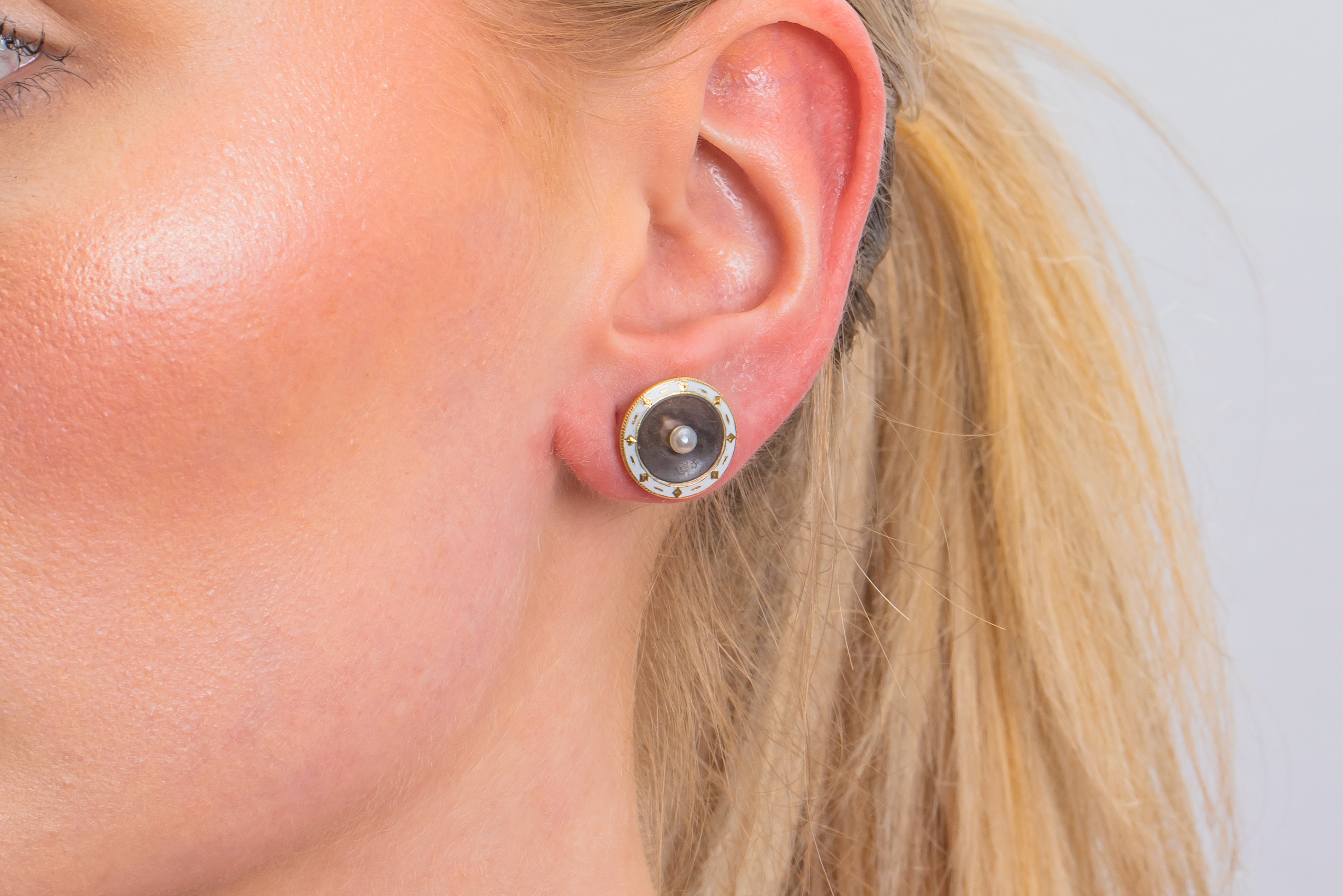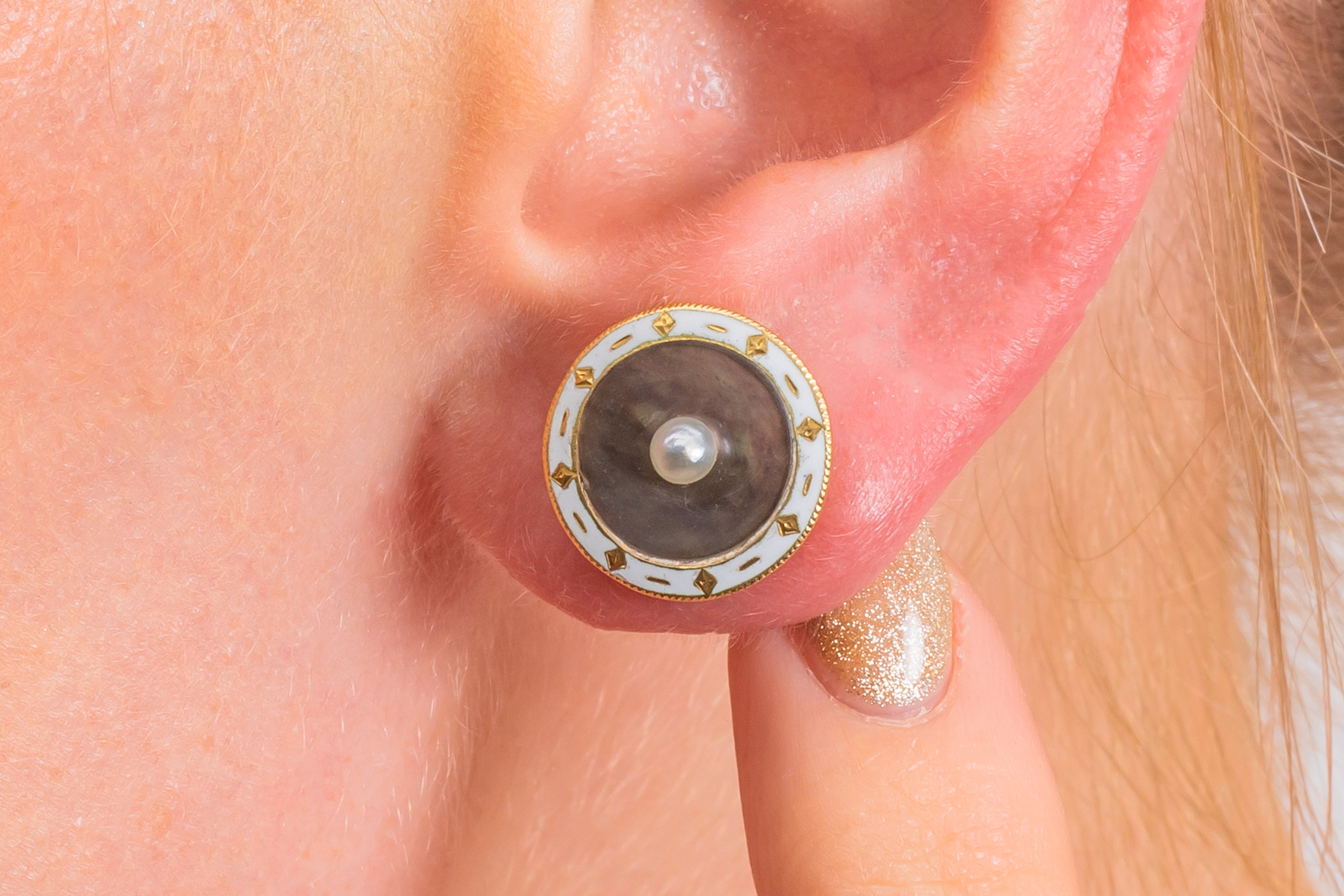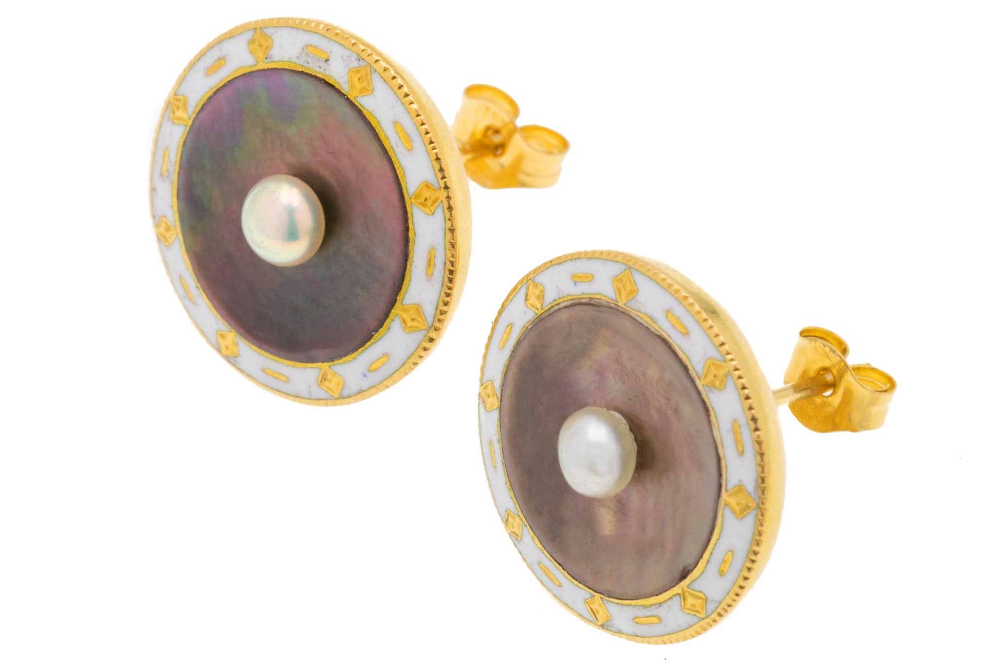Boucles d'oreilles puces Art déco émail blanc nacre
