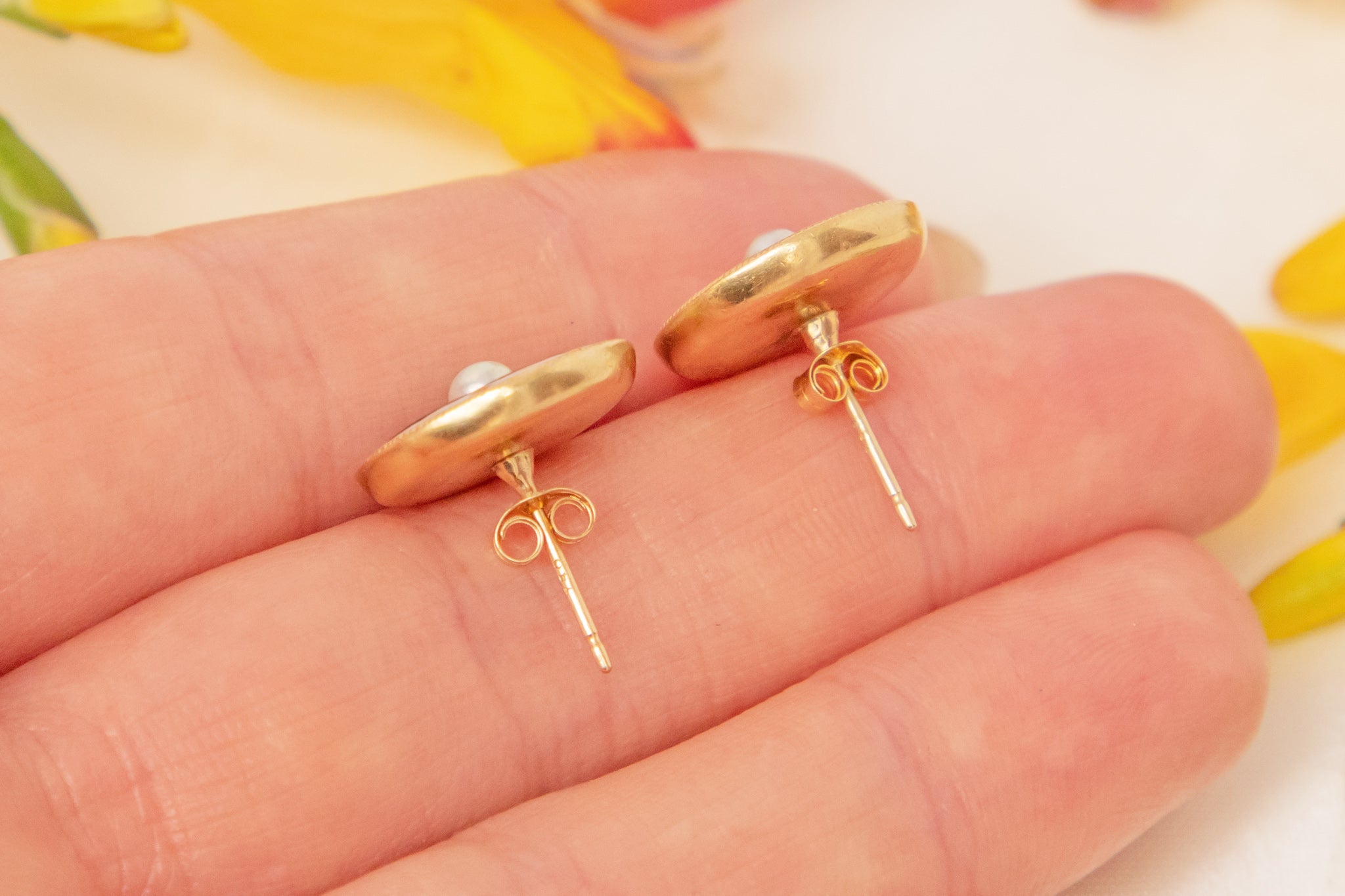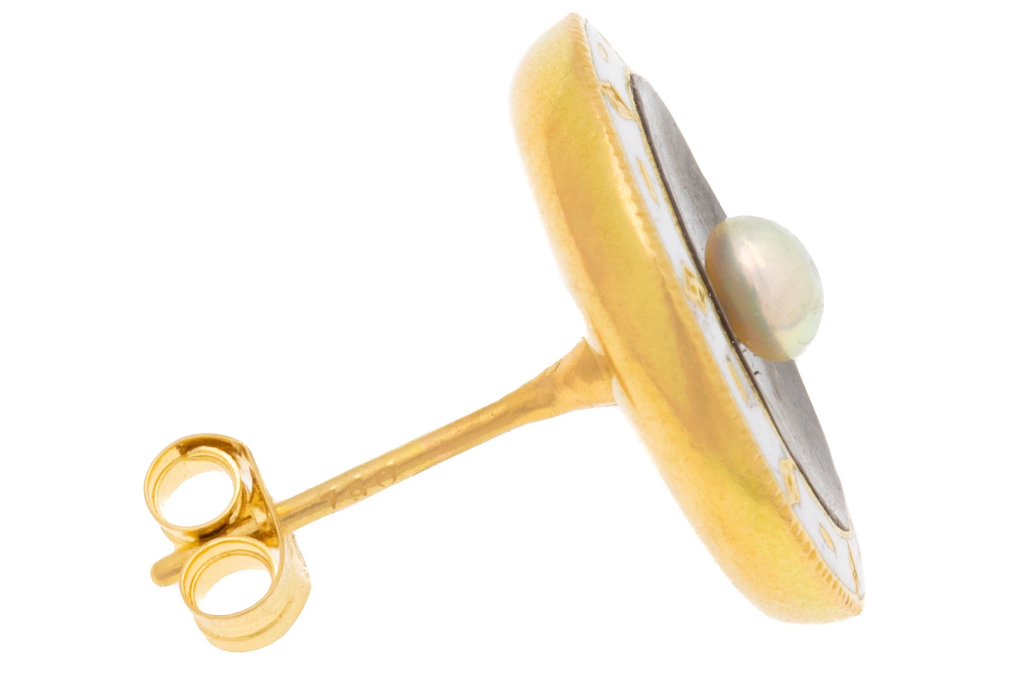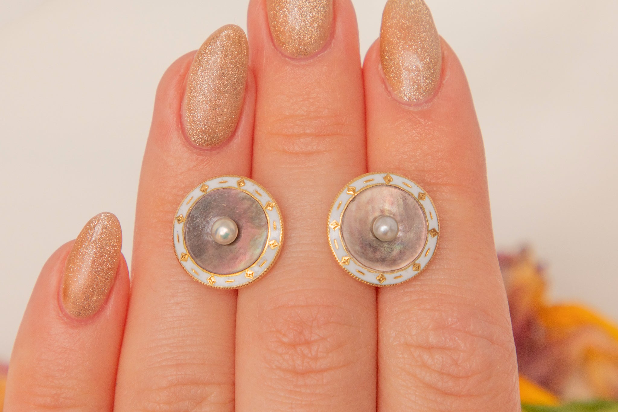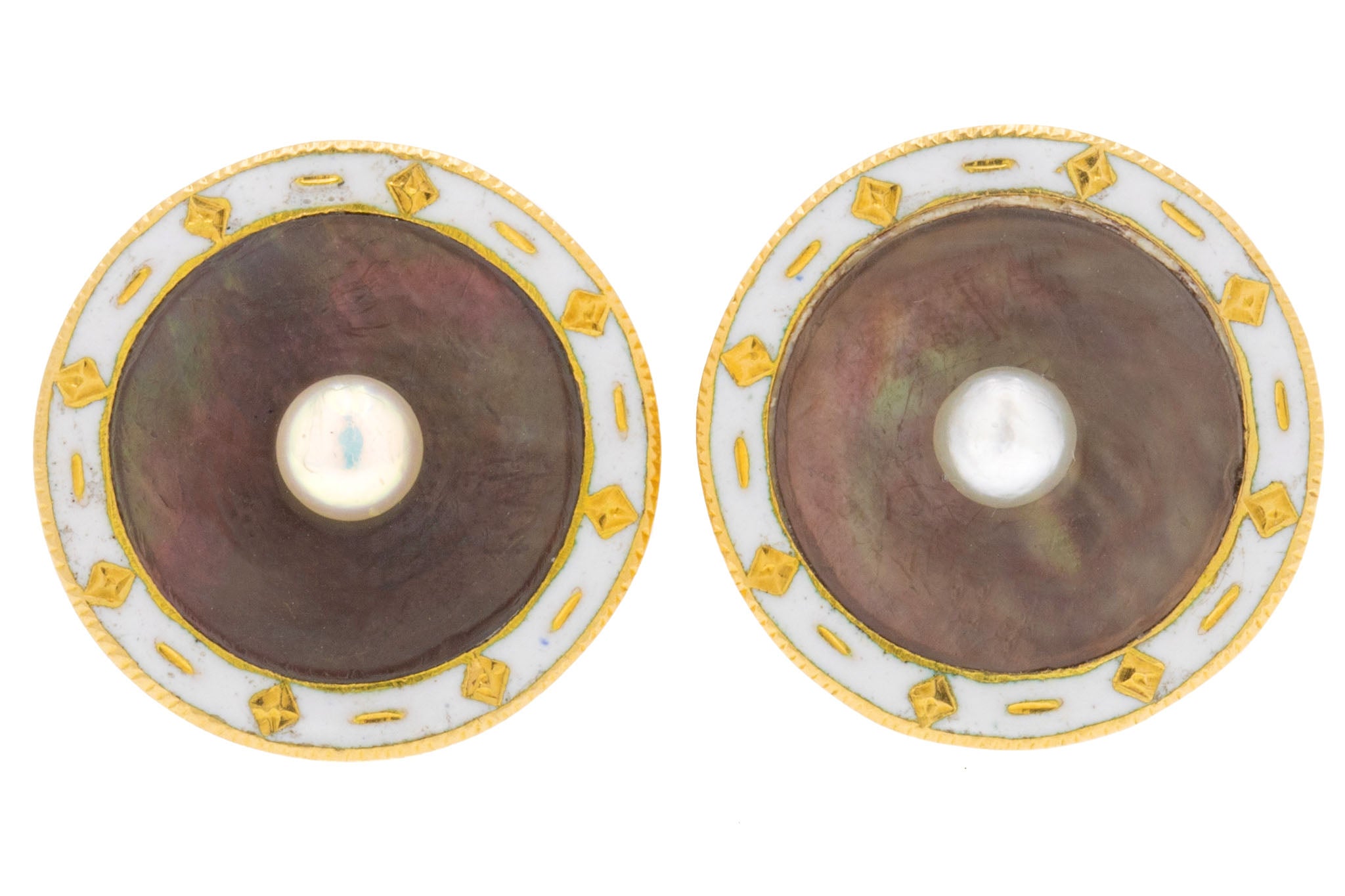 Boucles d'oreilles puces Art déco émail blanc nacre