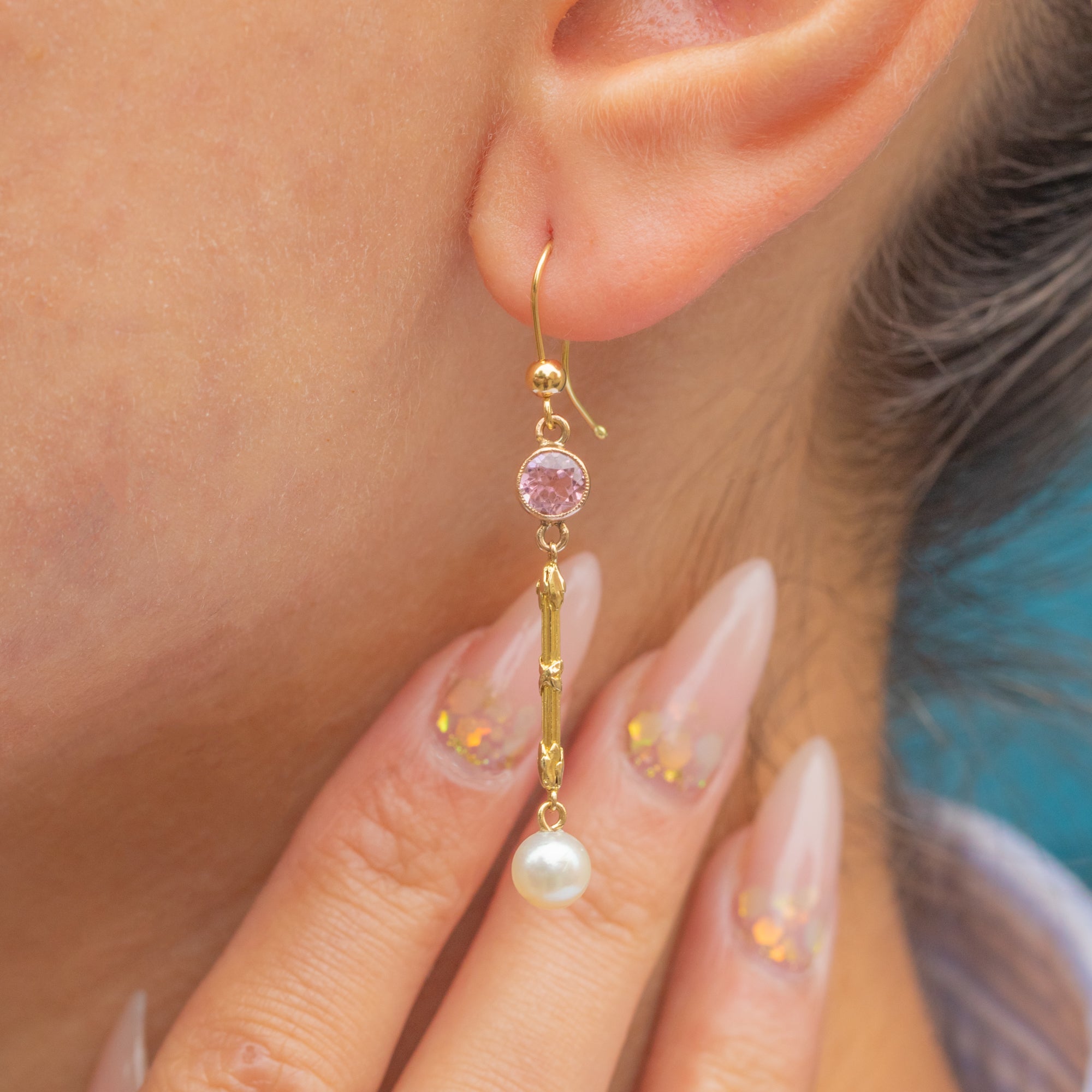 The combination of glowing Pearls and pink gemstones creates a delicate yet striking contrast, while their long drop form adds movement and sophistication. A beautiful pair of antique earrings, perfect for those who love refined and romantic jewellery.