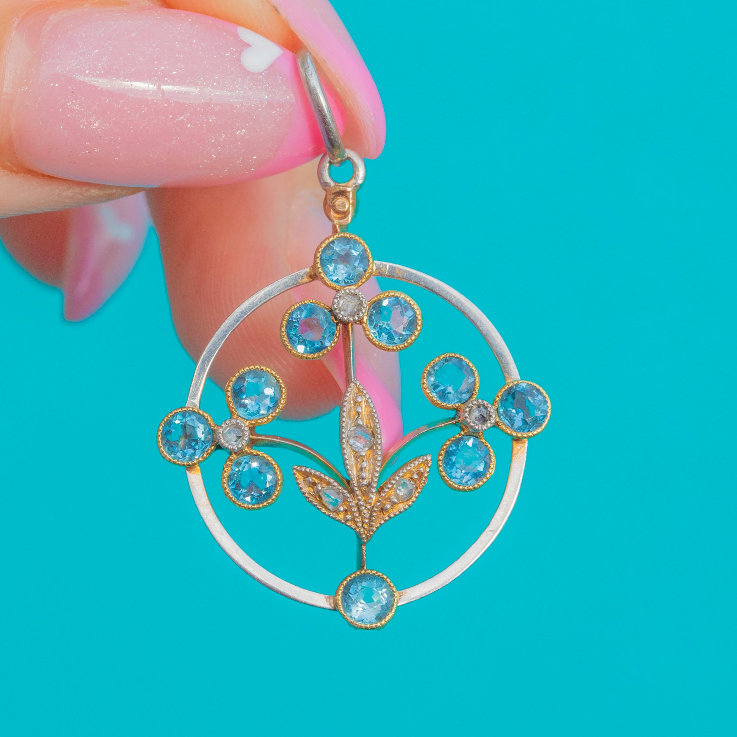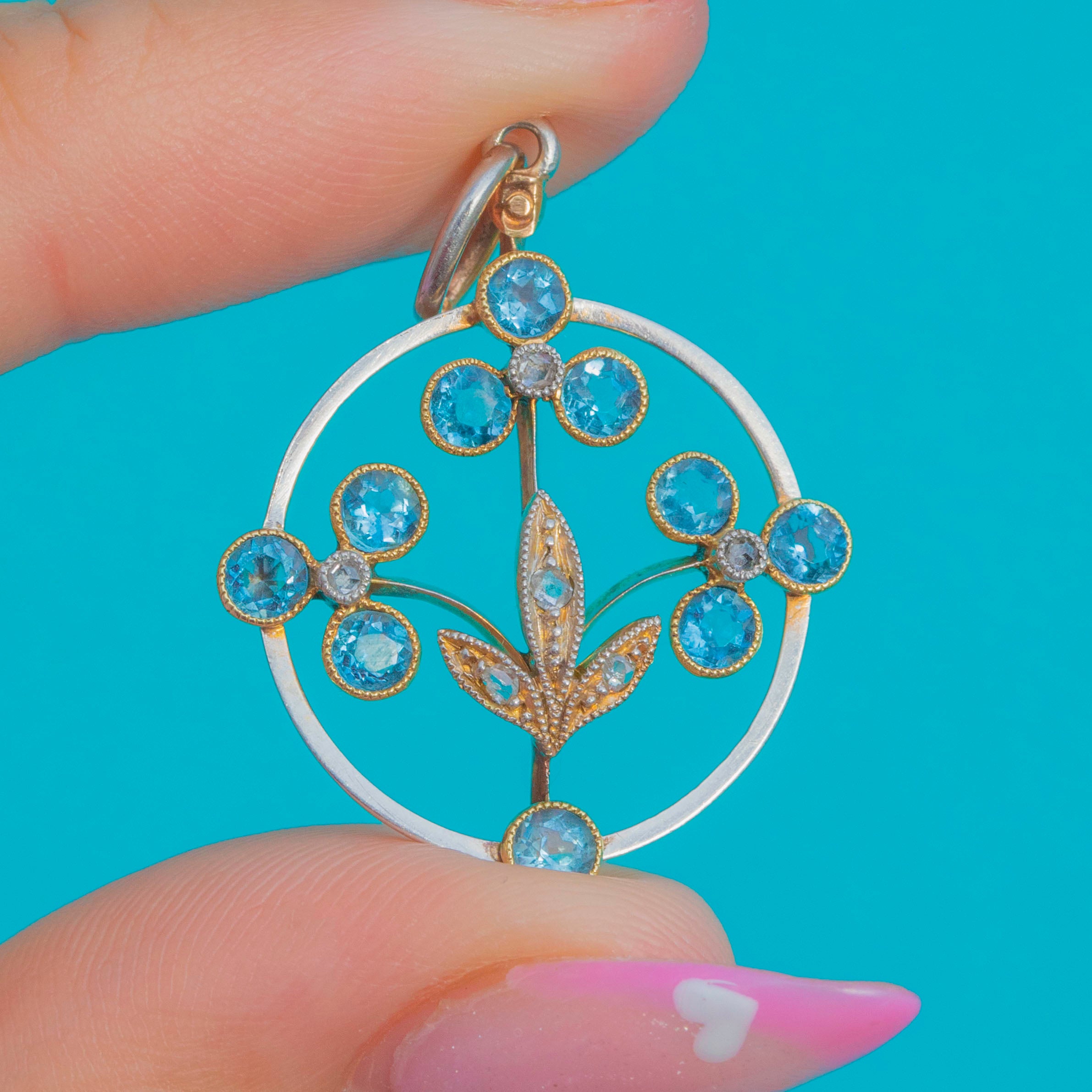 Art Nouveau 18ct Gold & Platinum Aquamarine Diamond Pendant