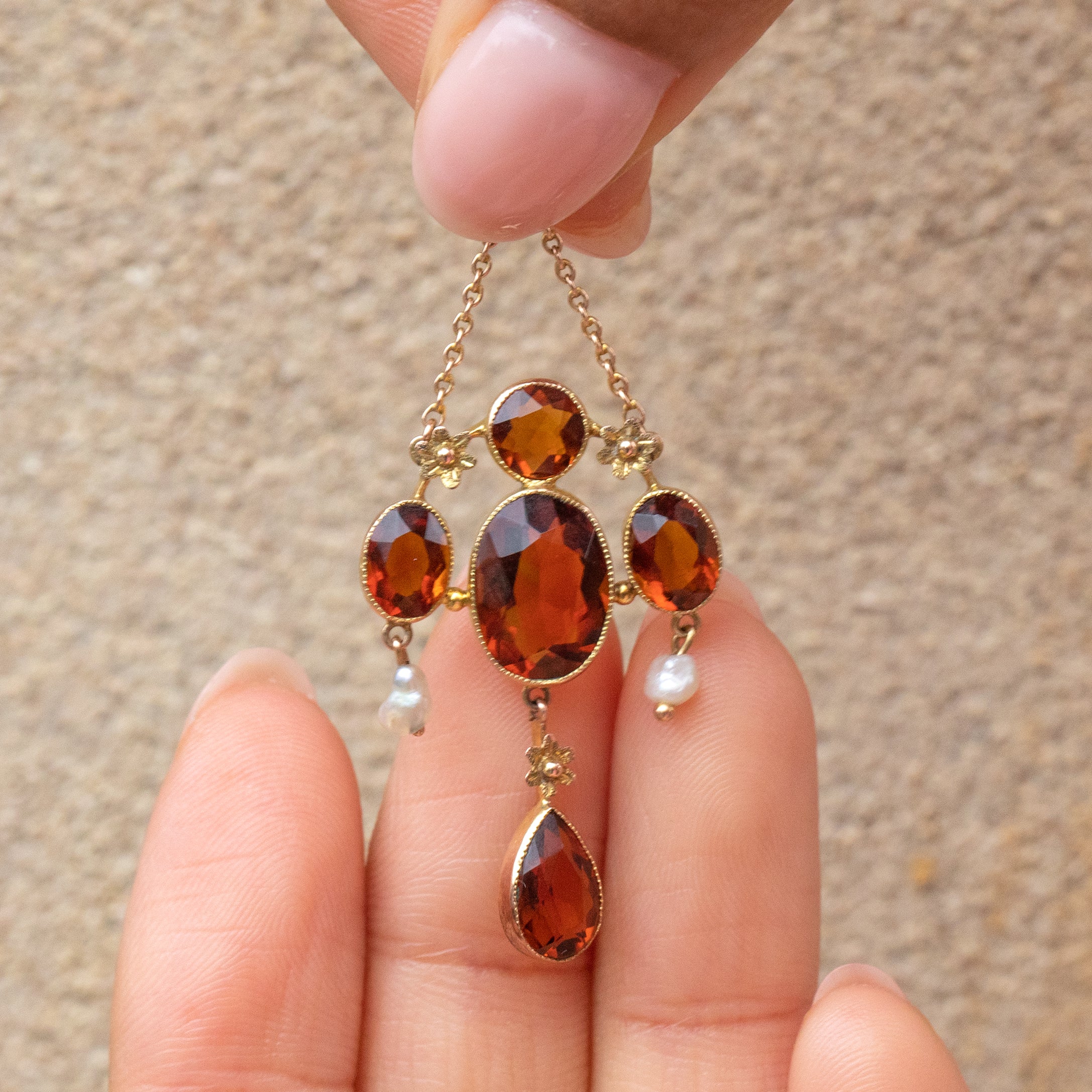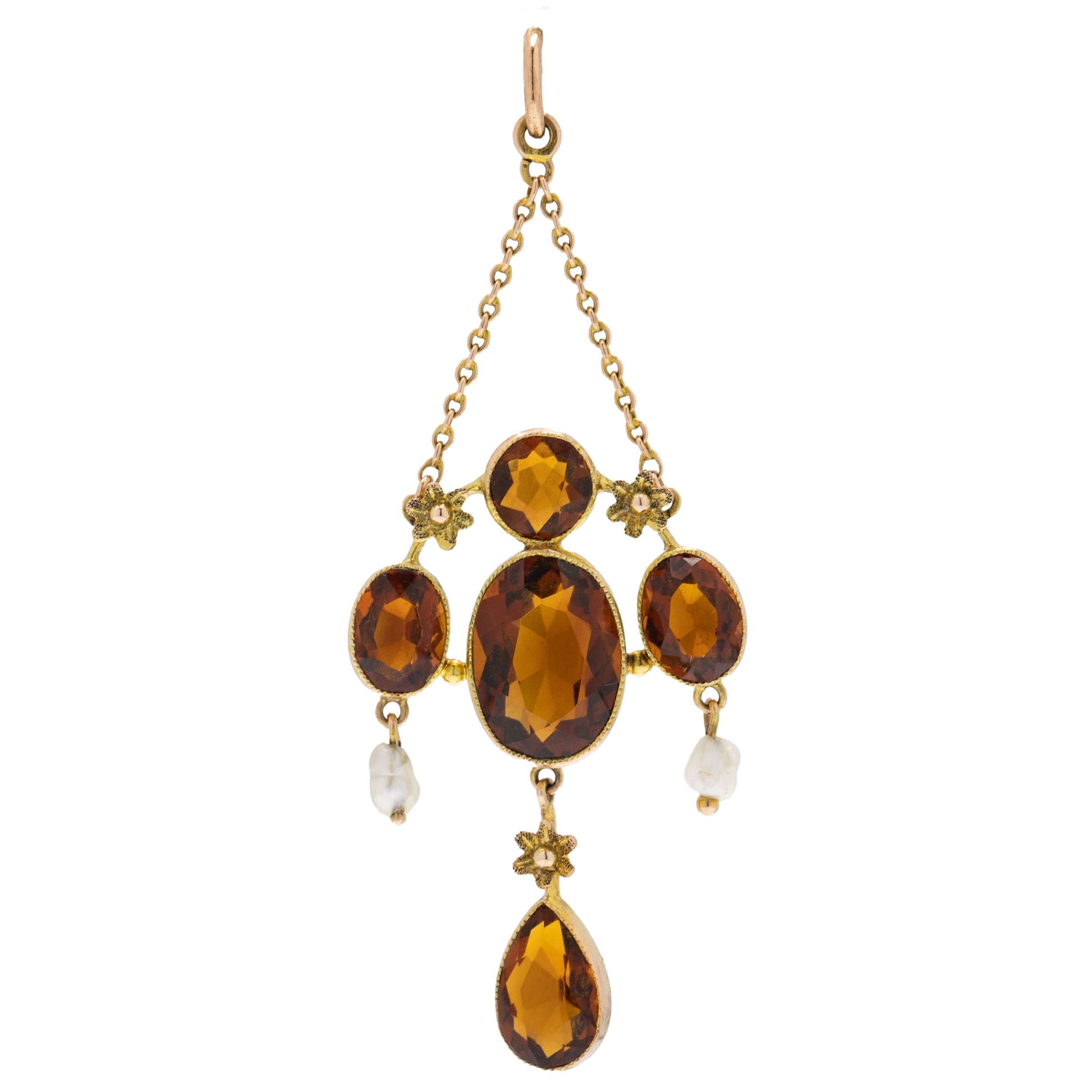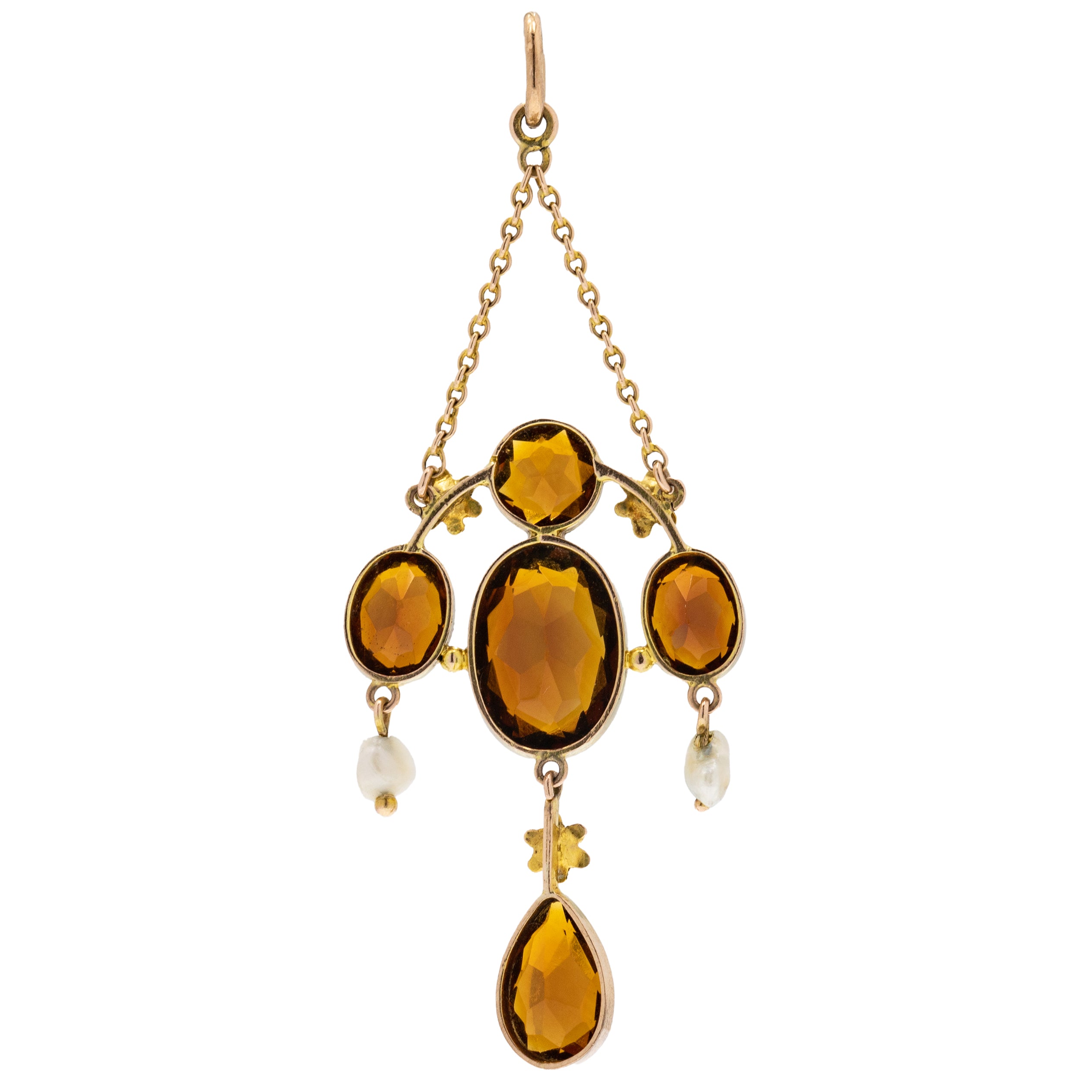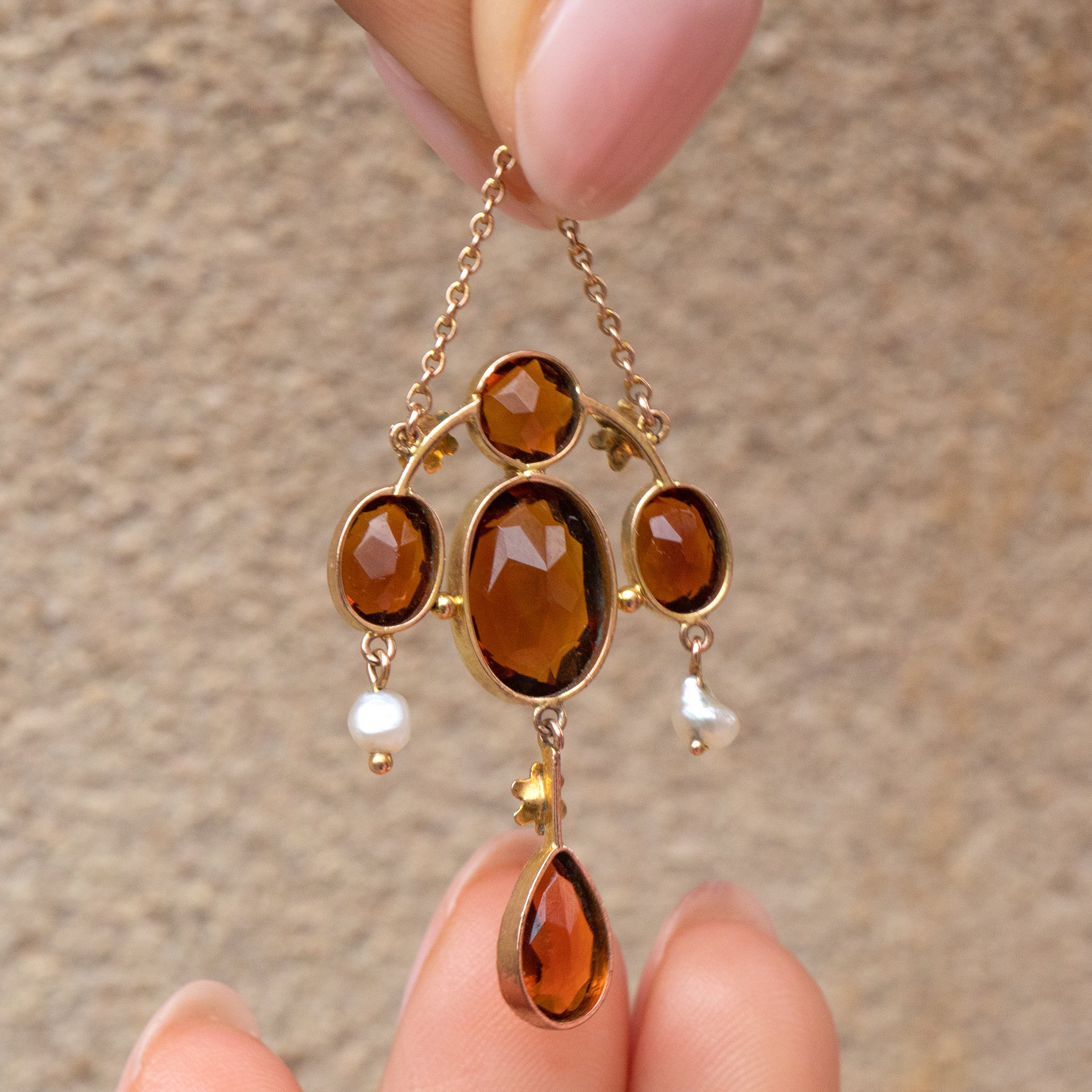 Pendentif goutte en or 9 carats Art Nouveau avec citrine Madeira, 2,57 ct