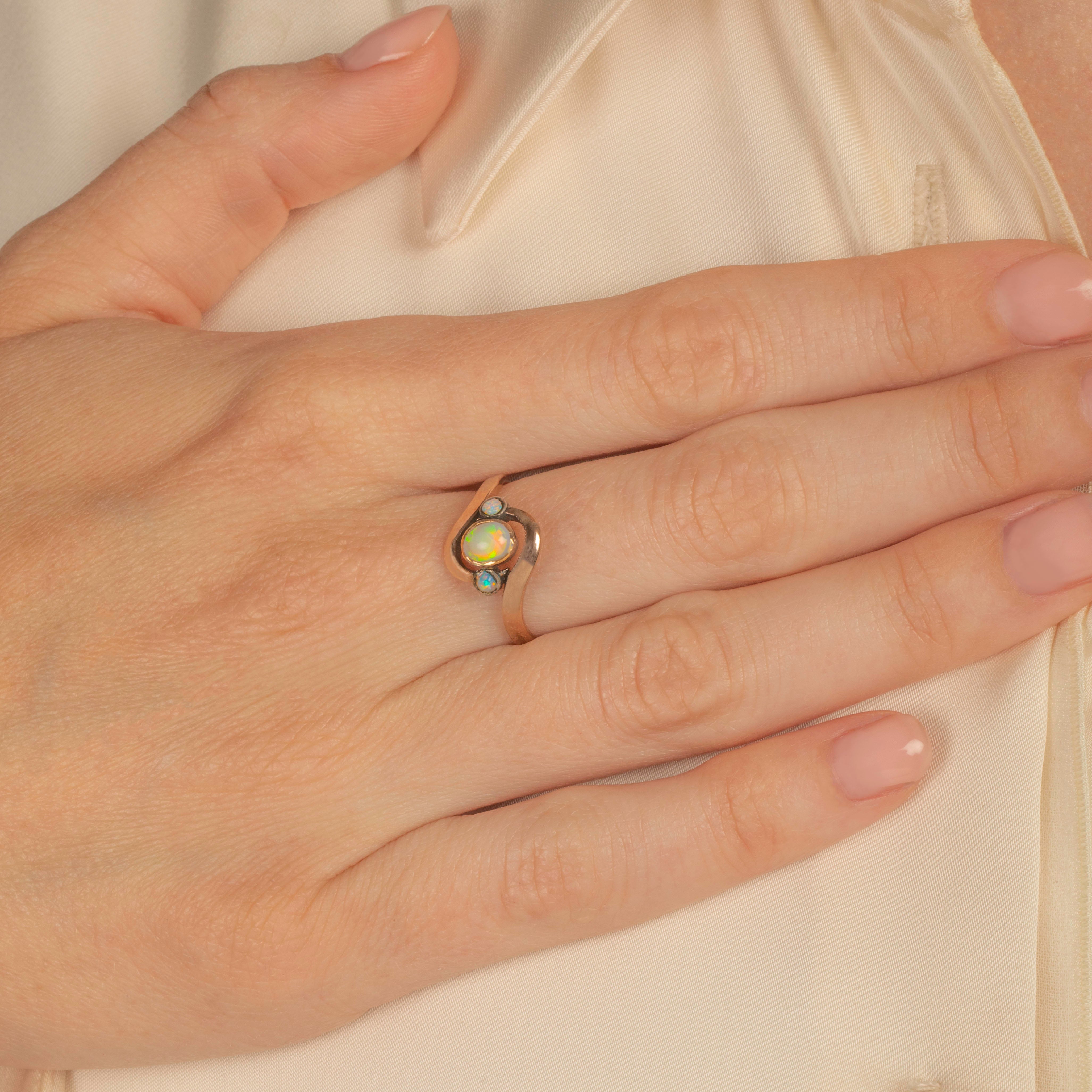 EXCELLENT. This Art Nouveau 9ct Gold Opal twist ring is in excellent condition. Her 9ct Gold is beautifully preserved and glossy, with the Opals securely set and free from wear. It is safe to say that this ring is just as beautiful today as when it was first created over a century ago!