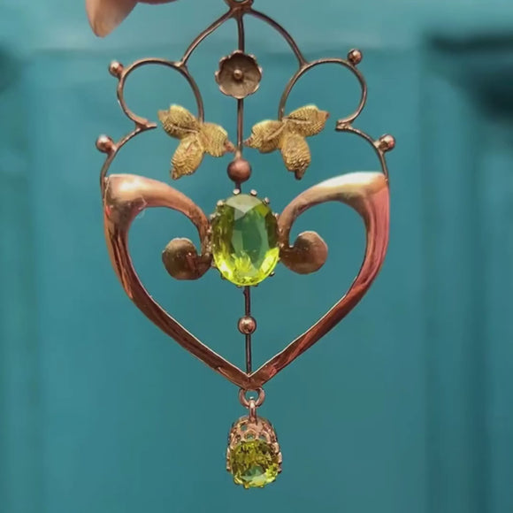 Art Nouveau 9ct Gold Peridot Lavalier Charm