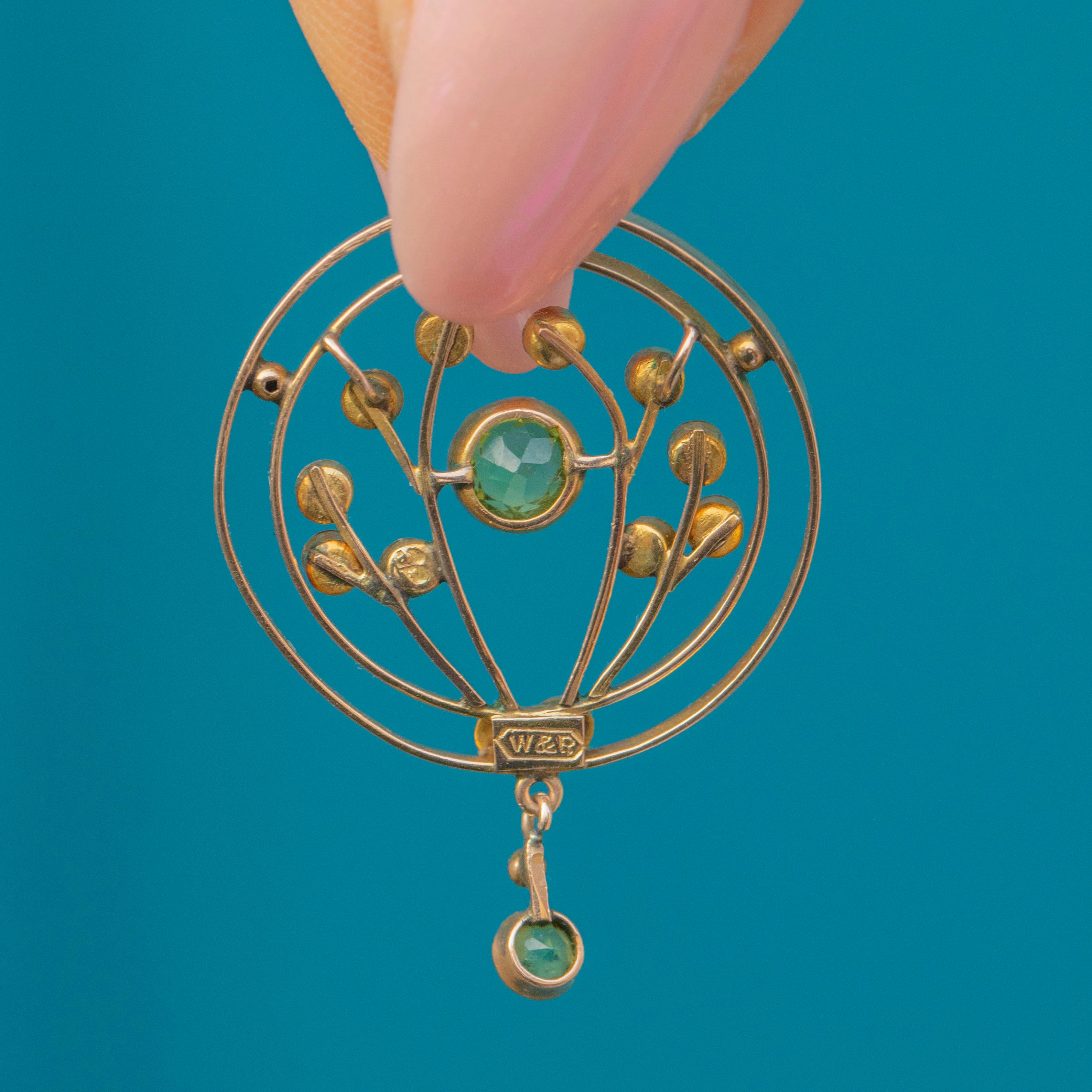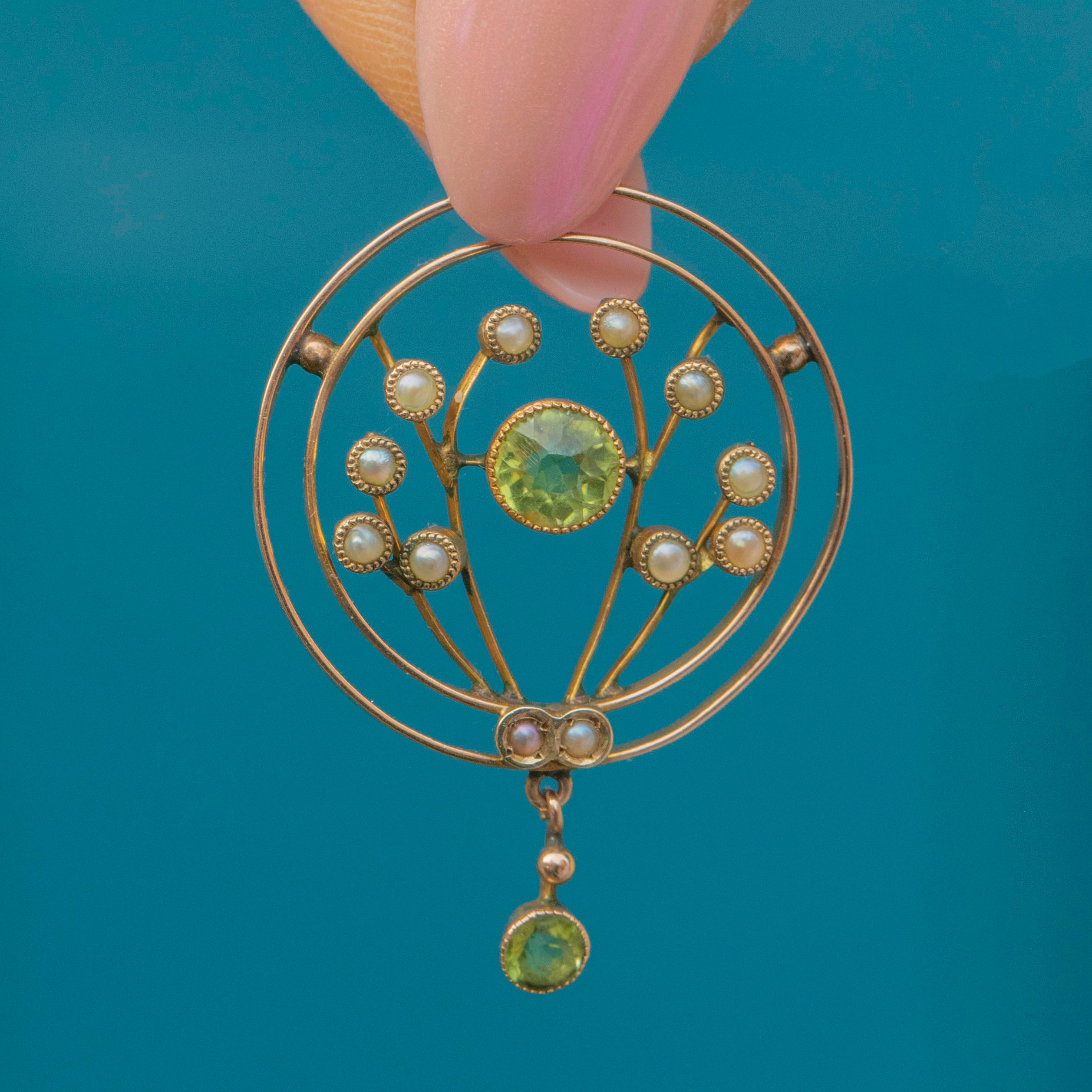 Art Nouveau 9ct Gold Peridot Pearl Pendant