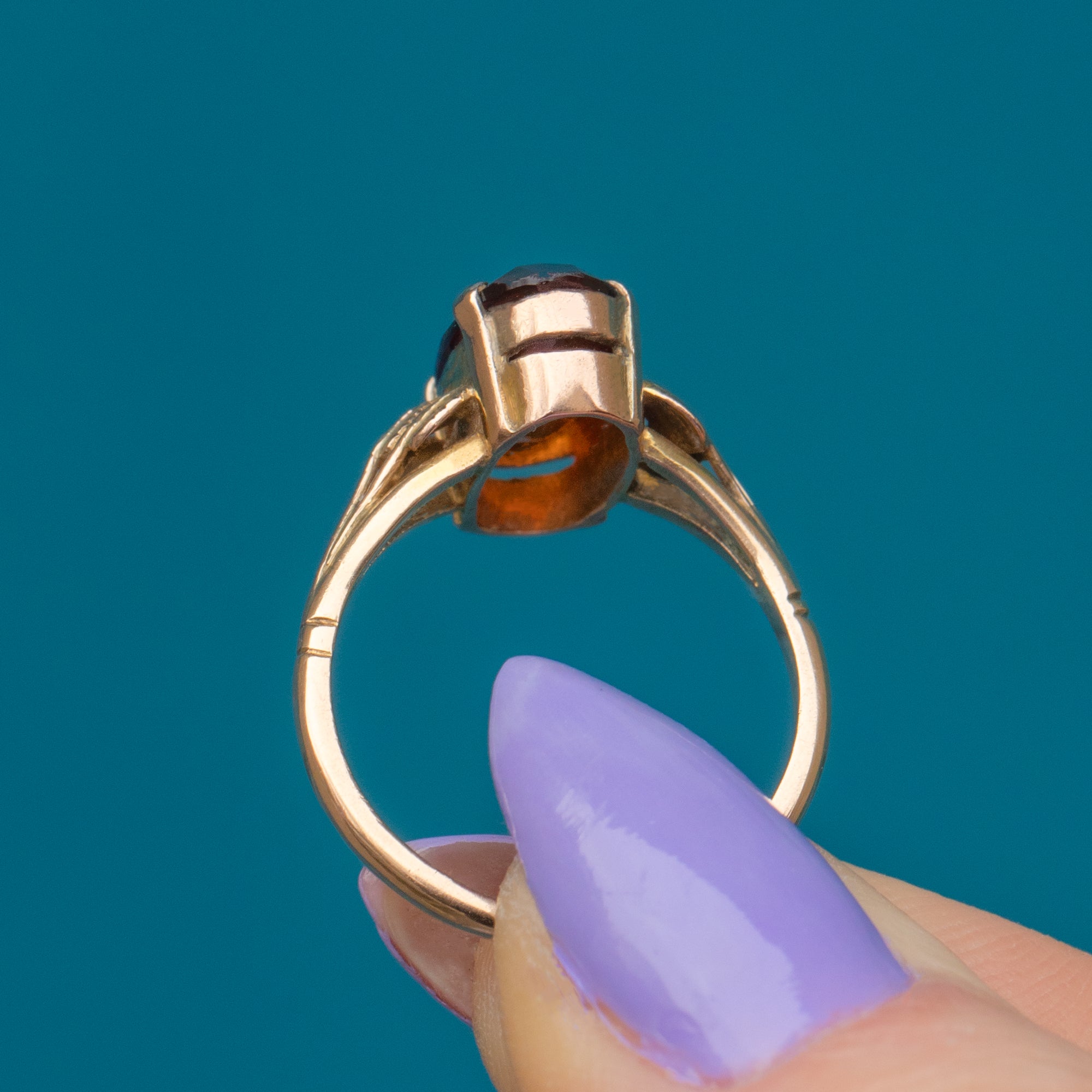 If you have a penchant for unique pieces of antique jewellery, this Arts & Crafts 9ct Gold Madeira Citrine ring is a must for your collection! The 1.66ct Madeira Citrine boasts a deep mahogany hue, flashing with hints of orange and crimson as it's crisp facets catch the light.