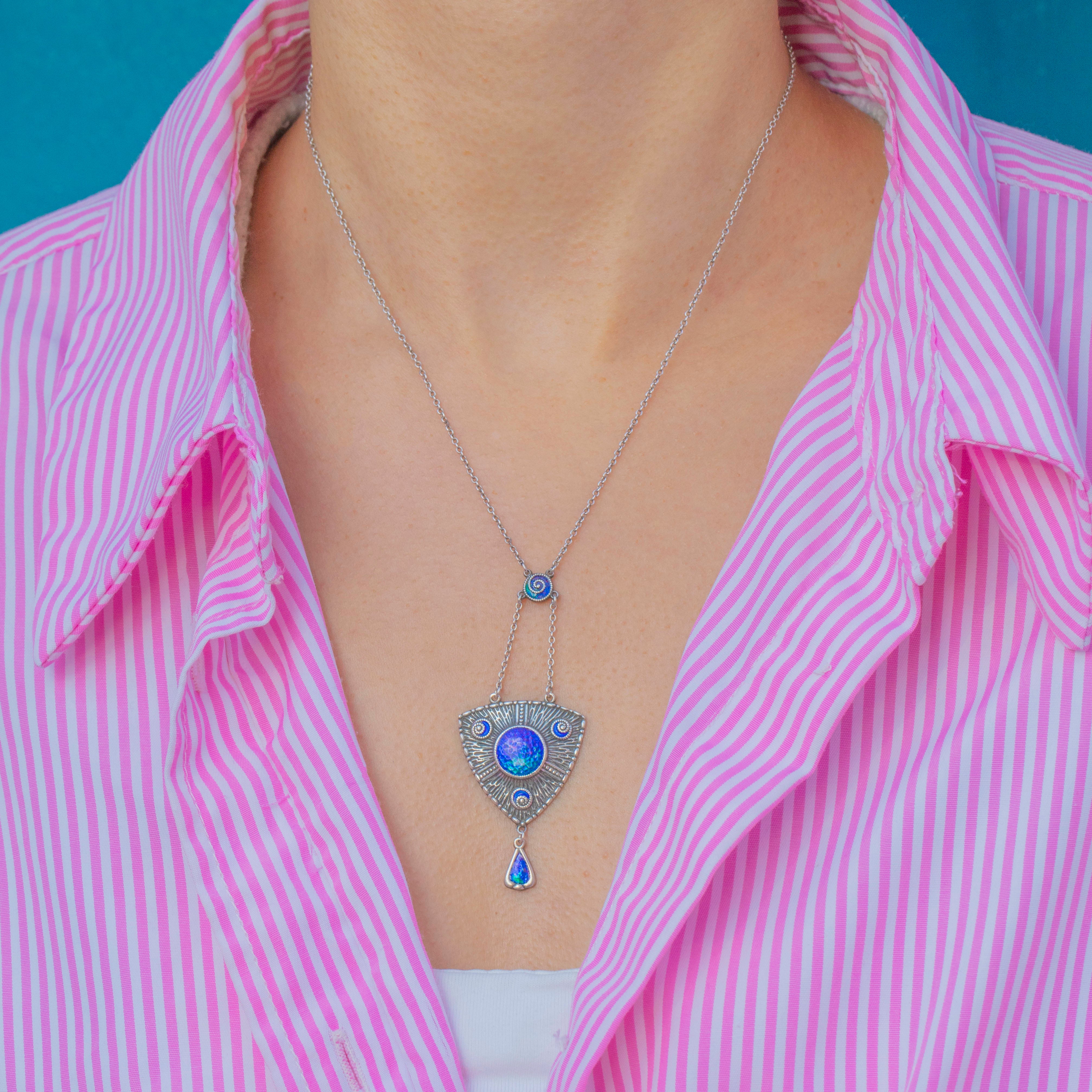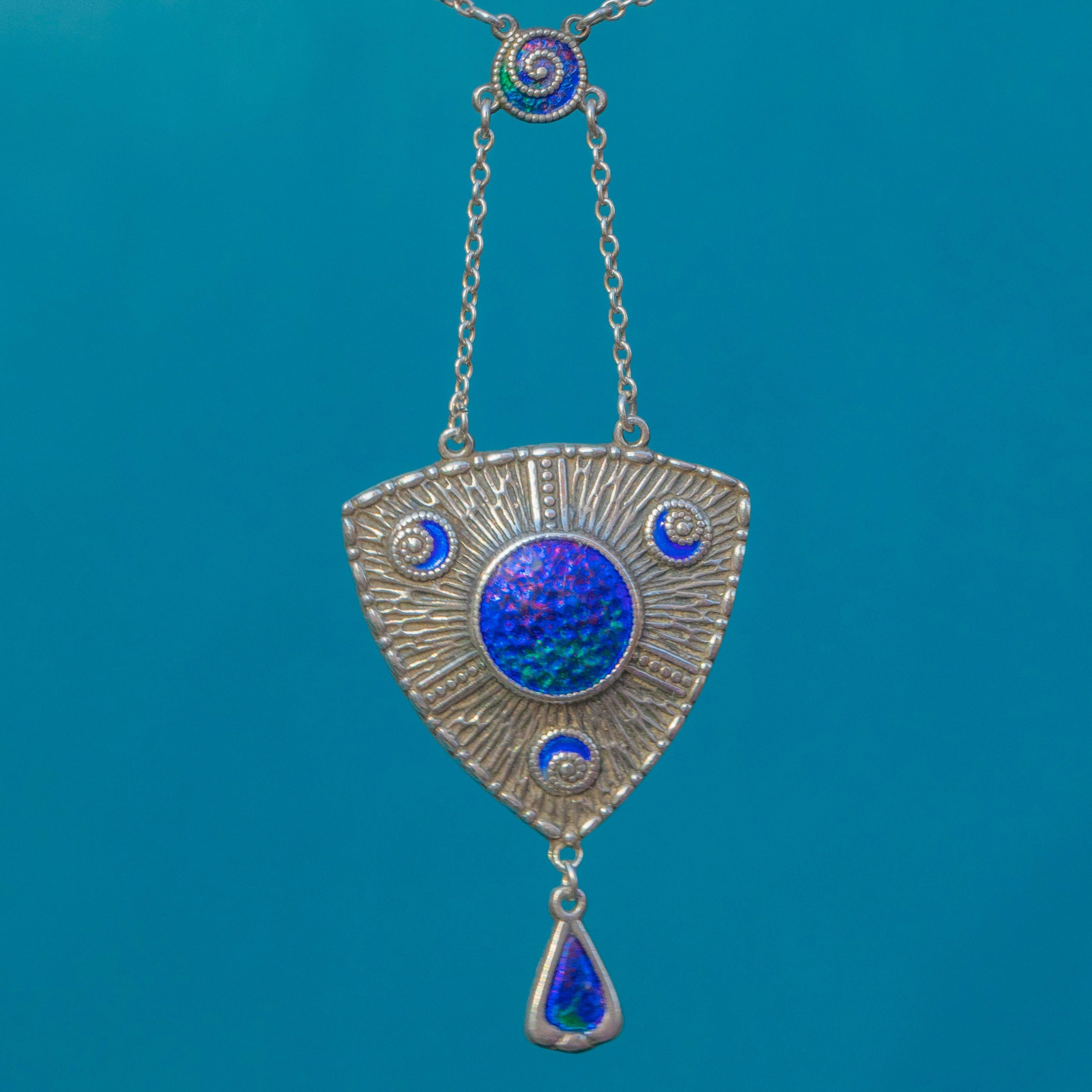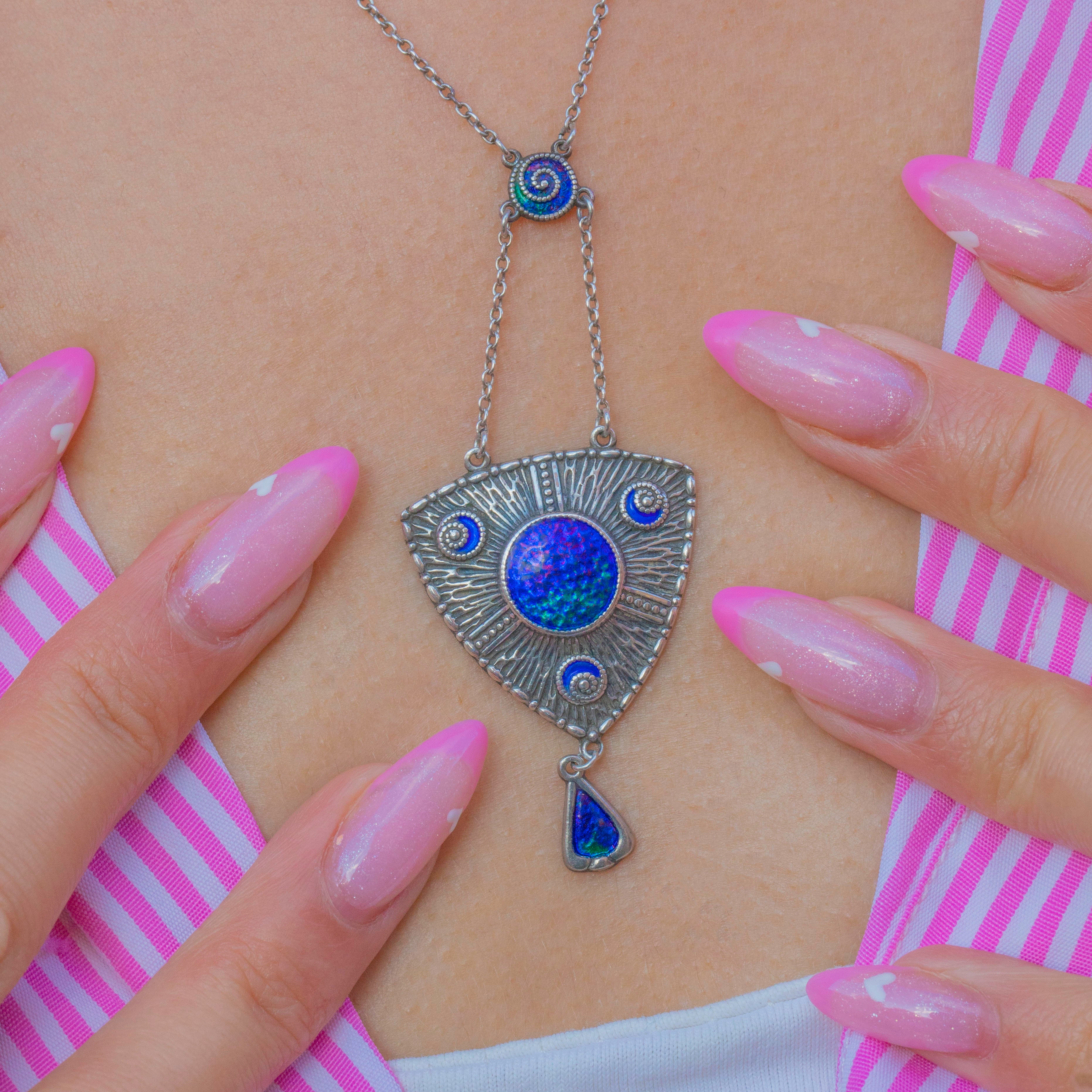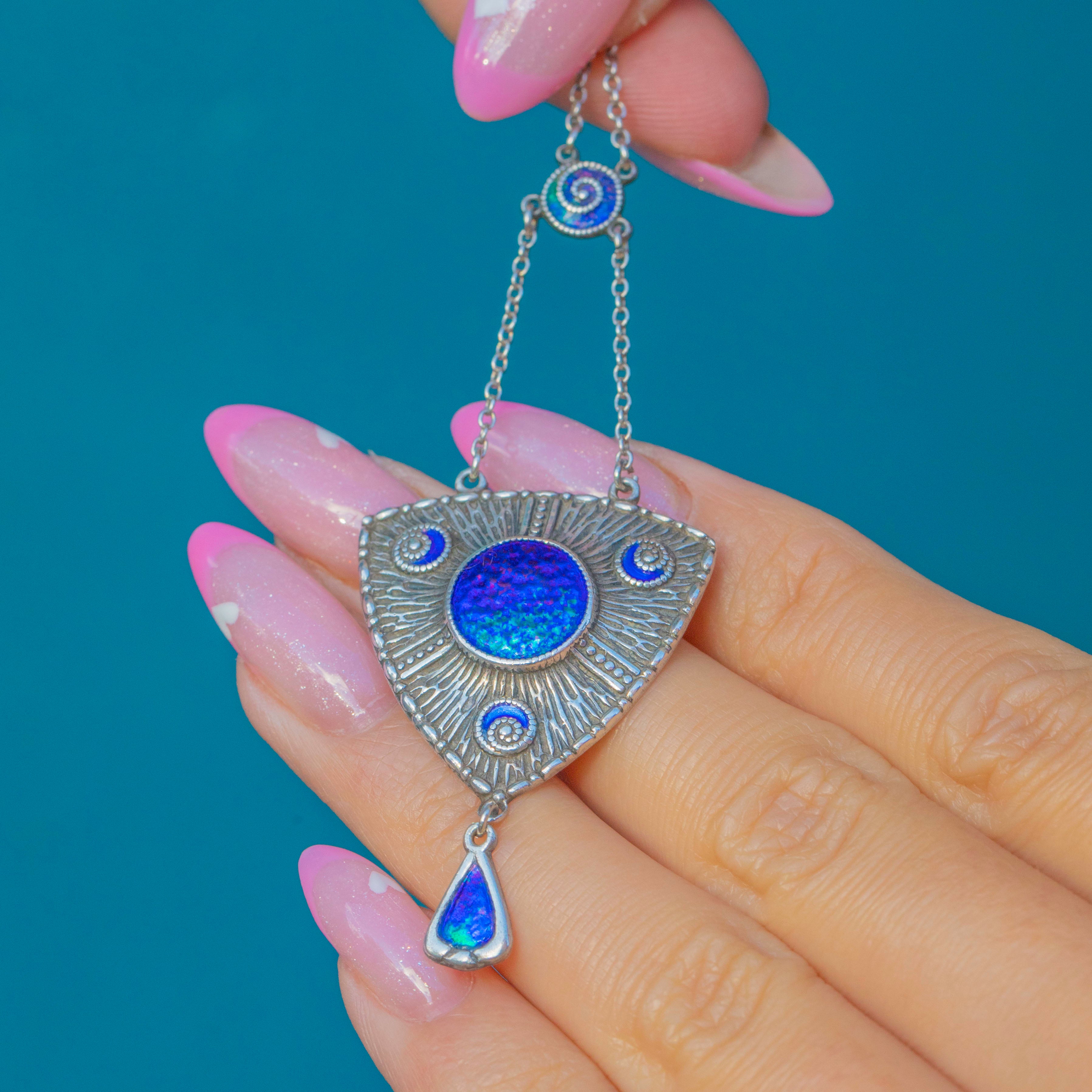 Arts & Crafts Era SIGNED Charles Horner Silver Blue Enamel Drop Necklace