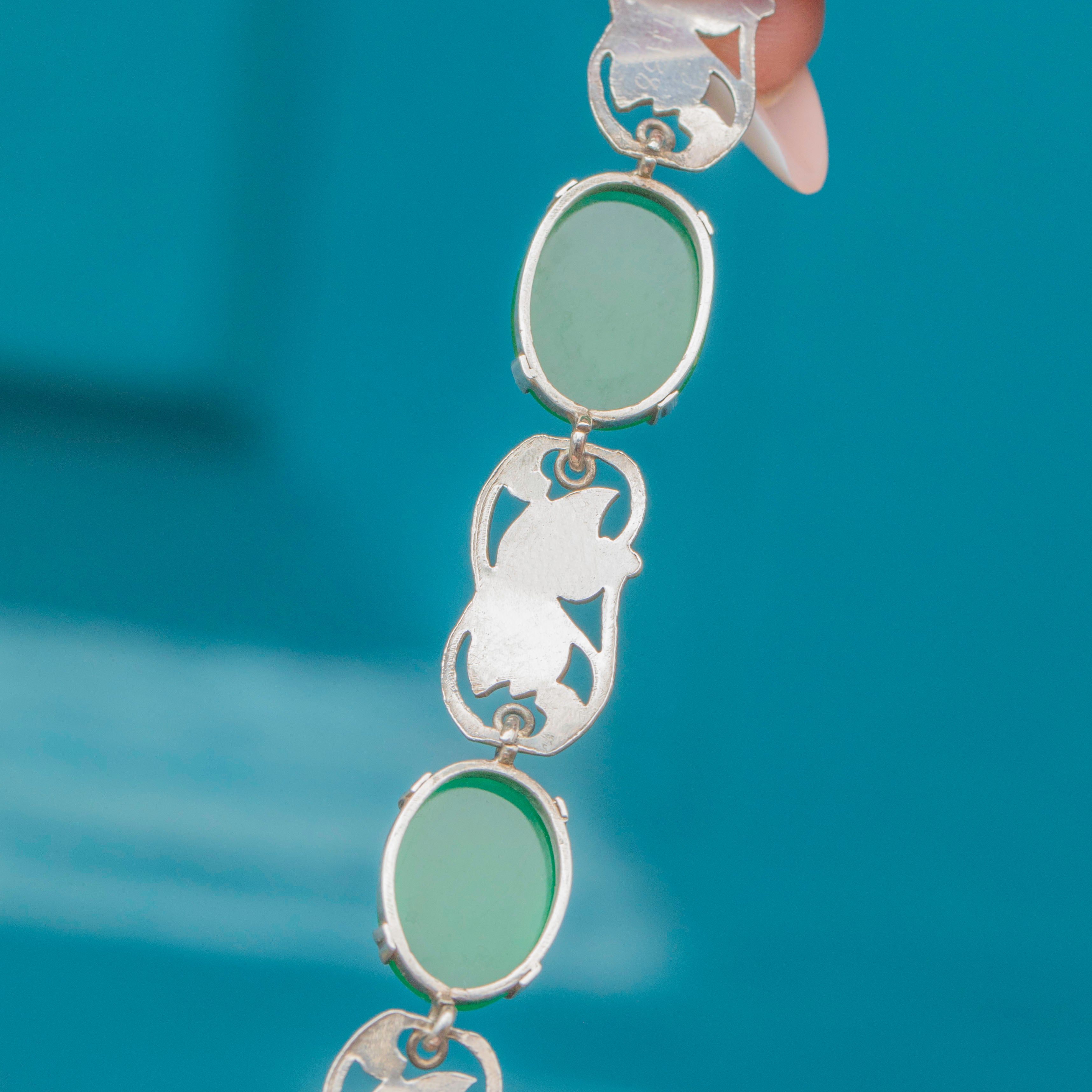 Add antique charm to your collection with this Arts and Crafts Silver Chrysoprase floral bracelet!