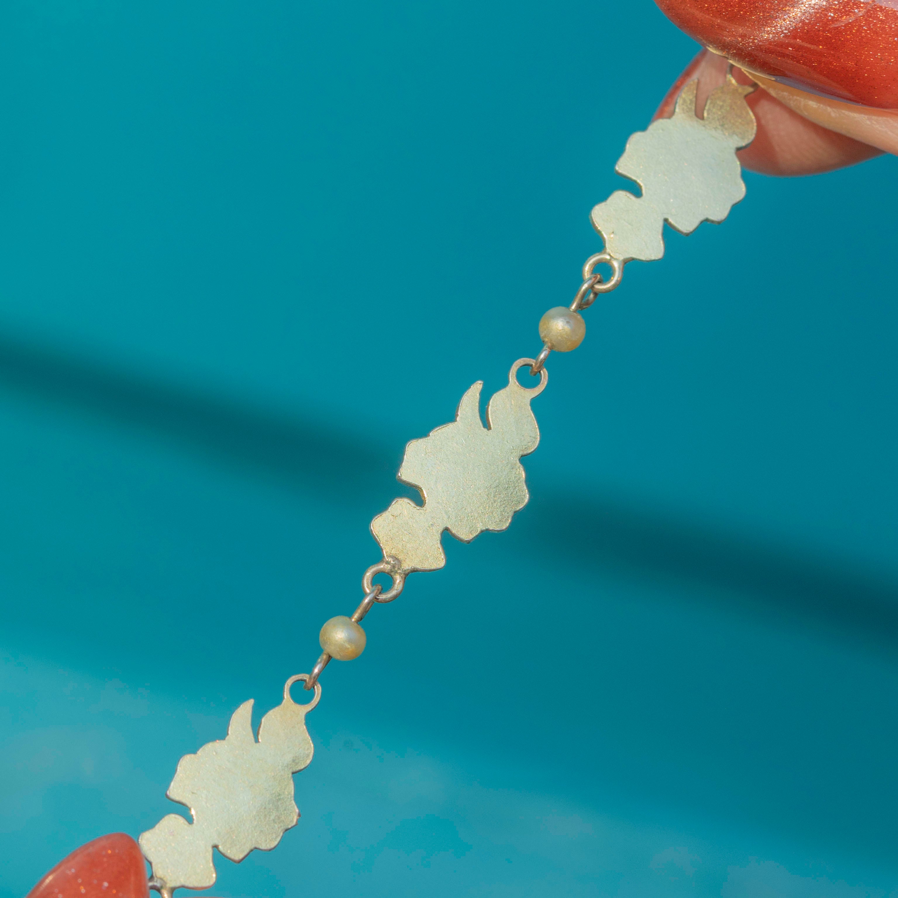 If you have a penchant for unique antique jewels, this Arts & Crafts Silver floral Enamel necklace is a must for your collection! At 15.5 inches long, the vibrant Enamel flower links and silvery Pearls will rest elegantly across your collarbones, bringing a feminine flare to your outfit.