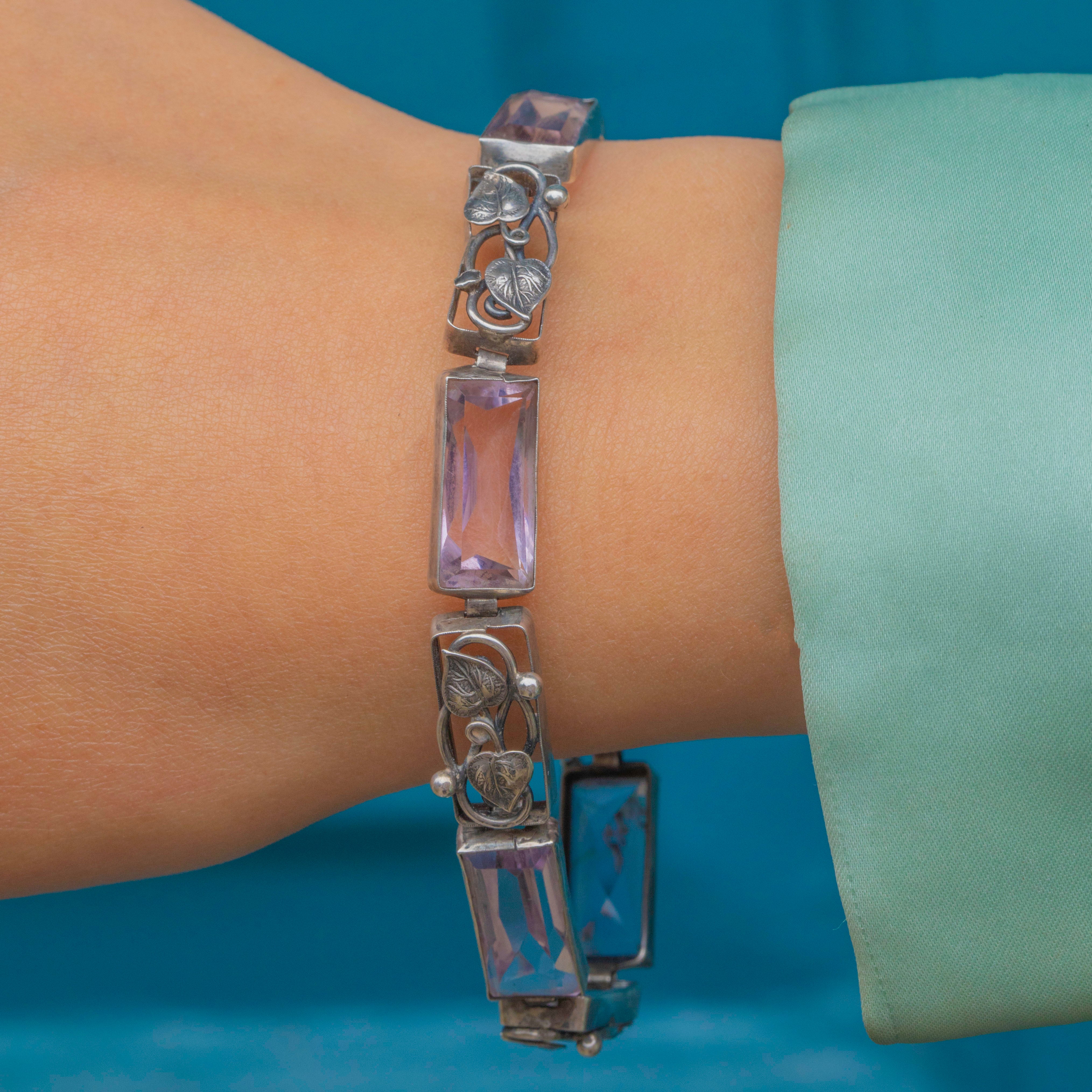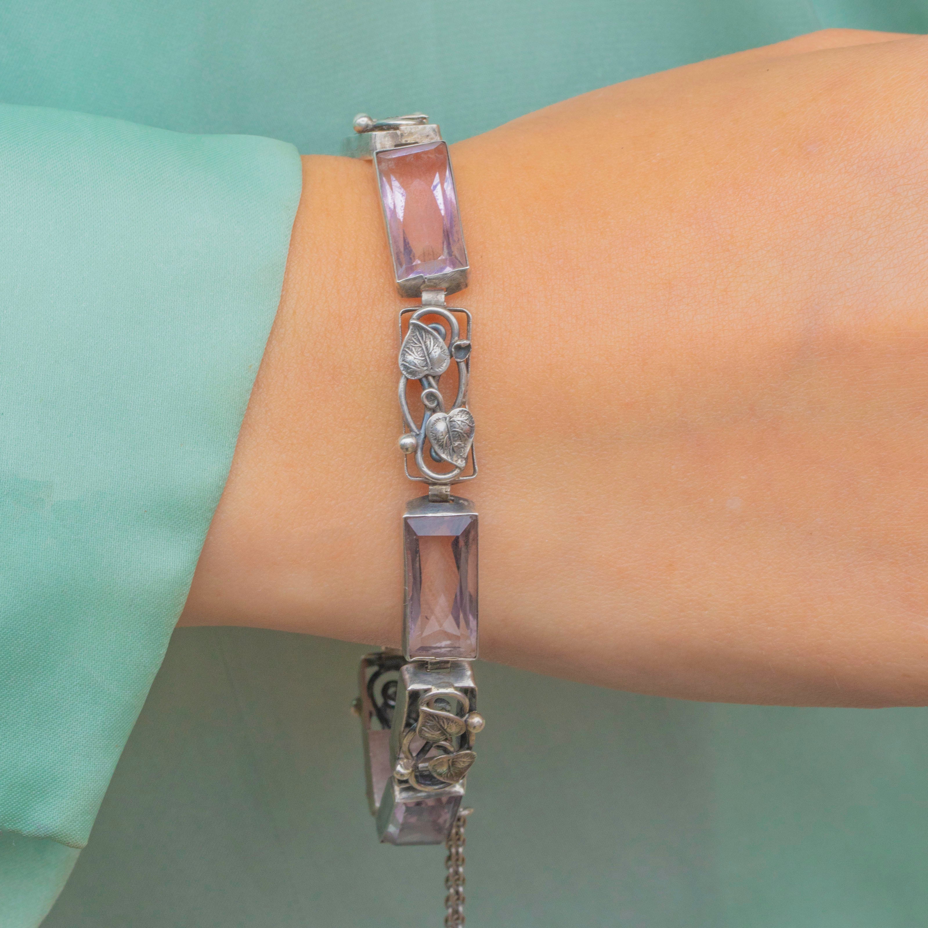 Arts & Crafts Silver Foliate Amethyst Bracelet